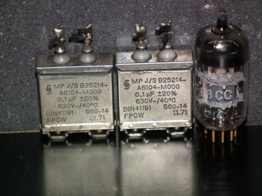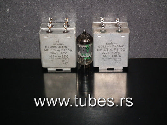 Two vintage Siemens Klangfilm PIO capacitors 2x0.25uF/300V glass end seal 1961