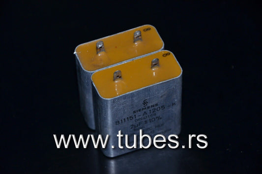 Two vintage Siemens PIO capacitors 0.205 uF / 50V Klangfilm tube audio