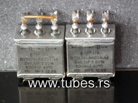 Two vintage Siemens PIO capacitors 2 x 0.1 uF / 630V Klangfilm tube audio
