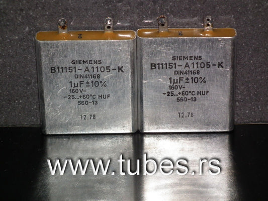 Two vintage Siemens PIO capacitors 1 uF 160V Klangfilm Made in Germany 1978