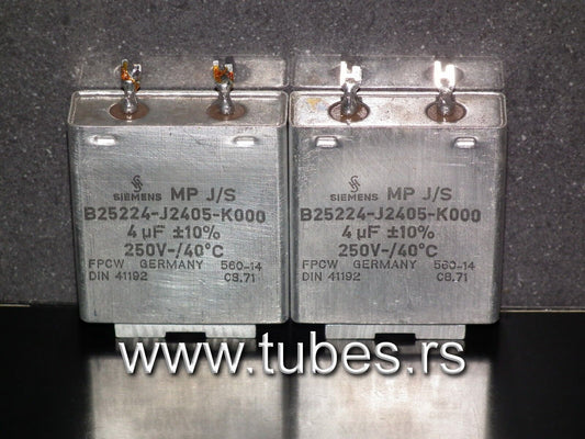 Two vintage Siemens PIO capacitors 4.0 uF / 250V Klangfilm tube audio