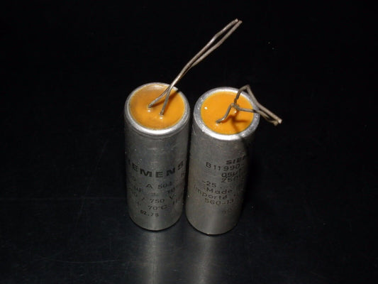 Two vintage Siemens PIO capacitors 0.5 uF / 630V Klangfilm tube audio