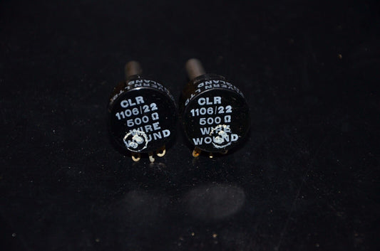 Two (2) NOS Colvern vintage wire wound potentiometers 500 Ohm 1W CLR.1106/22