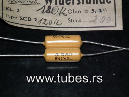 Two (2 pcs) Roshental NOS vintage resistors 120K Ohm 2W Klangfilm tube audio