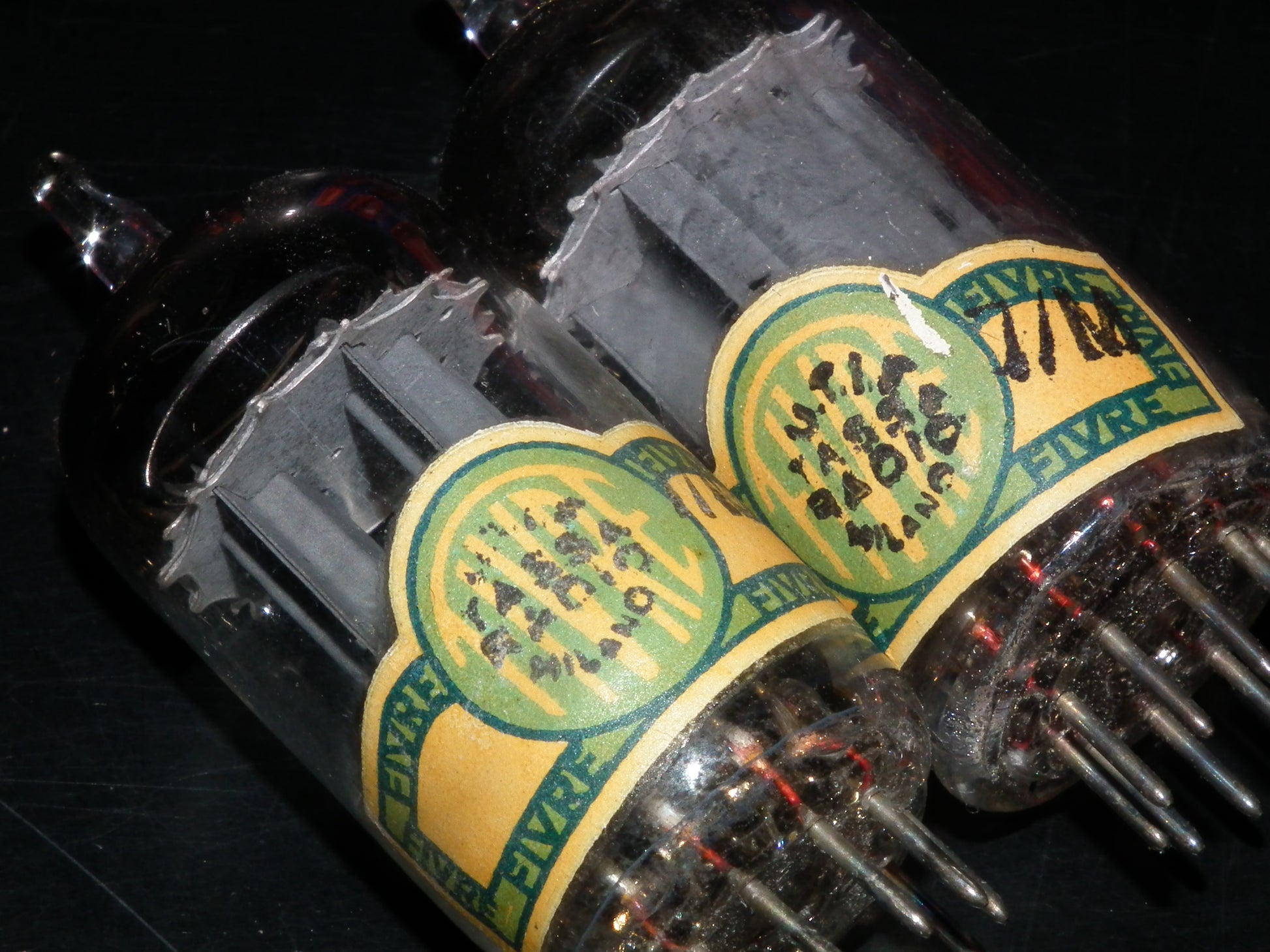 Platinum matched pair (2 tubes), rare ECC82 12AU7 FIVRE, made in Milano, Italy in early 60s.