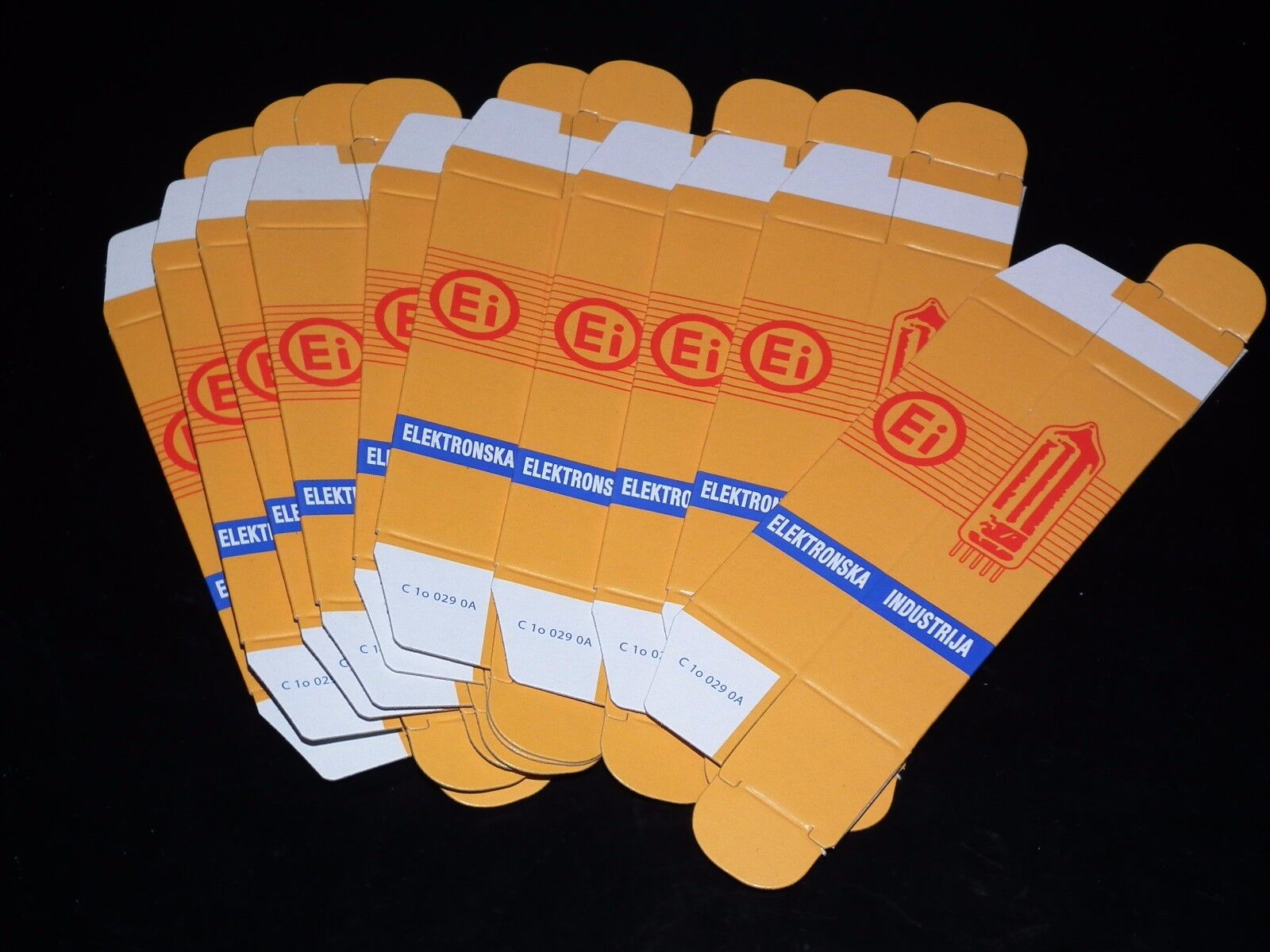 For sale are sixteen (16 pcs) never used EI Yugoslavia tube boxes for small NOVAL, DECAL and MINIATUR tubes without type printing on top of boxes.