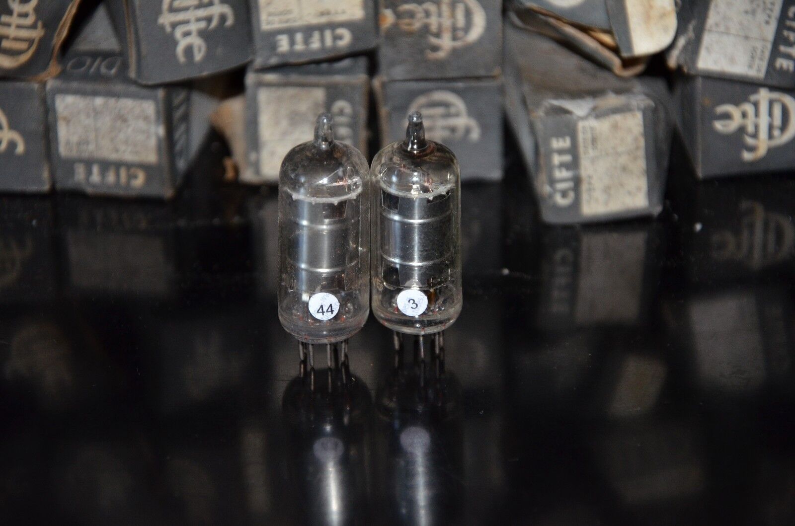 Auction is for two (platinum matched pair) of rare CIFTE 1T4 DF91 old type battery type pentodes used in many tube amplifiers, preamplifiers and radio sets.If you buy any item on ebay from me and for if you are not fully satisfied for any reason or have any complains, please send me message before leaving negative or neutral feedback or opening a case. I really do care about your satisfaction and I’ll do my best to solve any kind of problem.