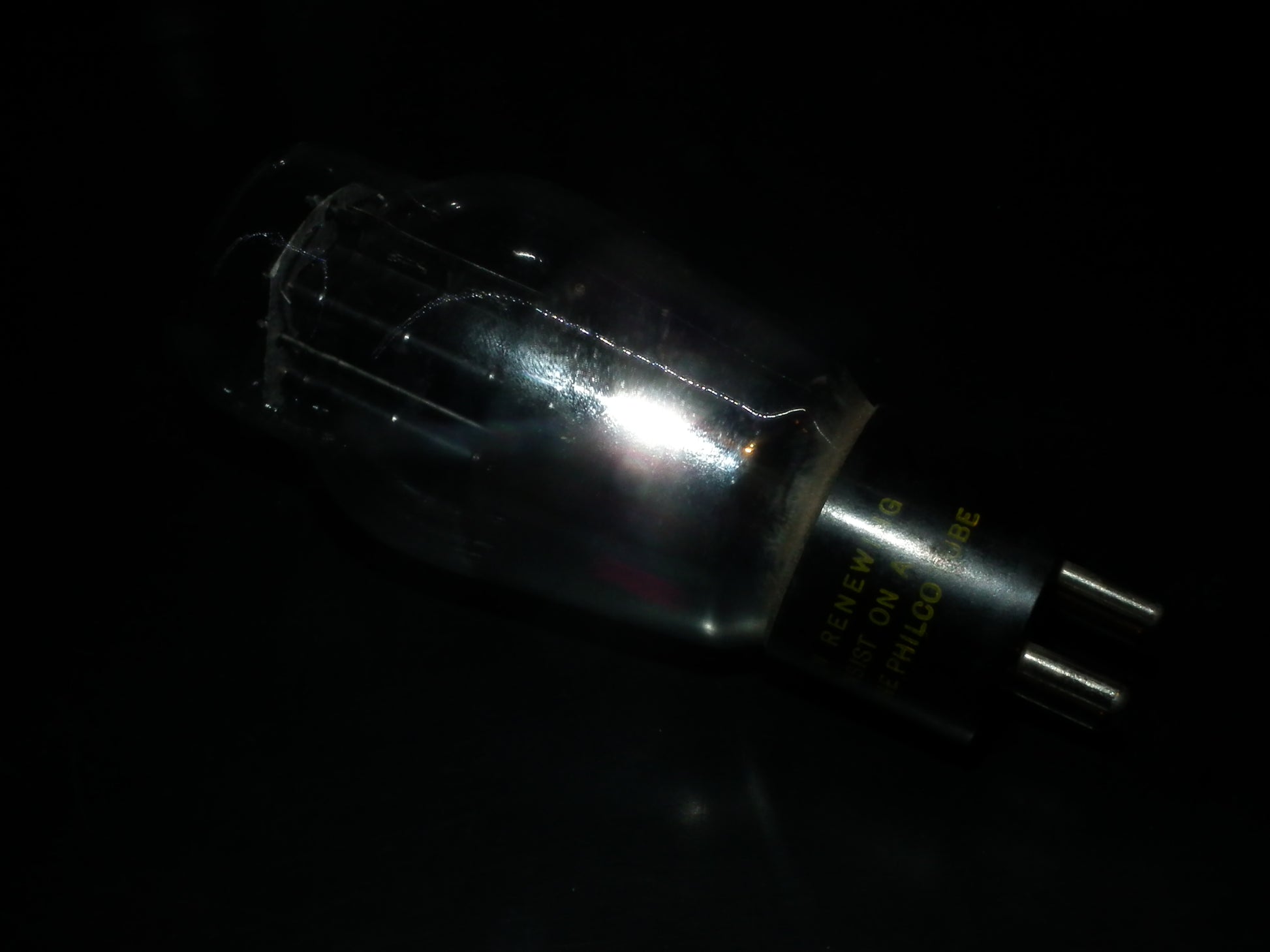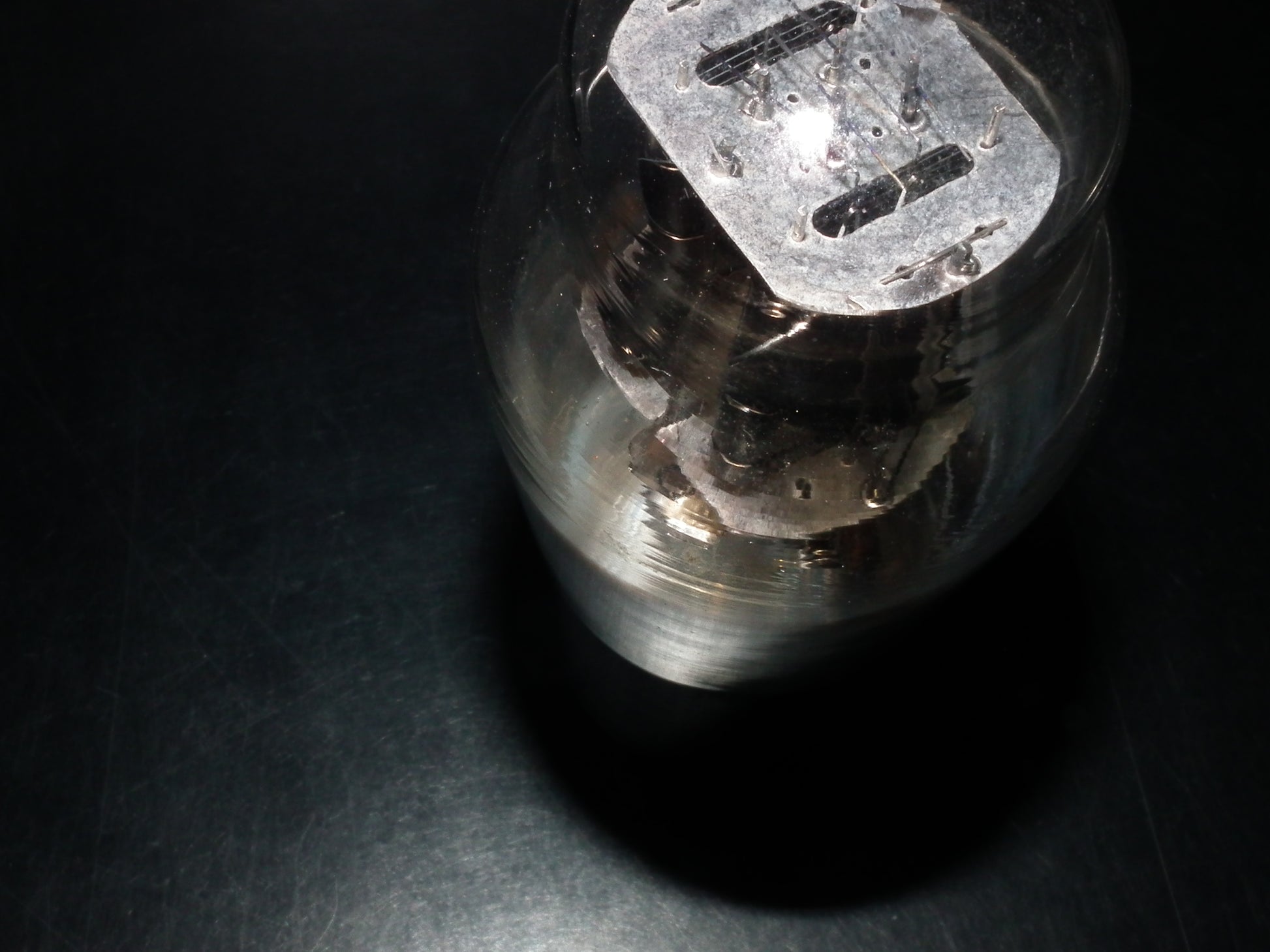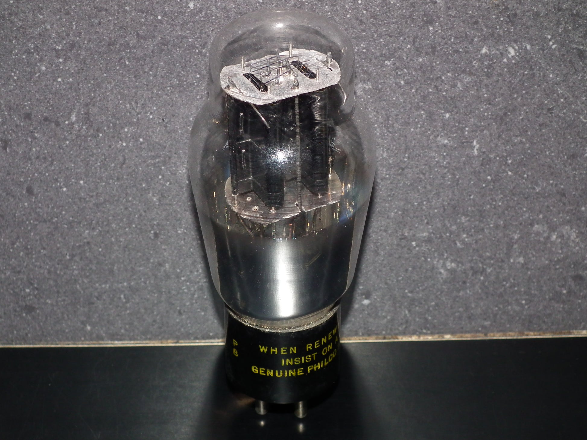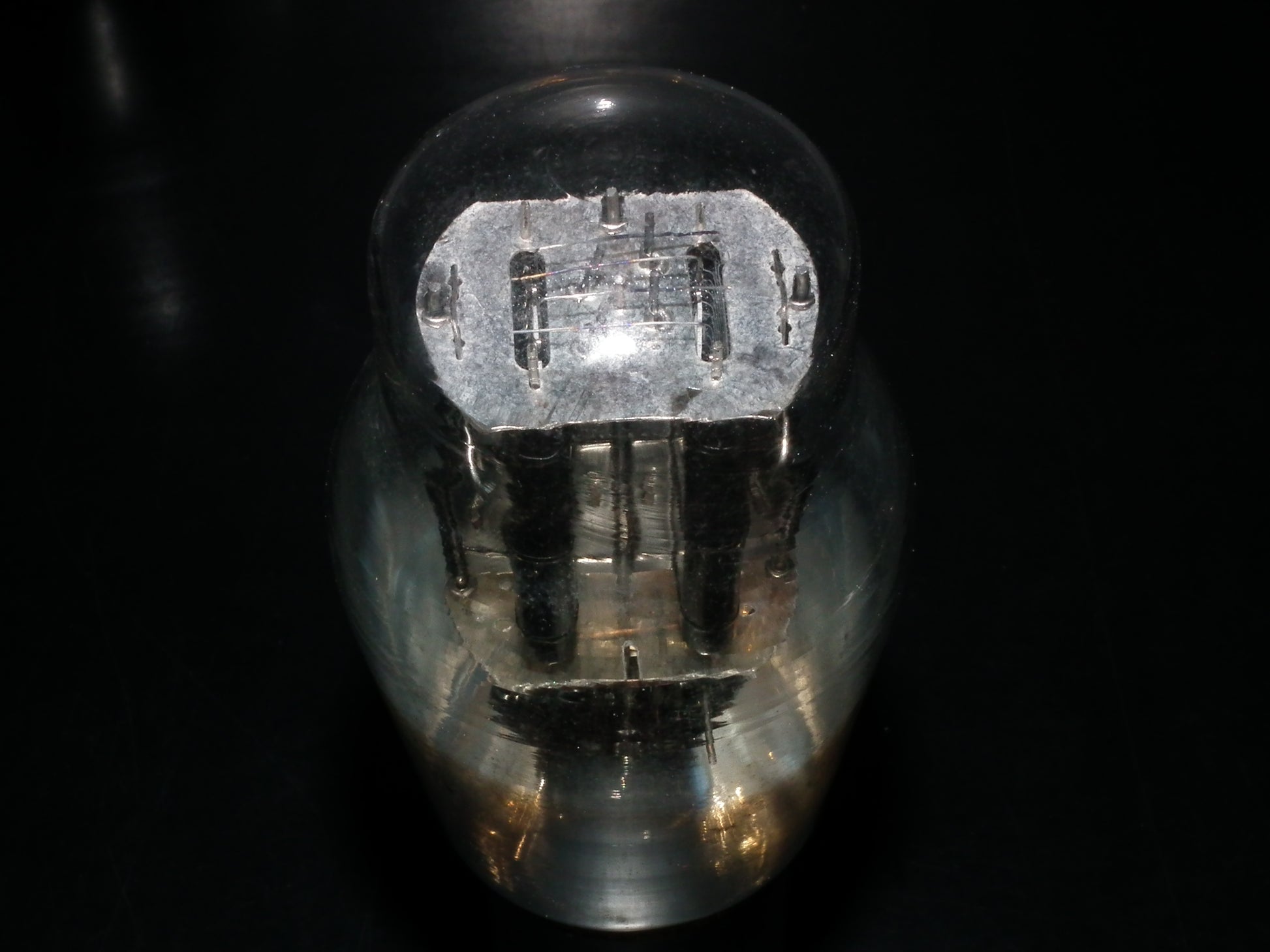 Rare, hanging filament, old type foil getter.