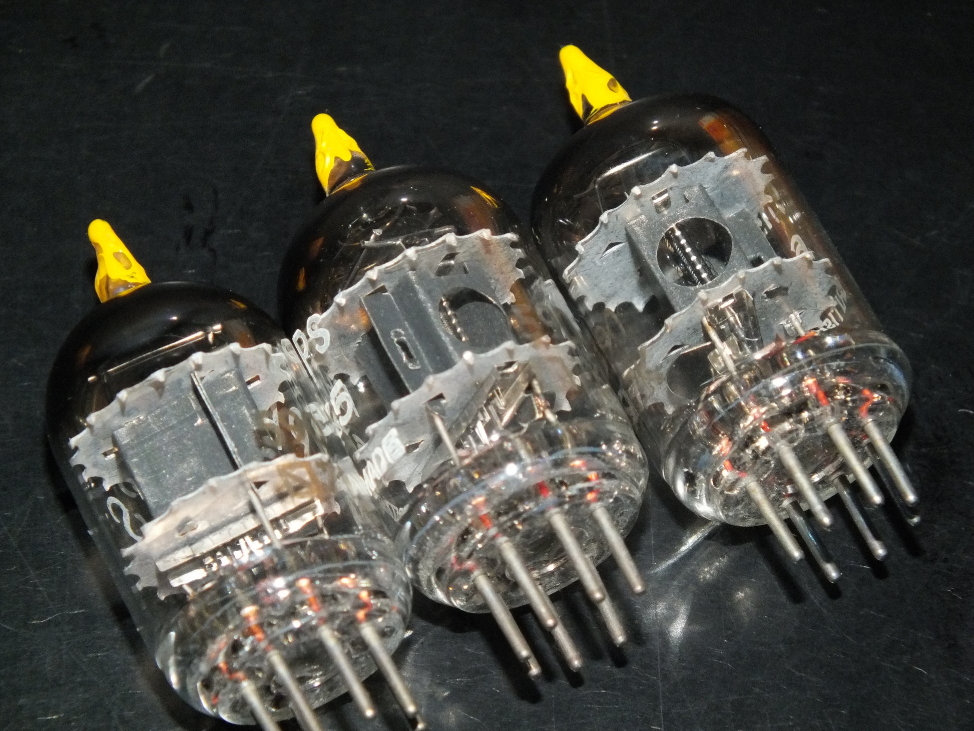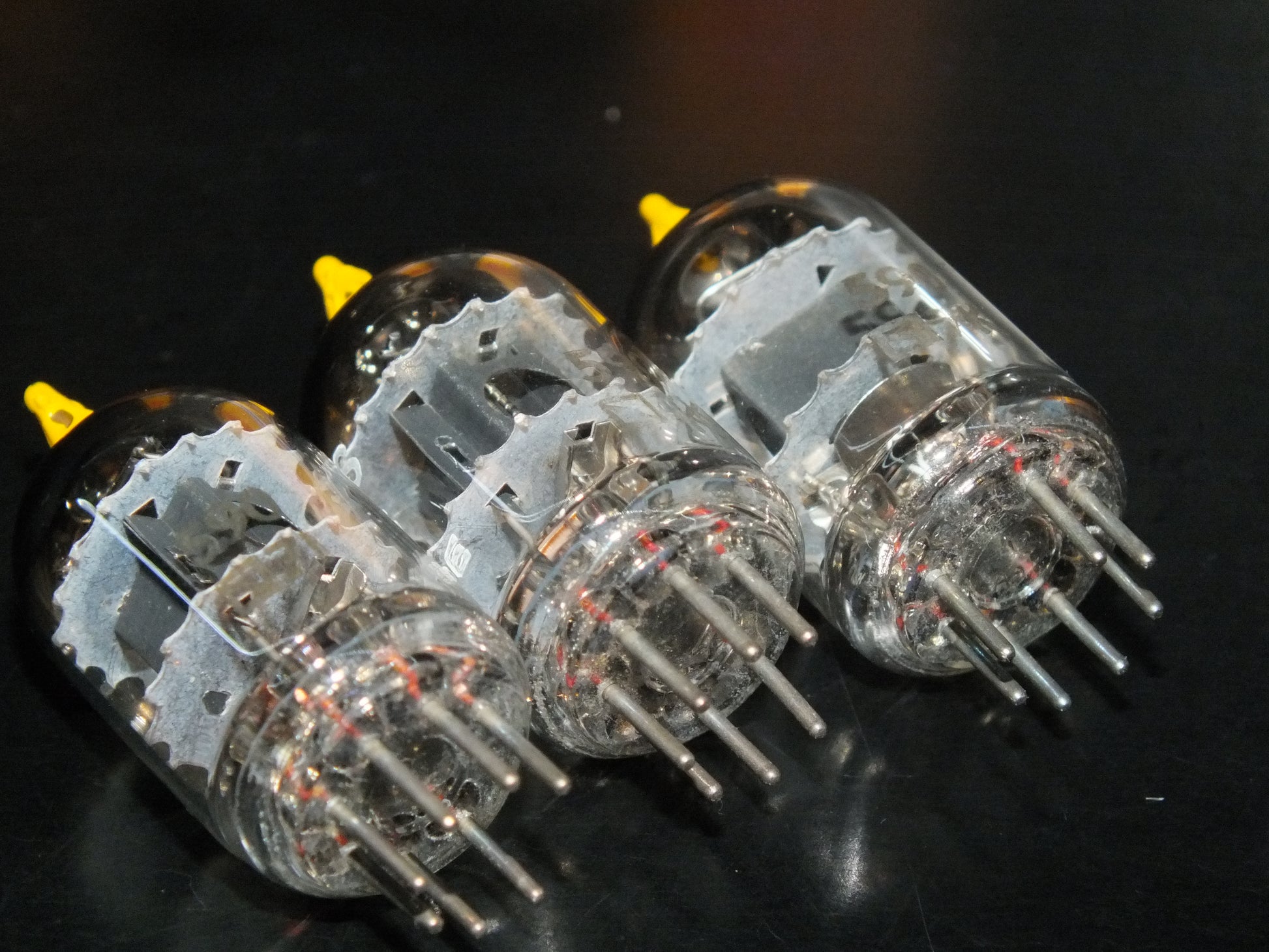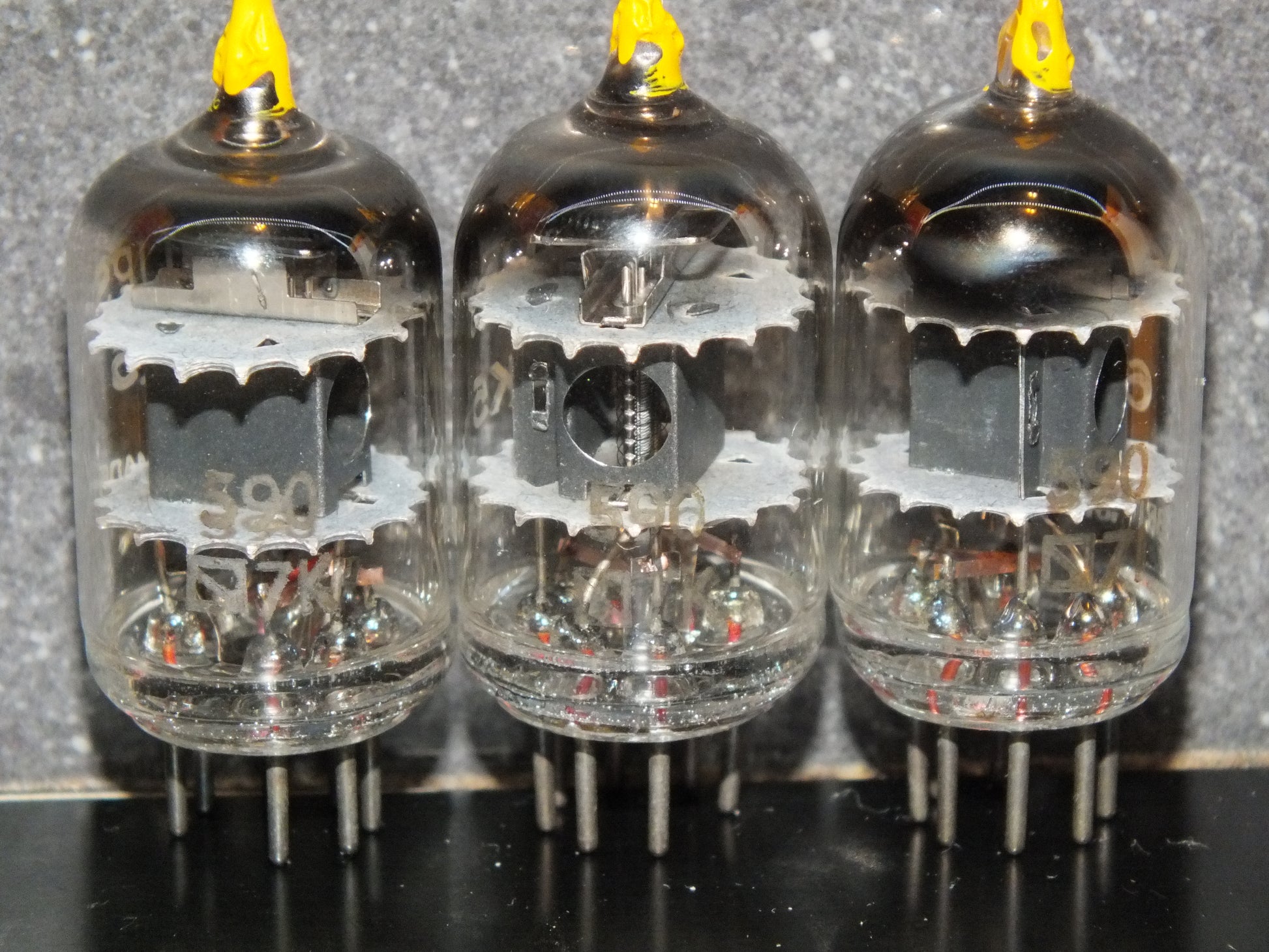 Tested NOS values, black anodes, carbonized nickel, white printing. Tested for low noise for microphone use.
