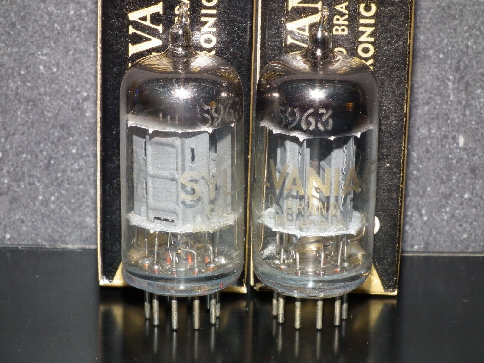 Auction is for two tubes (matched pair) of rare NOS NIB Sylvania 5963 Gold Brand.
