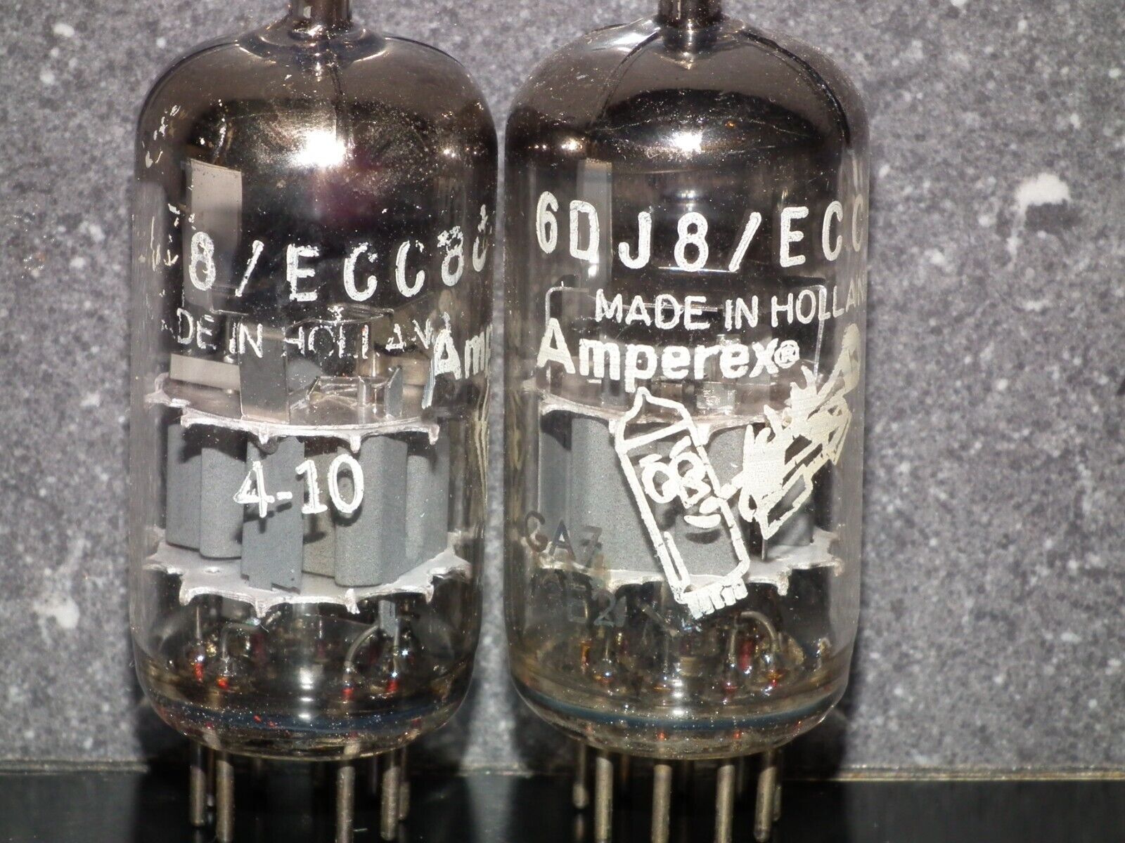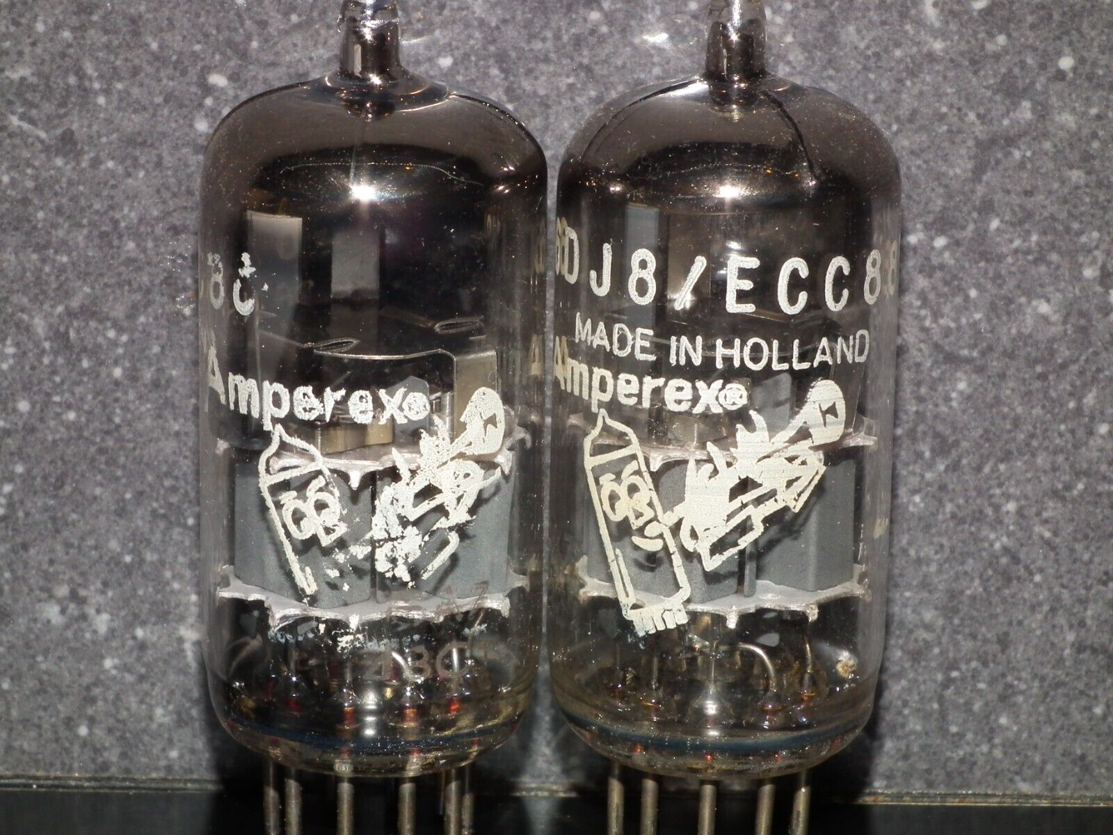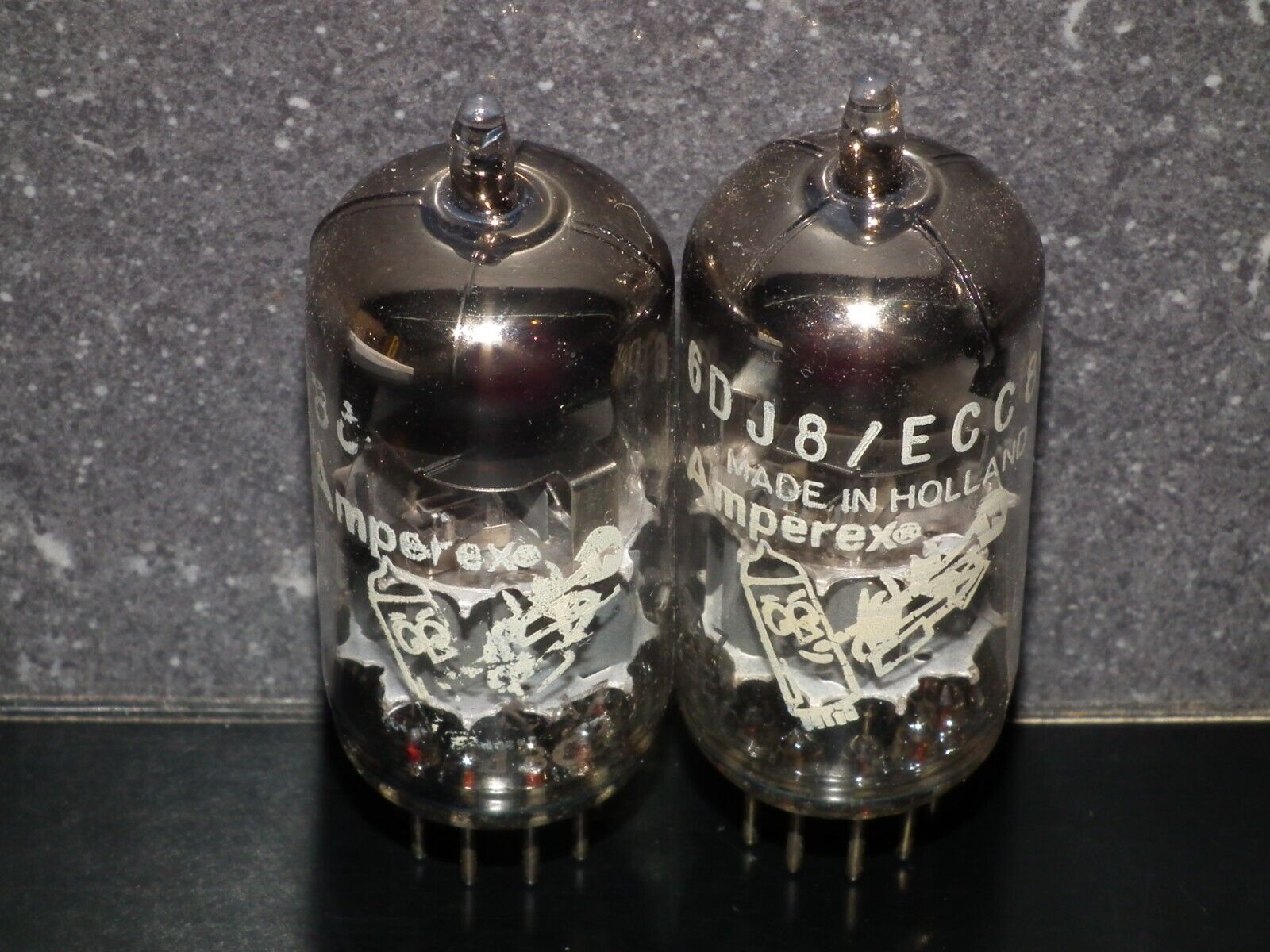 One Matched Pair (2 tubes), rare 6DJ8 ECC88 Amperex Made in Holland.