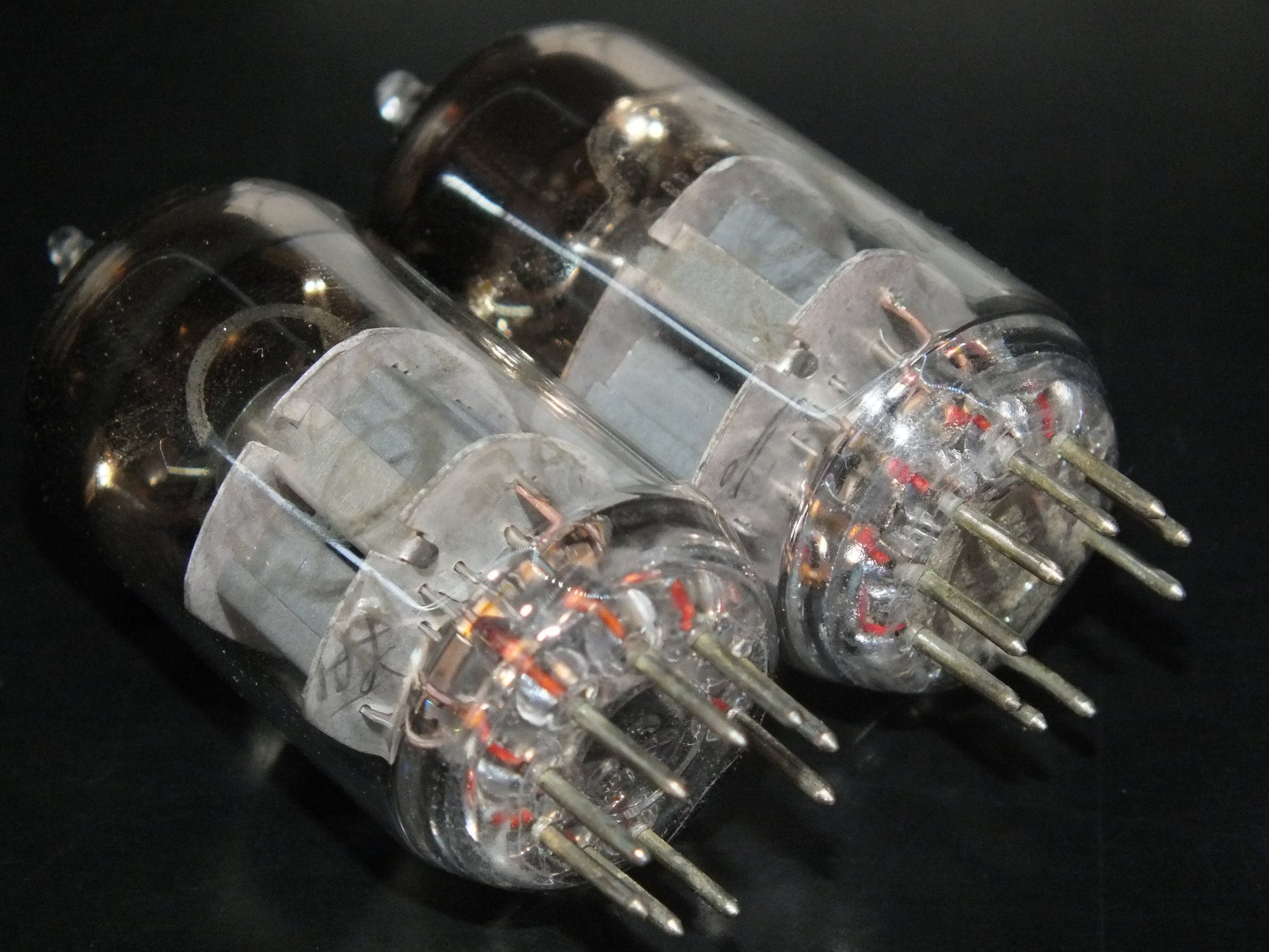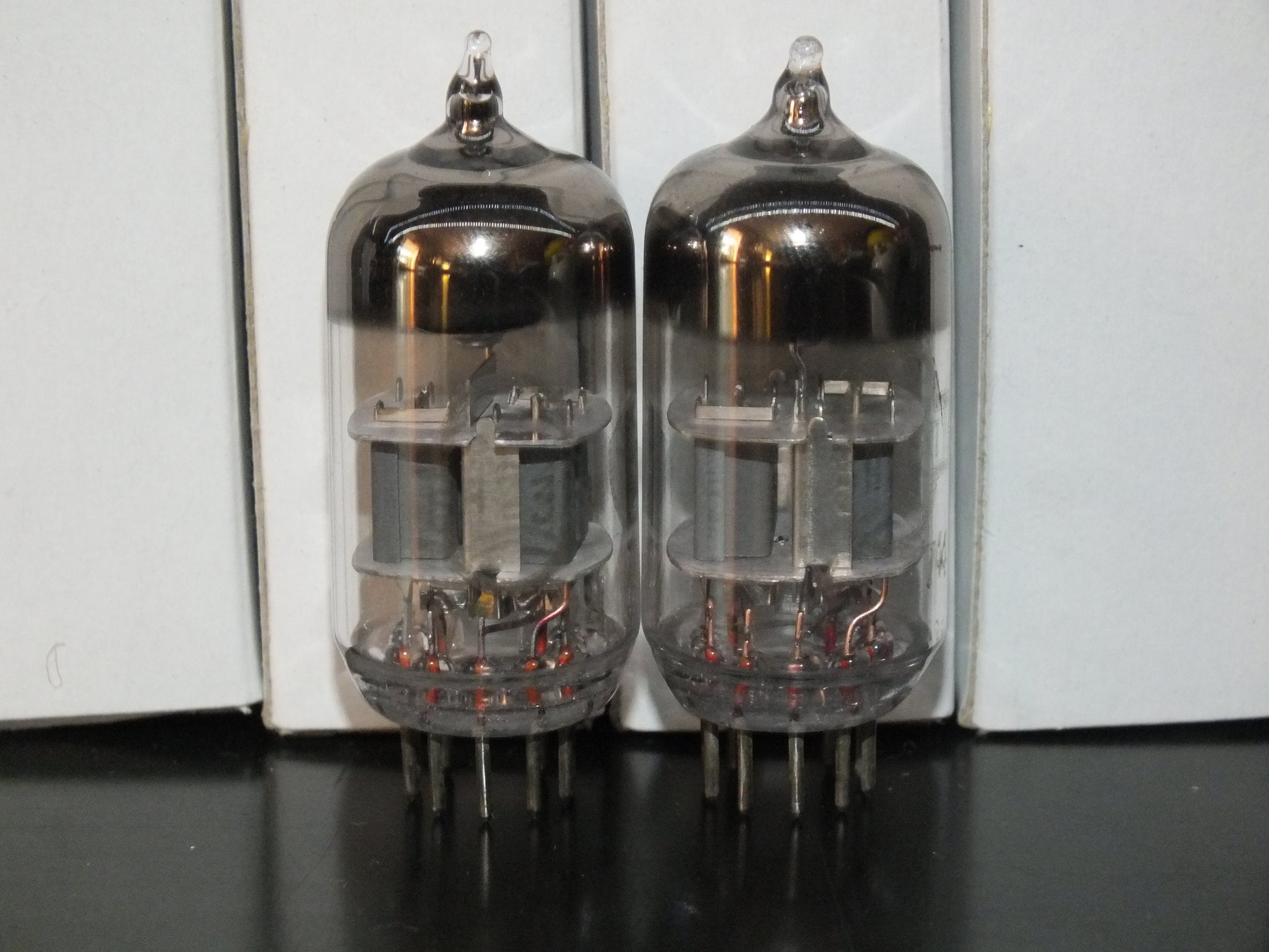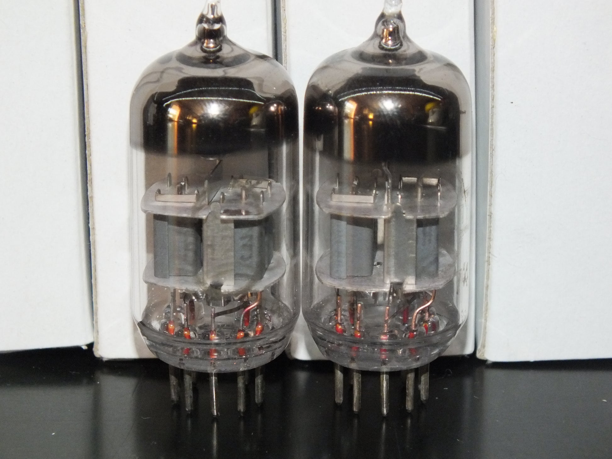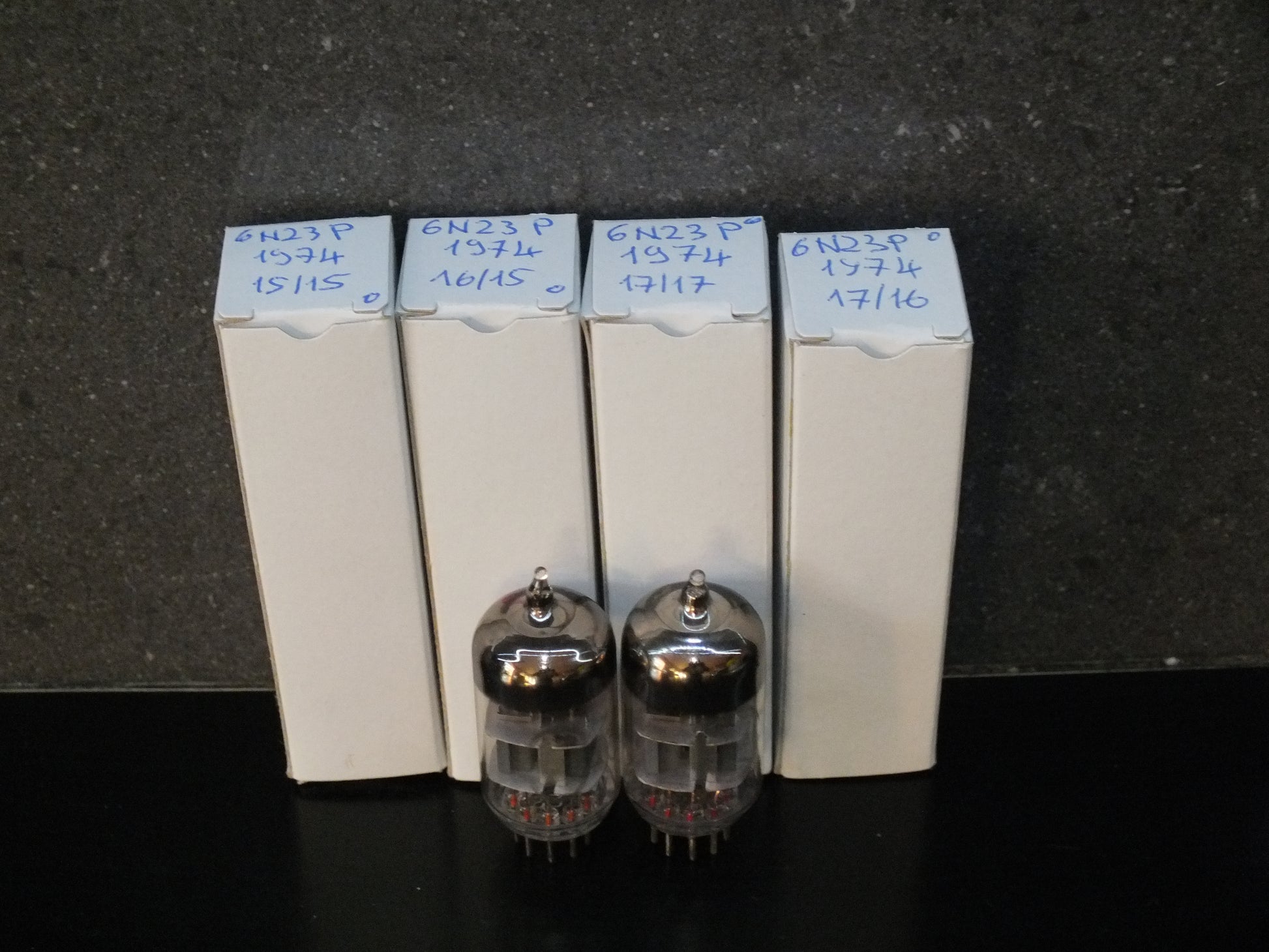 These are true gems: low-noise, carefully selected, and precisely matched, two pairs in stock, the measurements are written on the boxes, tested with 100V on anodes and -1.5V on grids.