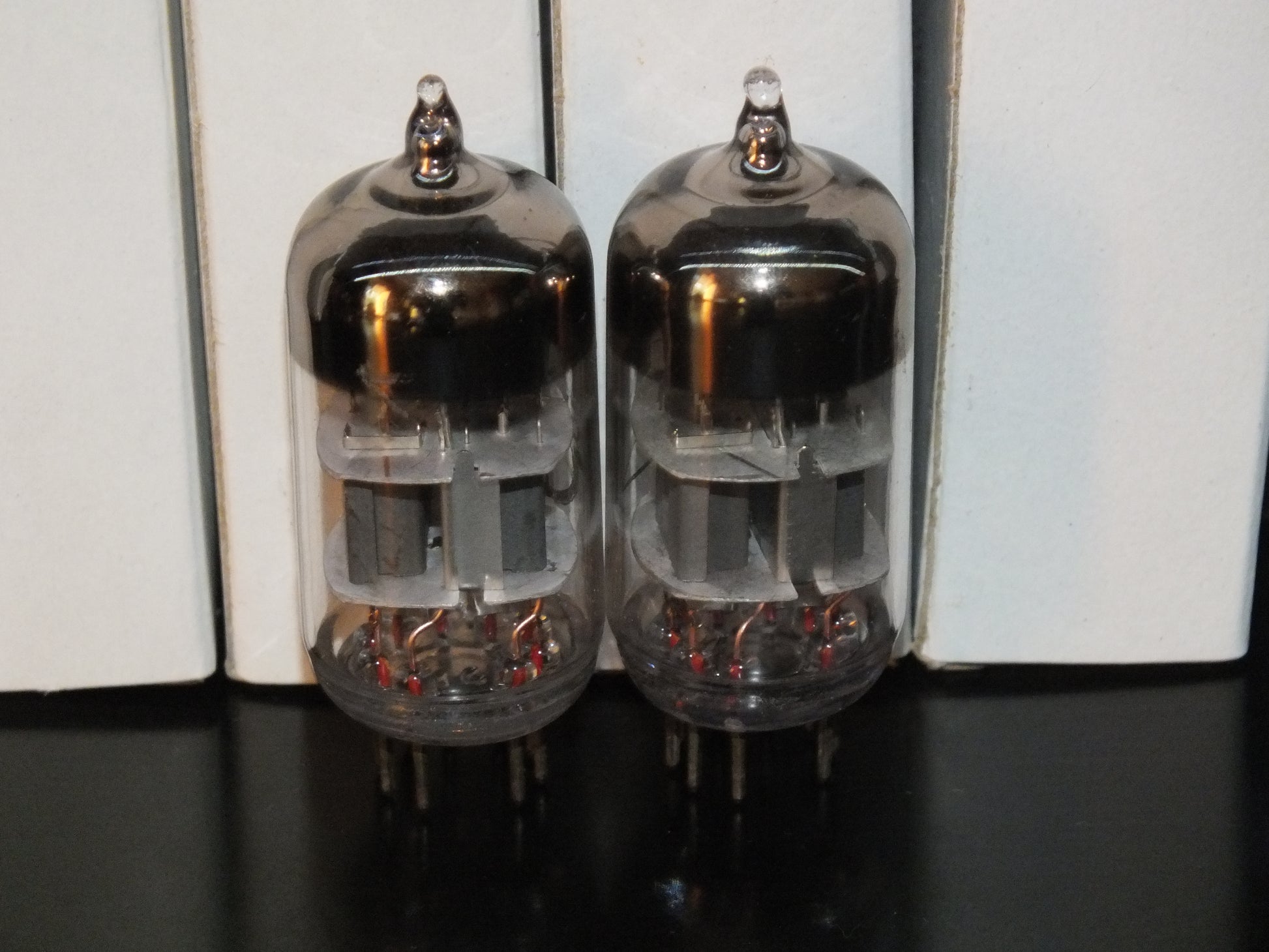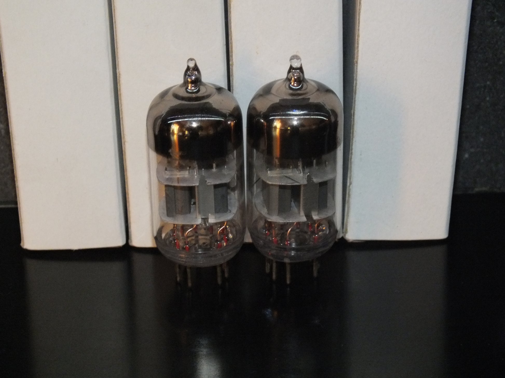 These are true gems: low-noise, carefully selected, and precisely matched, two pairs in stock, the measurements are written on the boxes, tested with 100V on anodes and -1.5V on grids.