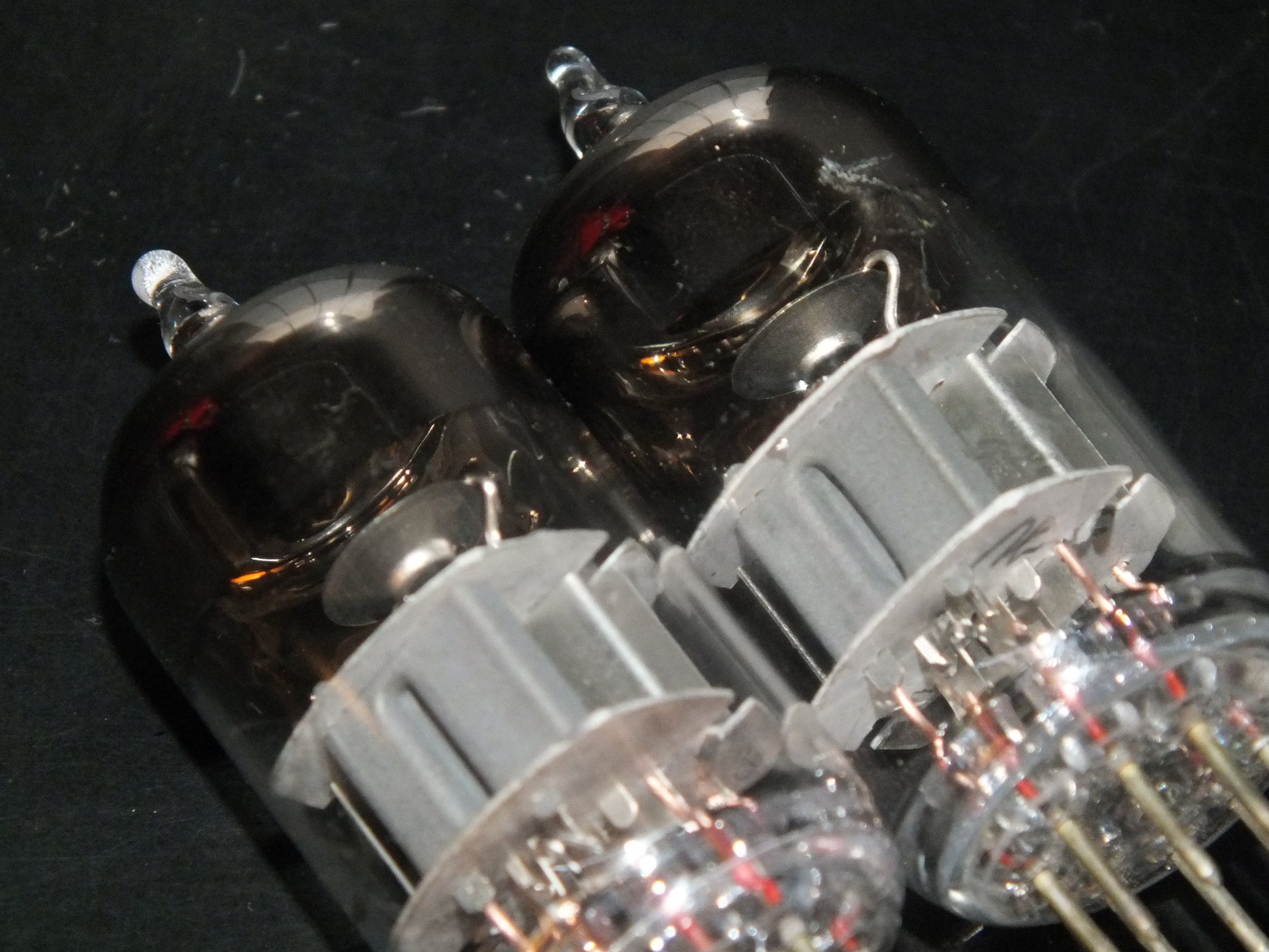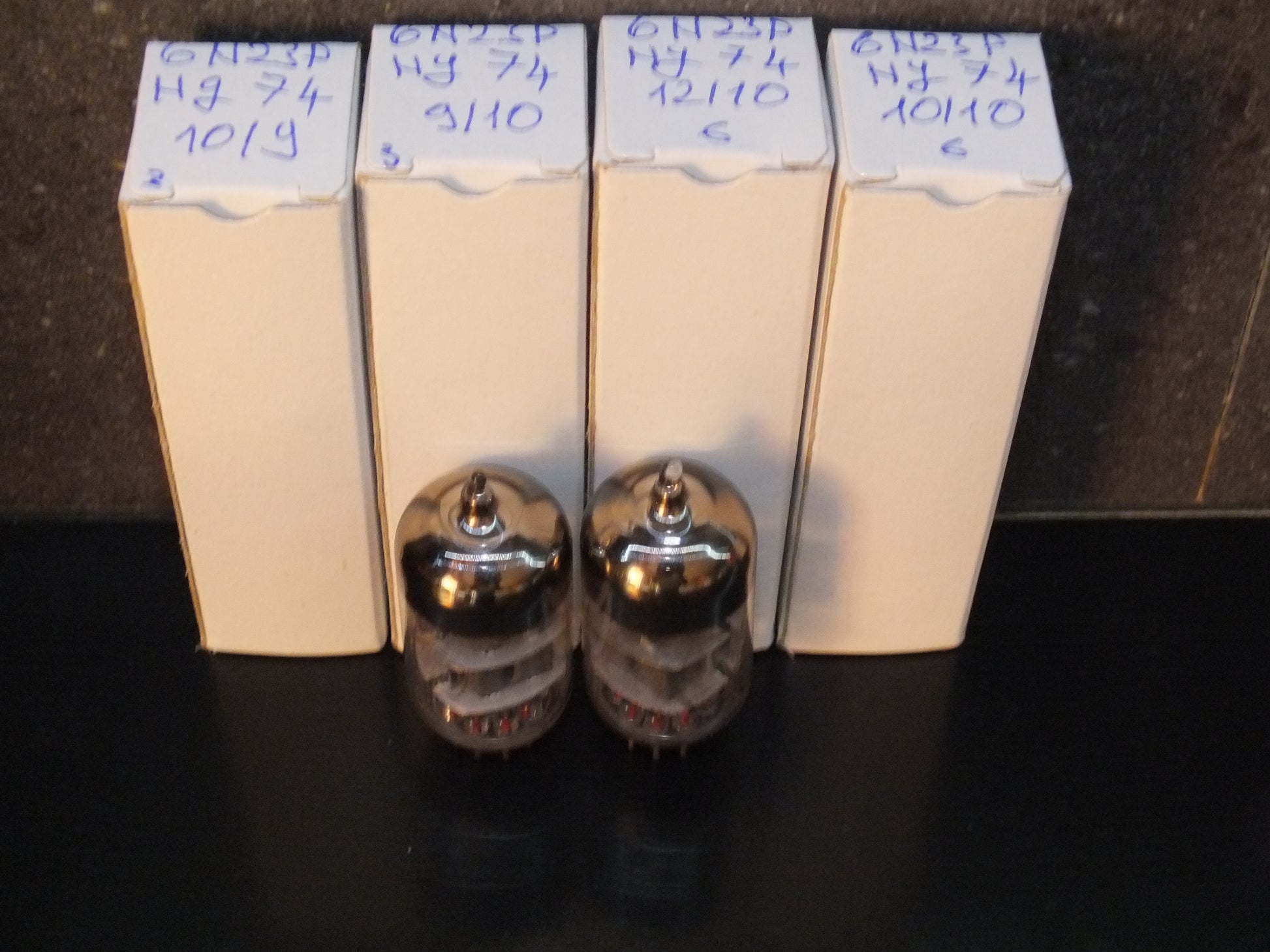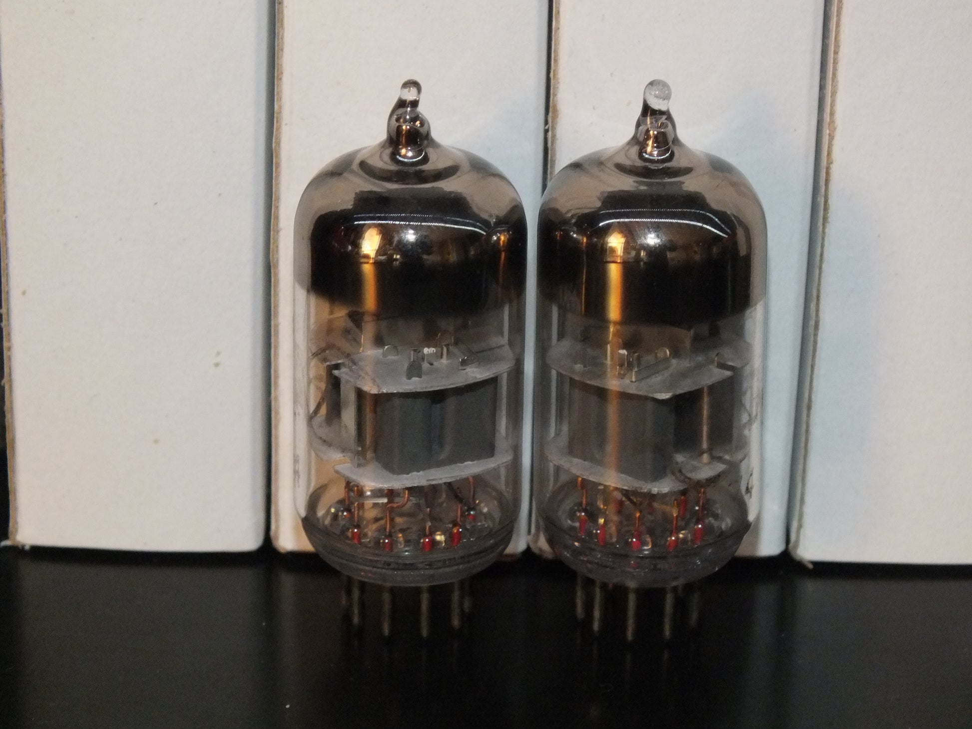 These are genuine gems: low-noise, carefully selected, and precisely matched. Two pairs available. Test results are written on the boxes, measured at 100V on the anodes and -1.5V on the grids.