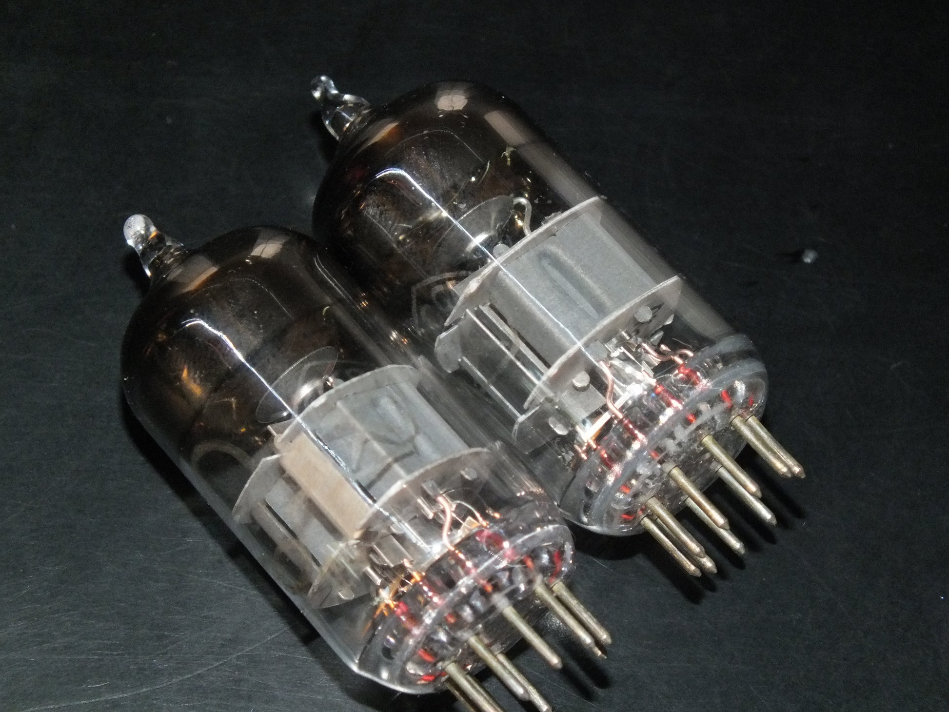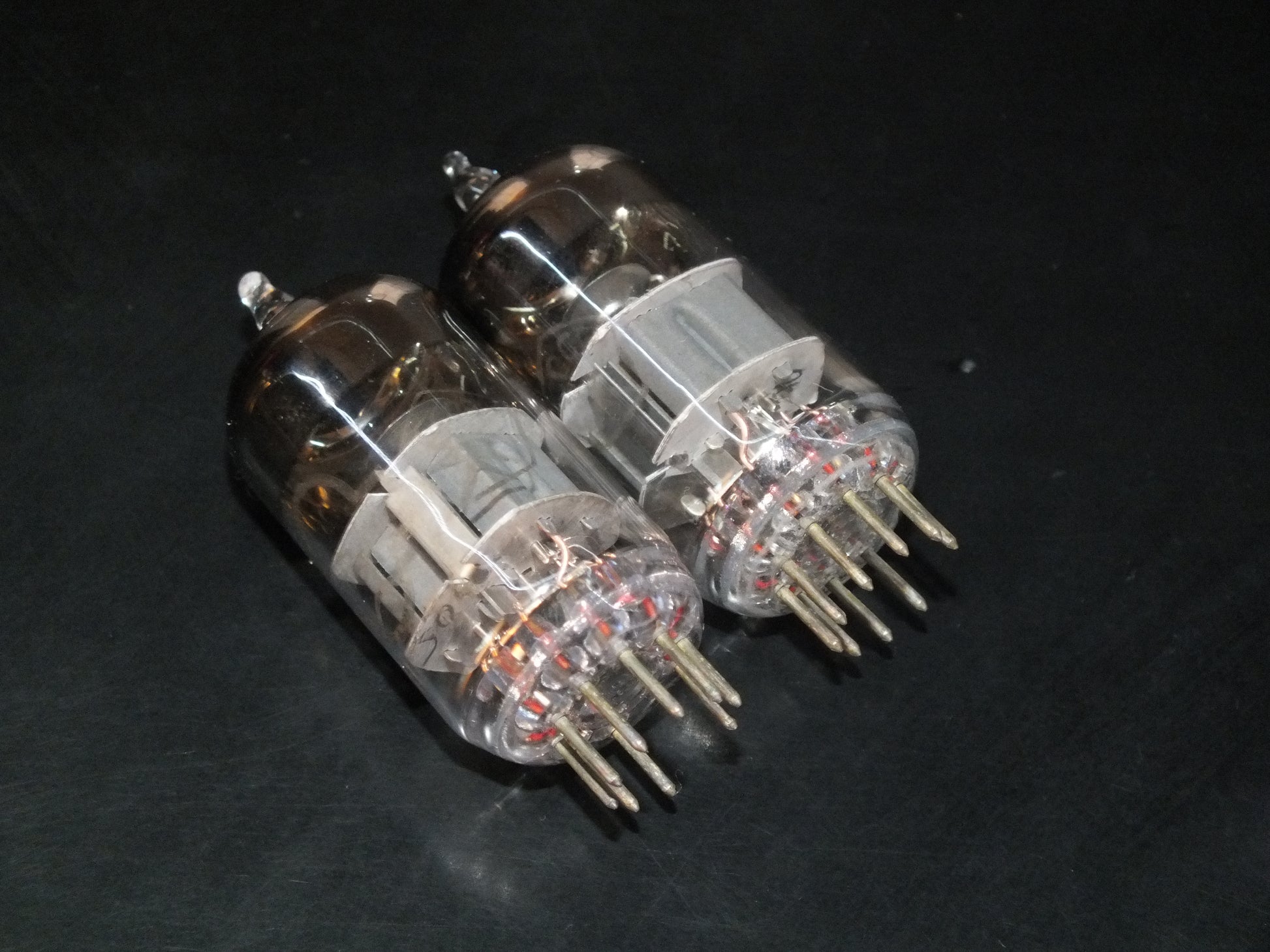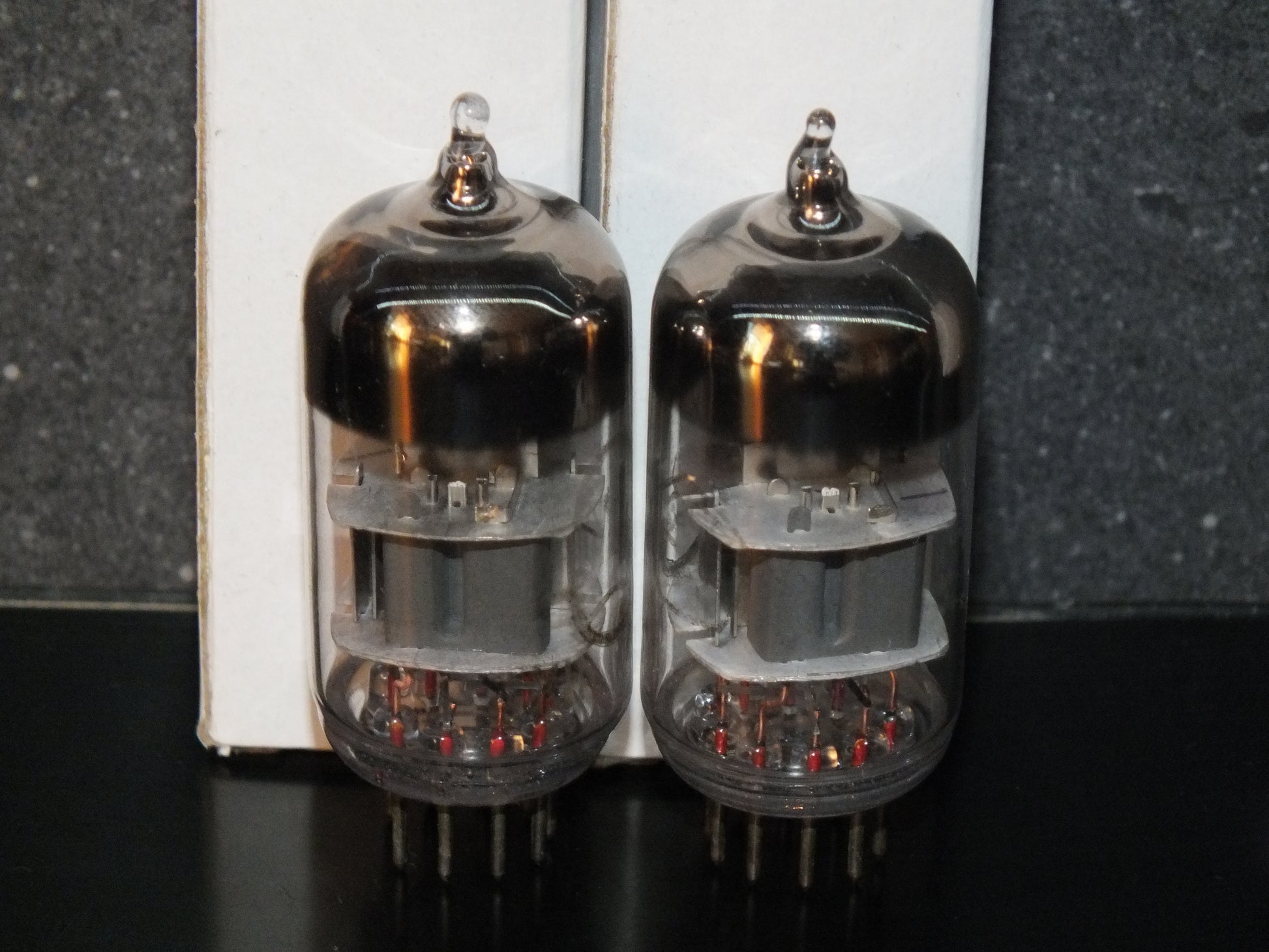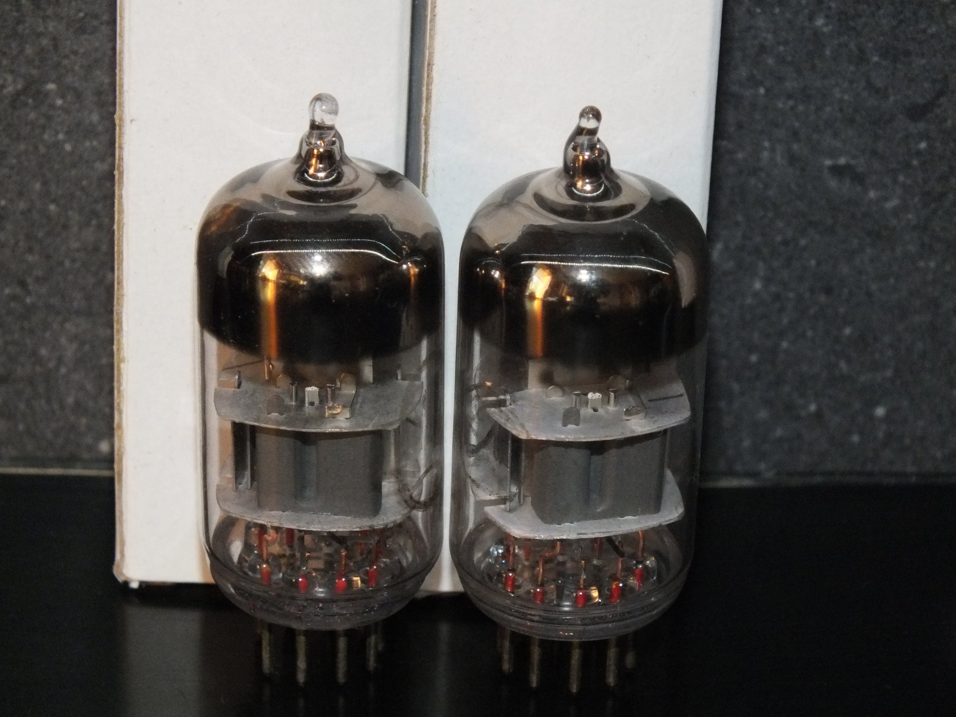 These are genuine gems: low-noise, carefully selected, and precisely matched. Two pairs available. Test results are written on the boxes, measured at 100V on the anodes and -1.5V on the grids.