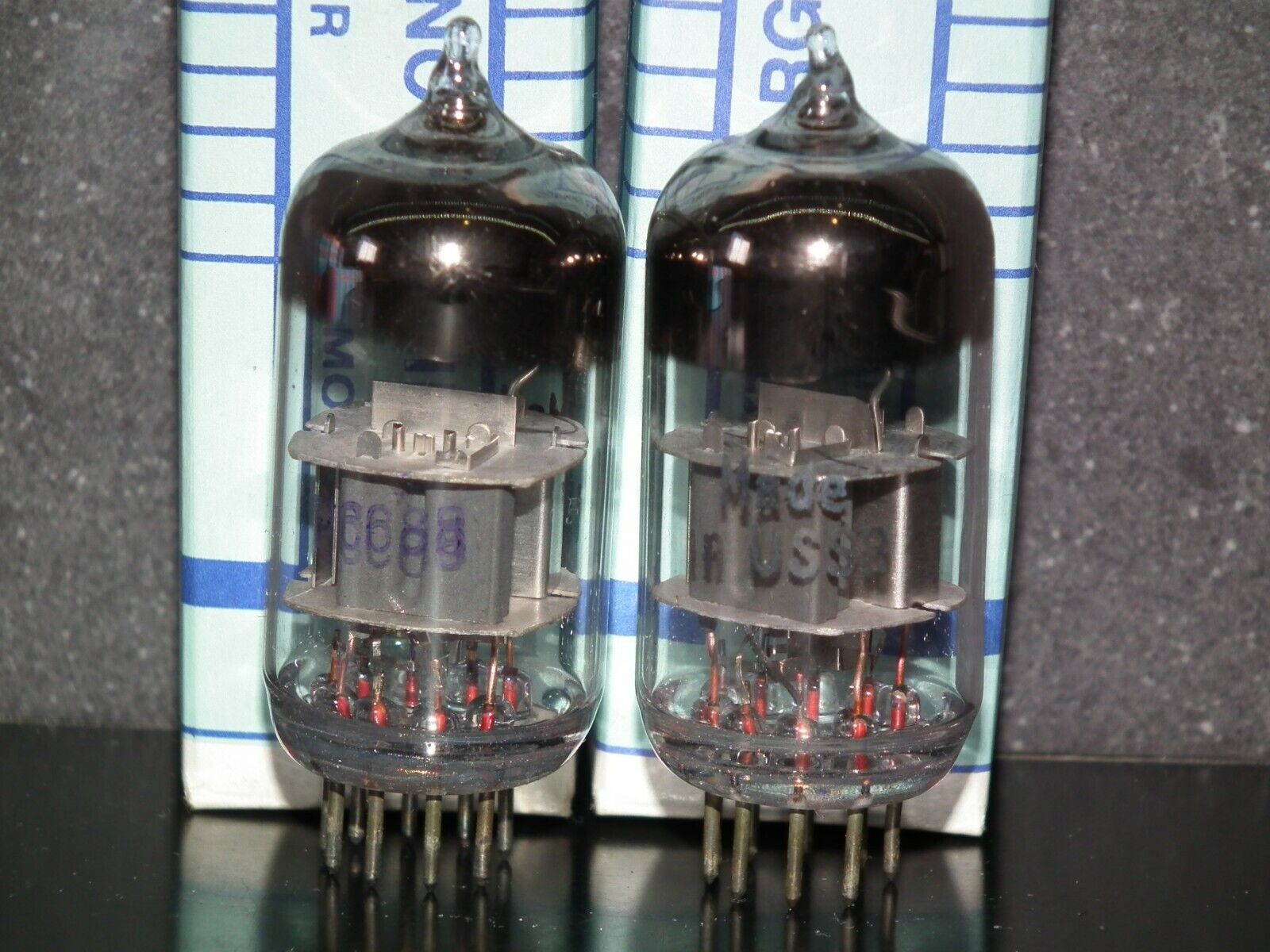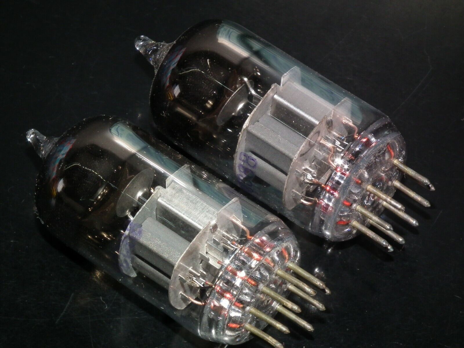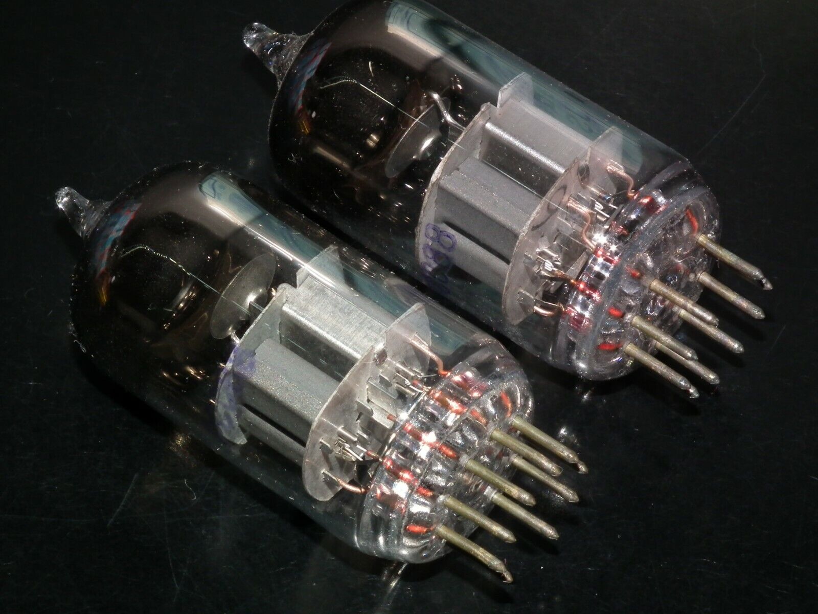 One matched pair (2 tubes), rare 6N23P Reflektor Holy Grail SWGP Silver Shield ECC88 6DJ8 E88CC 6922 CCa in Reflektor tube plant in Saratov USSR in 1975.