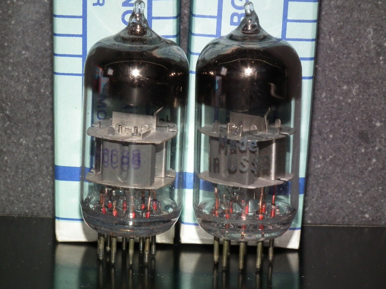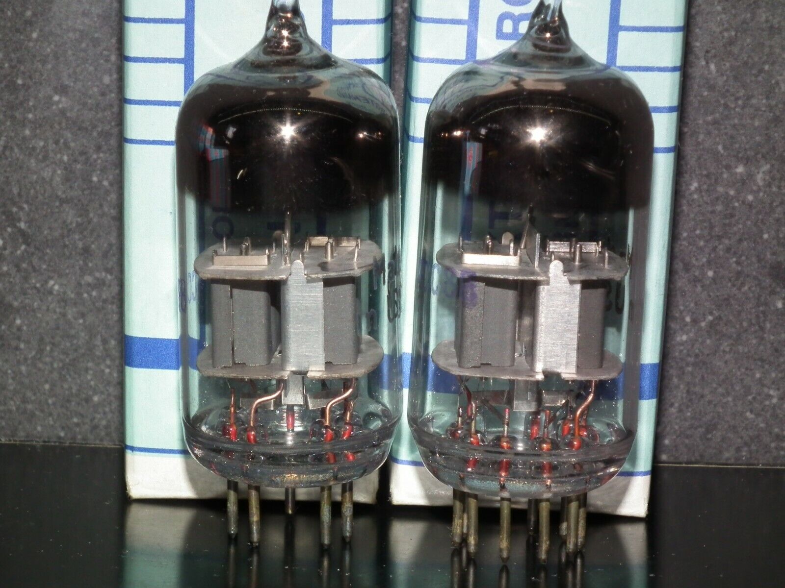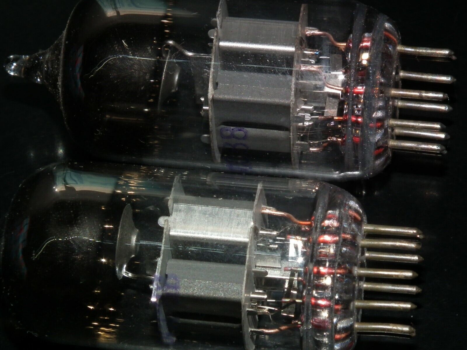 One matched pair (2 tubes), rare 6N23P Reflektor Holy Grail SWGP Silver Shield ECC88 6DJ8 E88CC 6922 CCa in Reflektor tube plant in Saratov USSR in 1975.