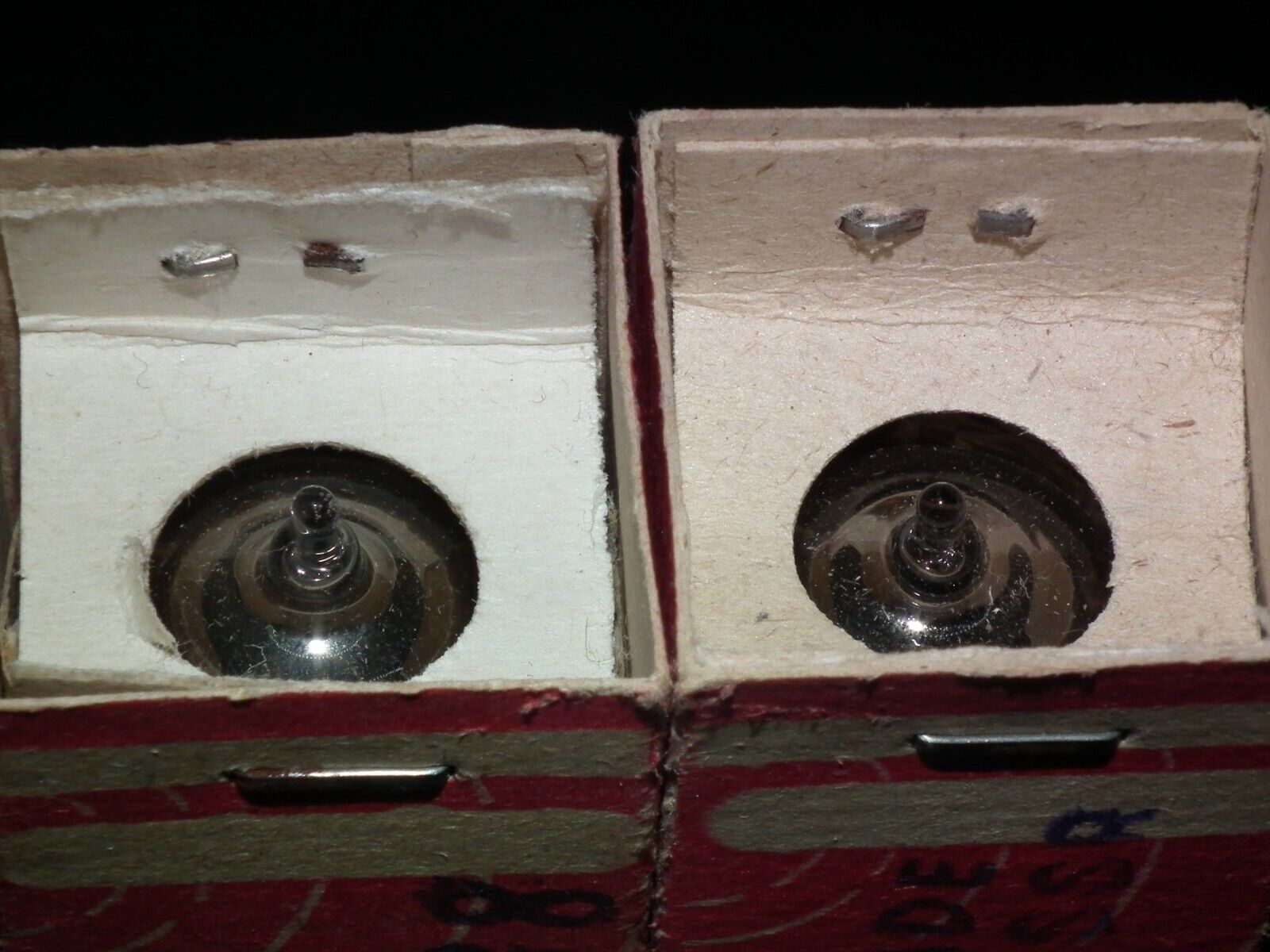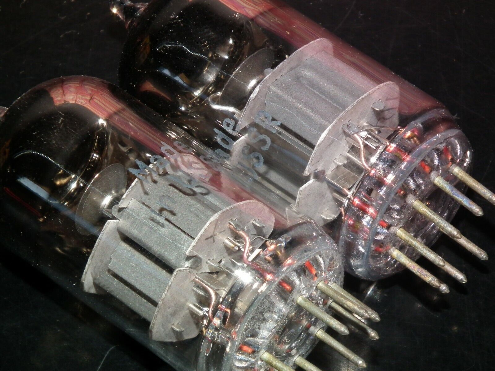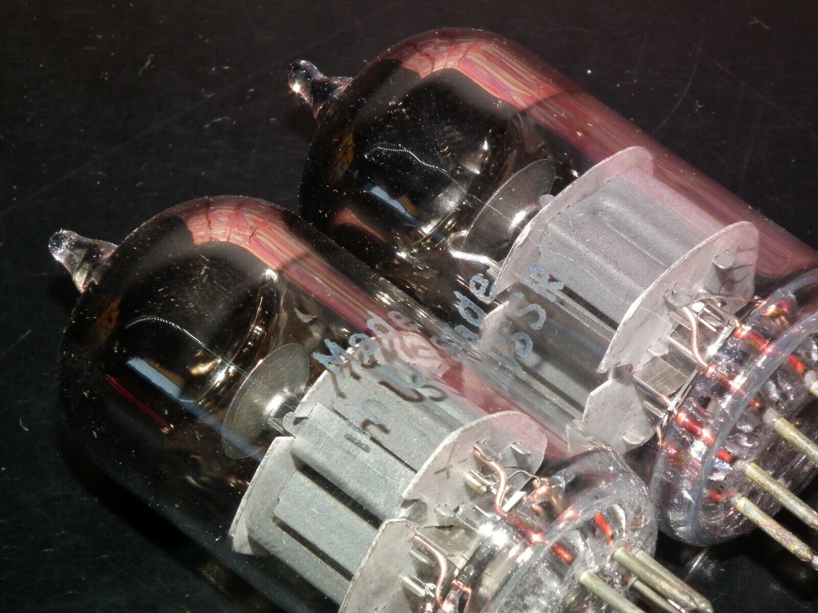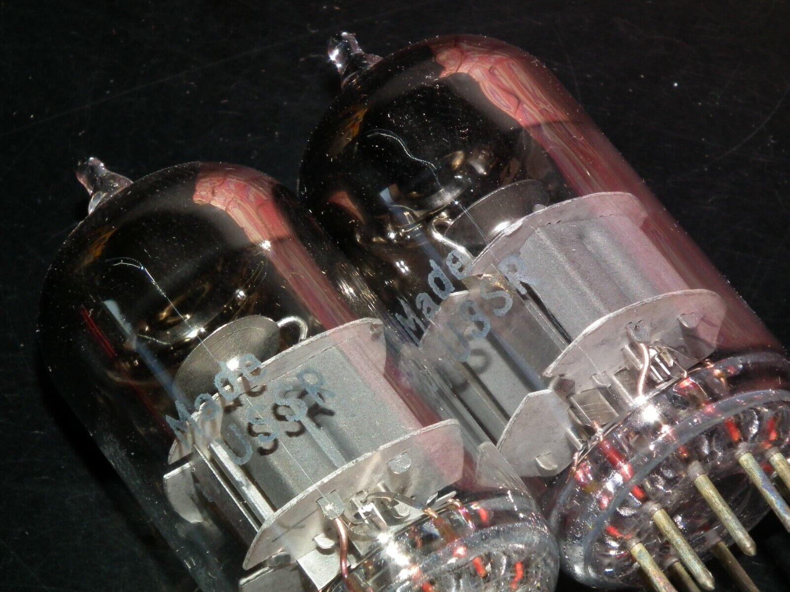 One matched pair (2 tubes), rare 6N23P Reflektor Holy Grail SWGP Silver Shield ECC88 6DJ8 E88CC 6922 CCa in Reflektor tube plant in Saratov USSR in 1975.