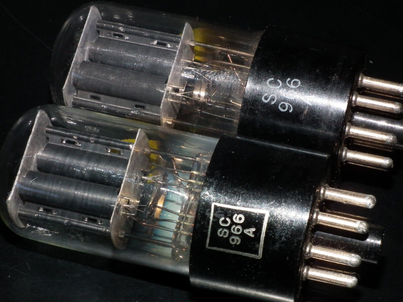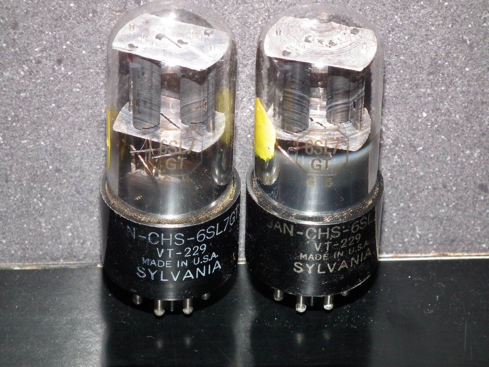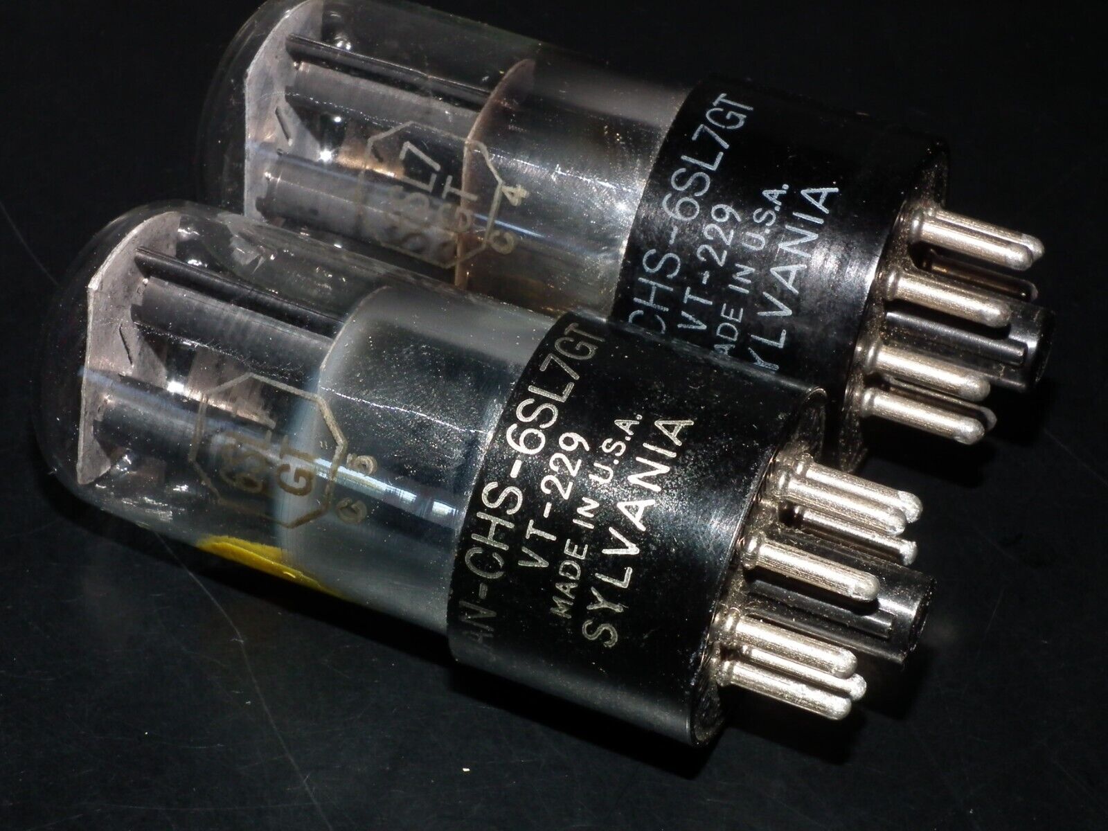 One matched pair (2 tubes) RARE 6SL7GT Sylvania VT-229 JAN NOS black coated, close date codes (40s), carefully tested on calibrated tester with 250V on anodes and -1.5V on grids: (4.4/3.8mA) (4.5/4.0mA)