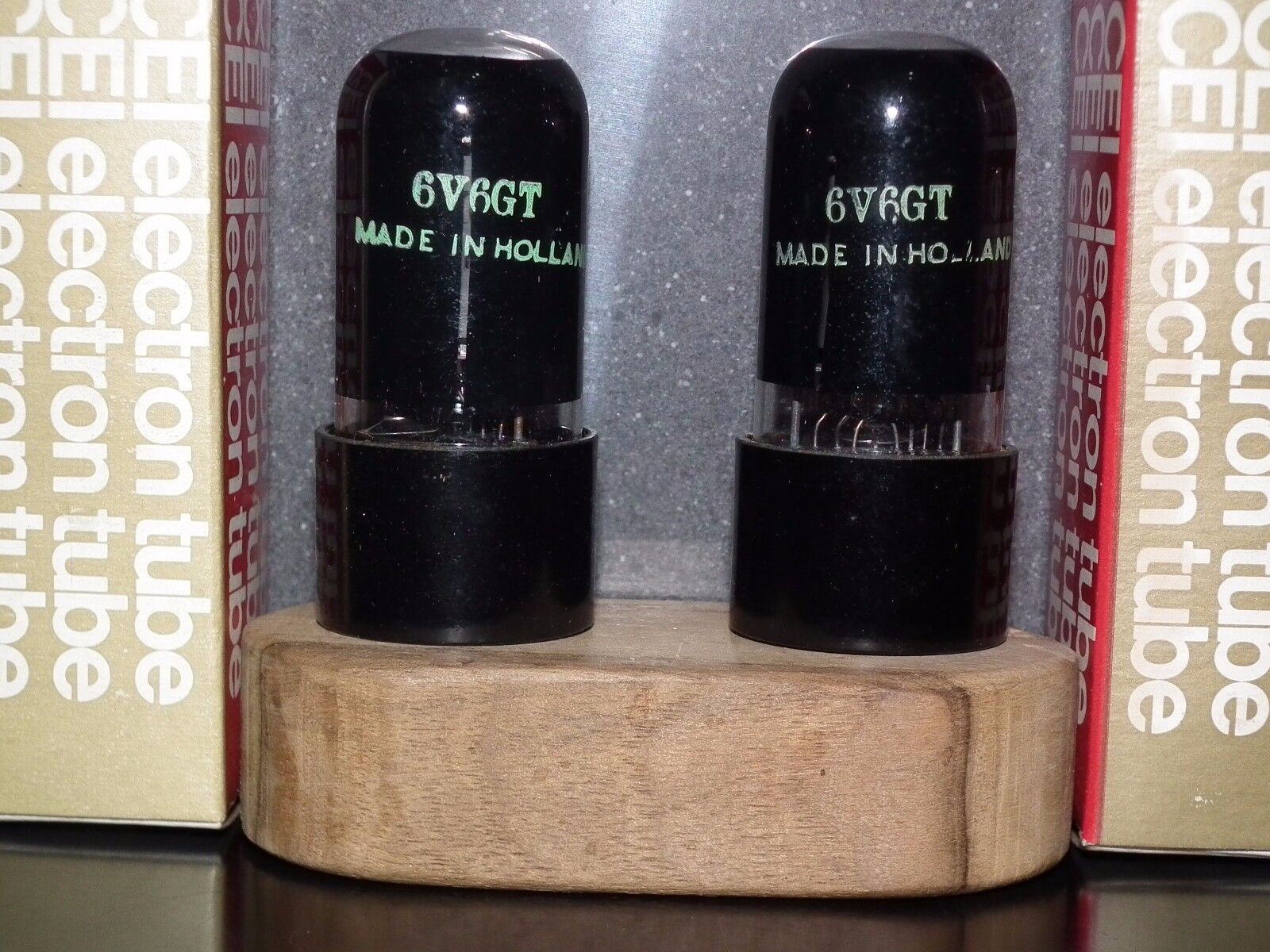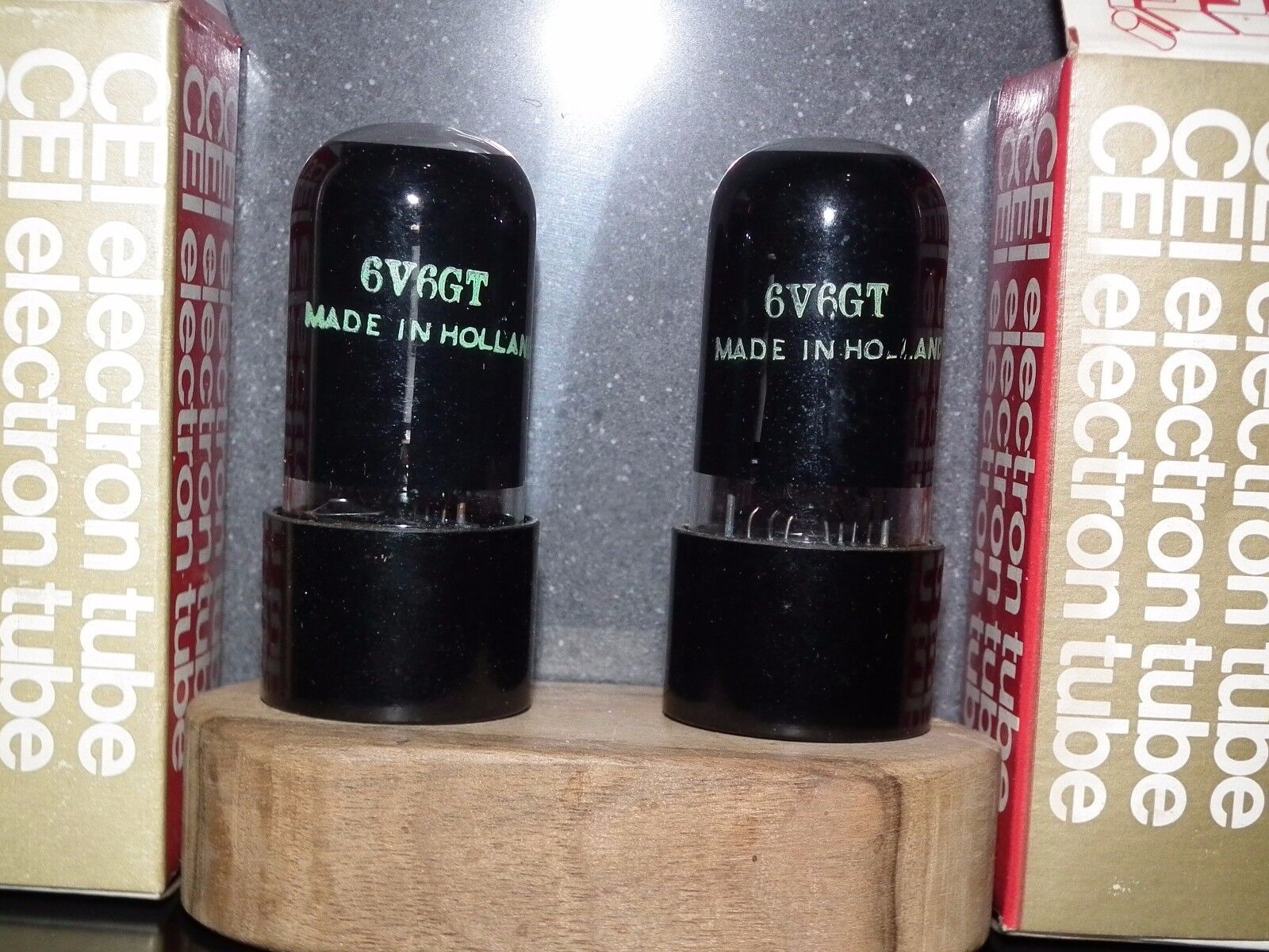 One perfectly matched pair (2 tubes) of genuine 6V6GT made by CEI in Holland.