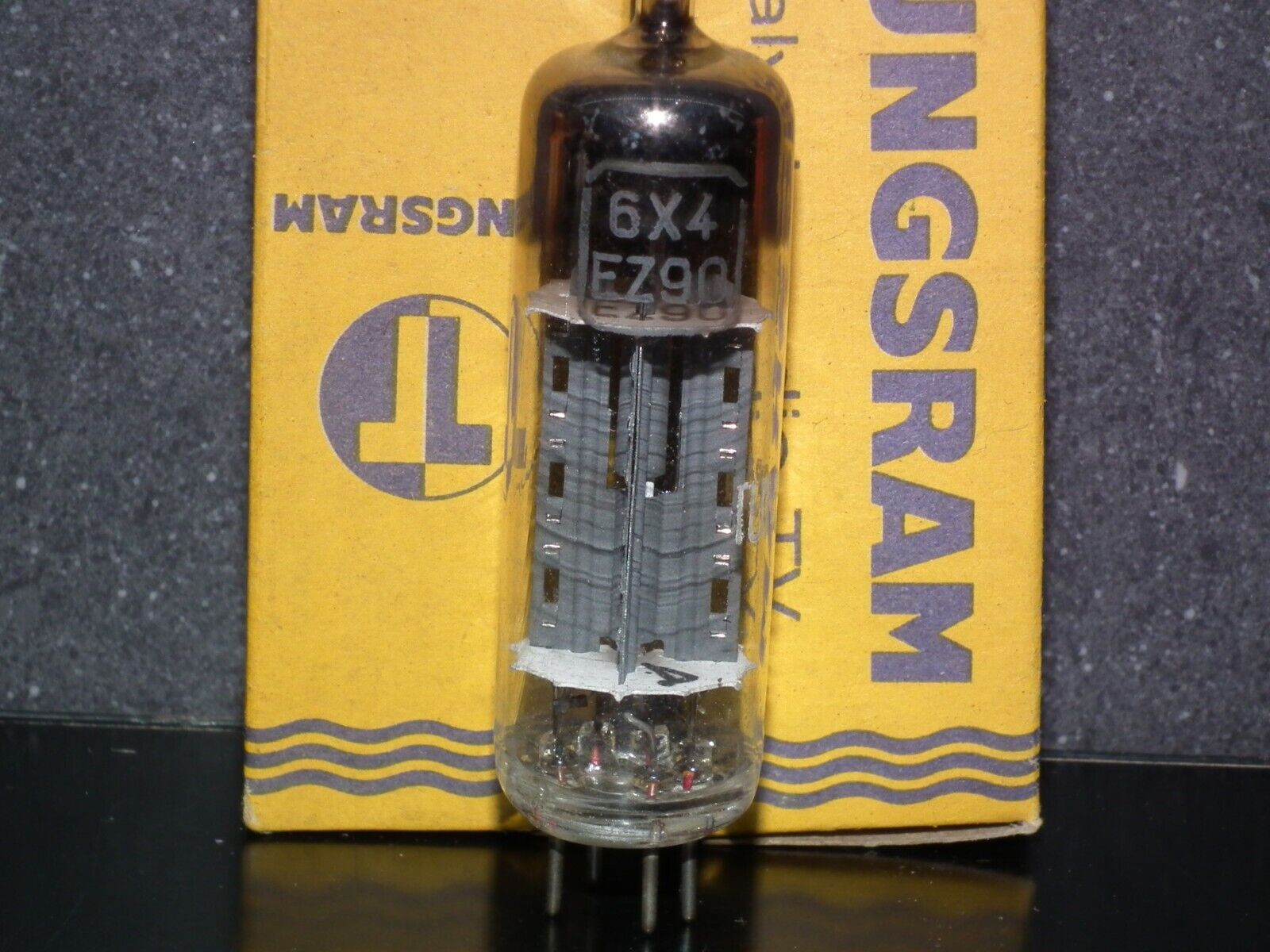 One (1) 6X4 EZ90 Tungsram Austria, RARE SQUARE GETTER, made back in 1961. NOS NIB Tested