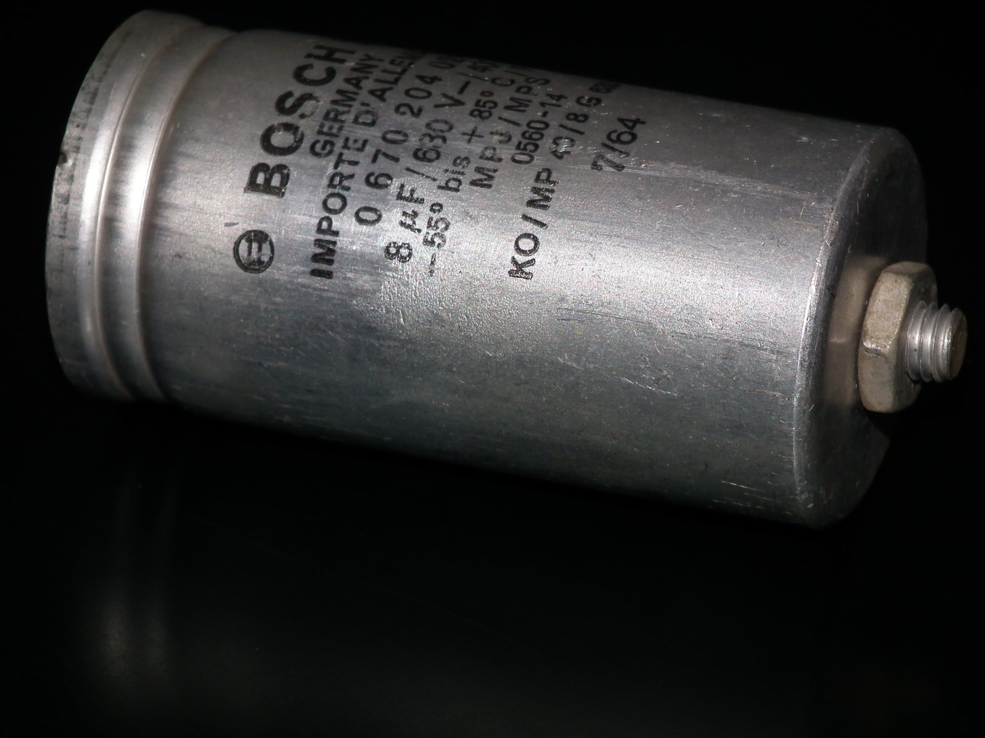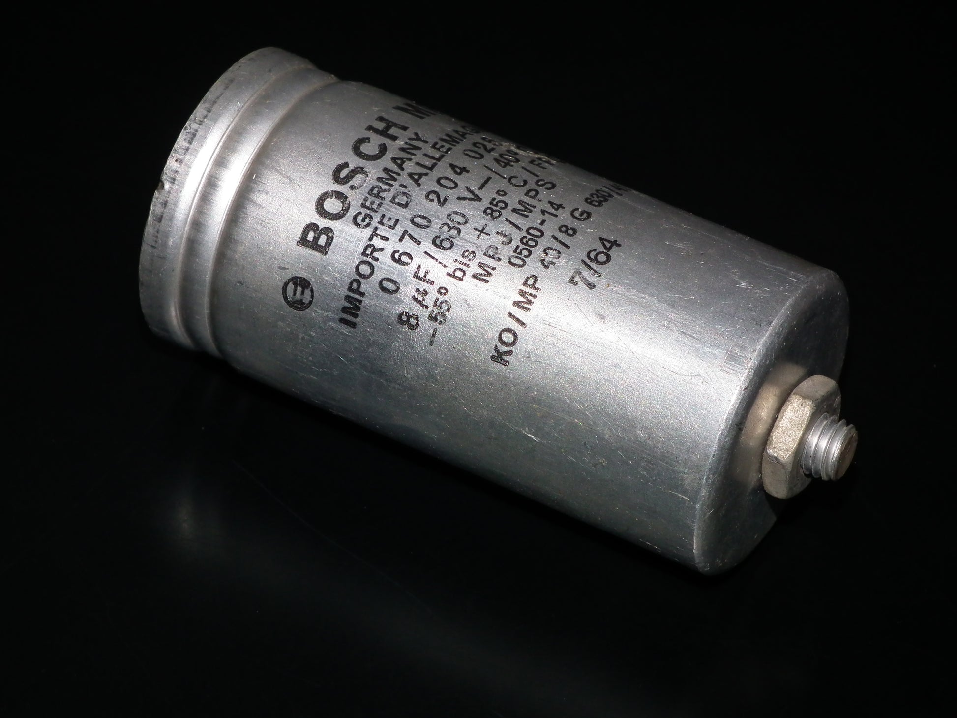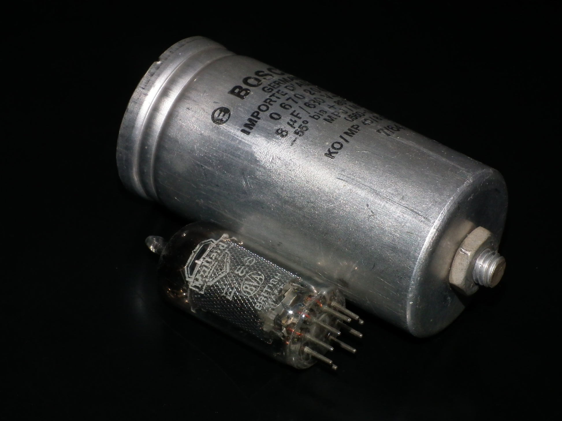 One (1 pcs) used, tested vintage audio capacitors, extremely rare and great sounding, ideal for tube amplifiers, made in West Germany in 60s by Bosch for Siemens, Klangfilm, perfect replacement and upgrade for hi end amplifiers and preamps.