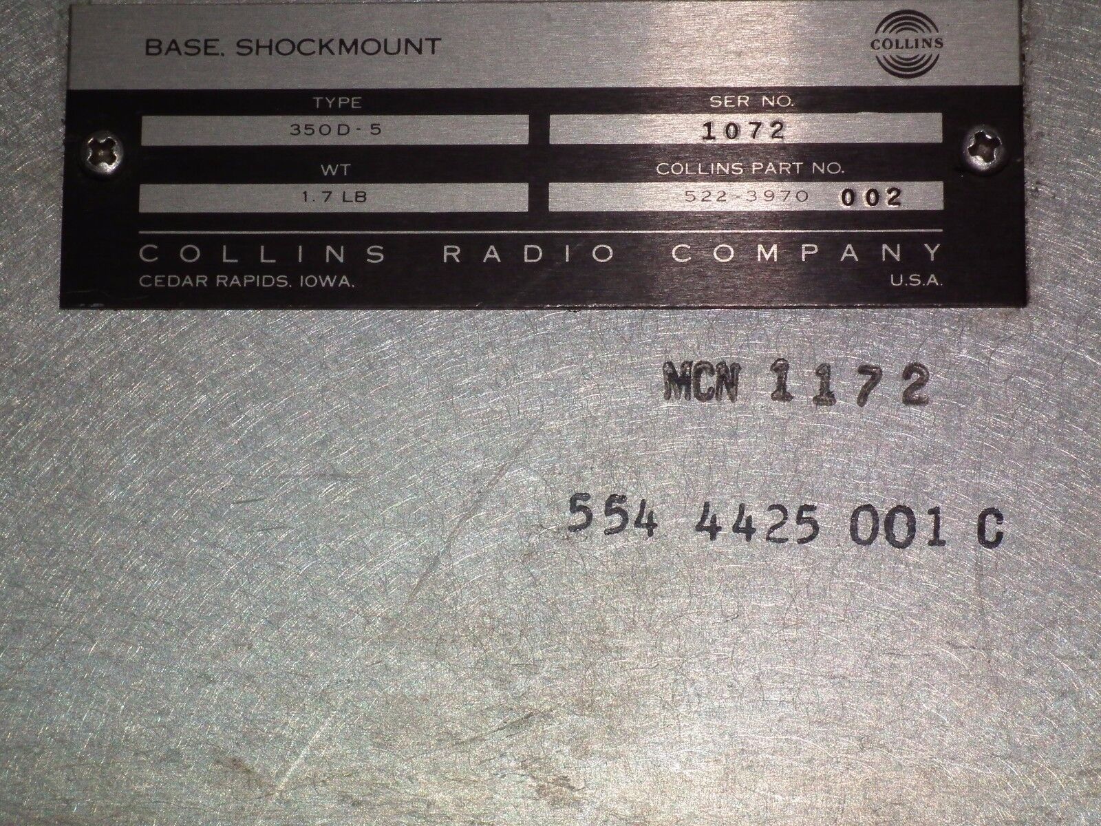 COLLINS 51S-1 - SHOCKMOUNT BASE 350D-5 - collins part no. 522-3970-002