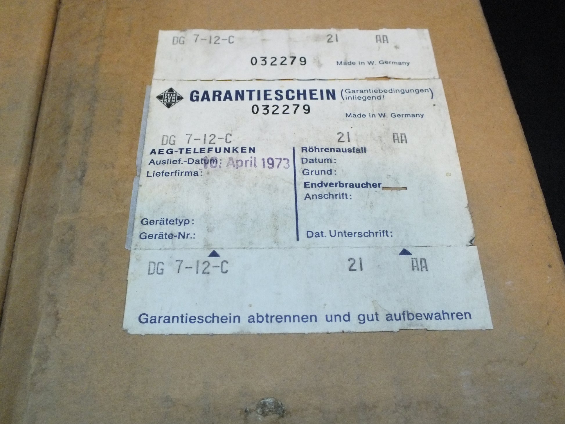 One (1 pcs) tube, rare DG7-12C Telefunken Cathode Ray Tube CRT Valve 3", NOS from genuine Telefunken spare tube set for professional Rohde & Schwarz device.