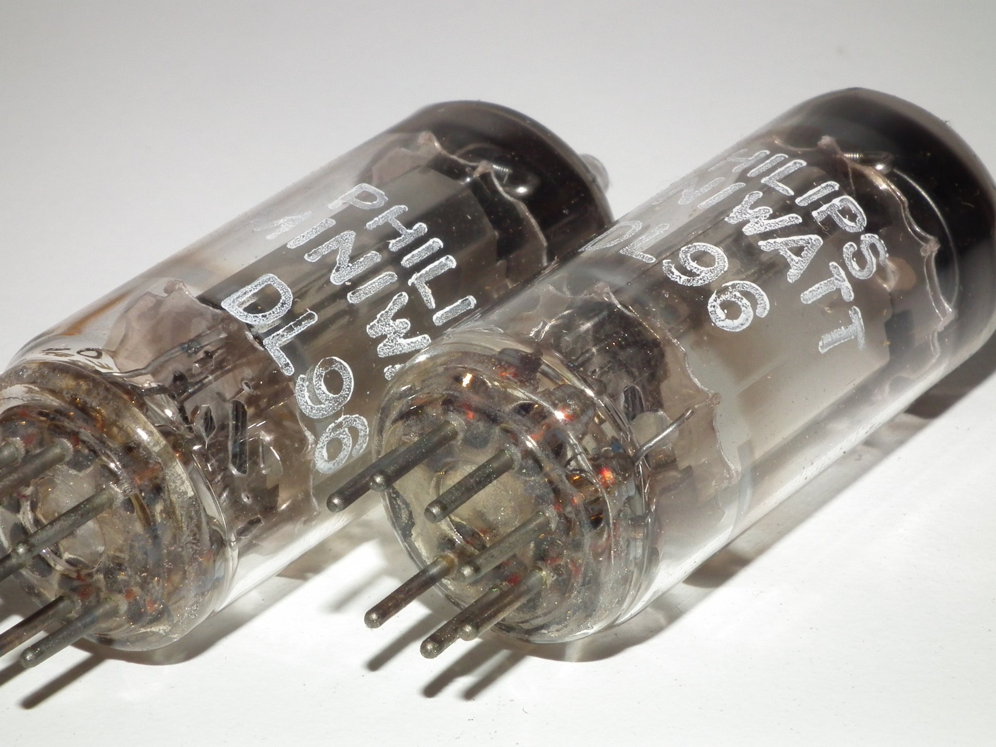 Platinum matched pair (two tubes) of rare DL96 Philips made by Valvo, Hamburg