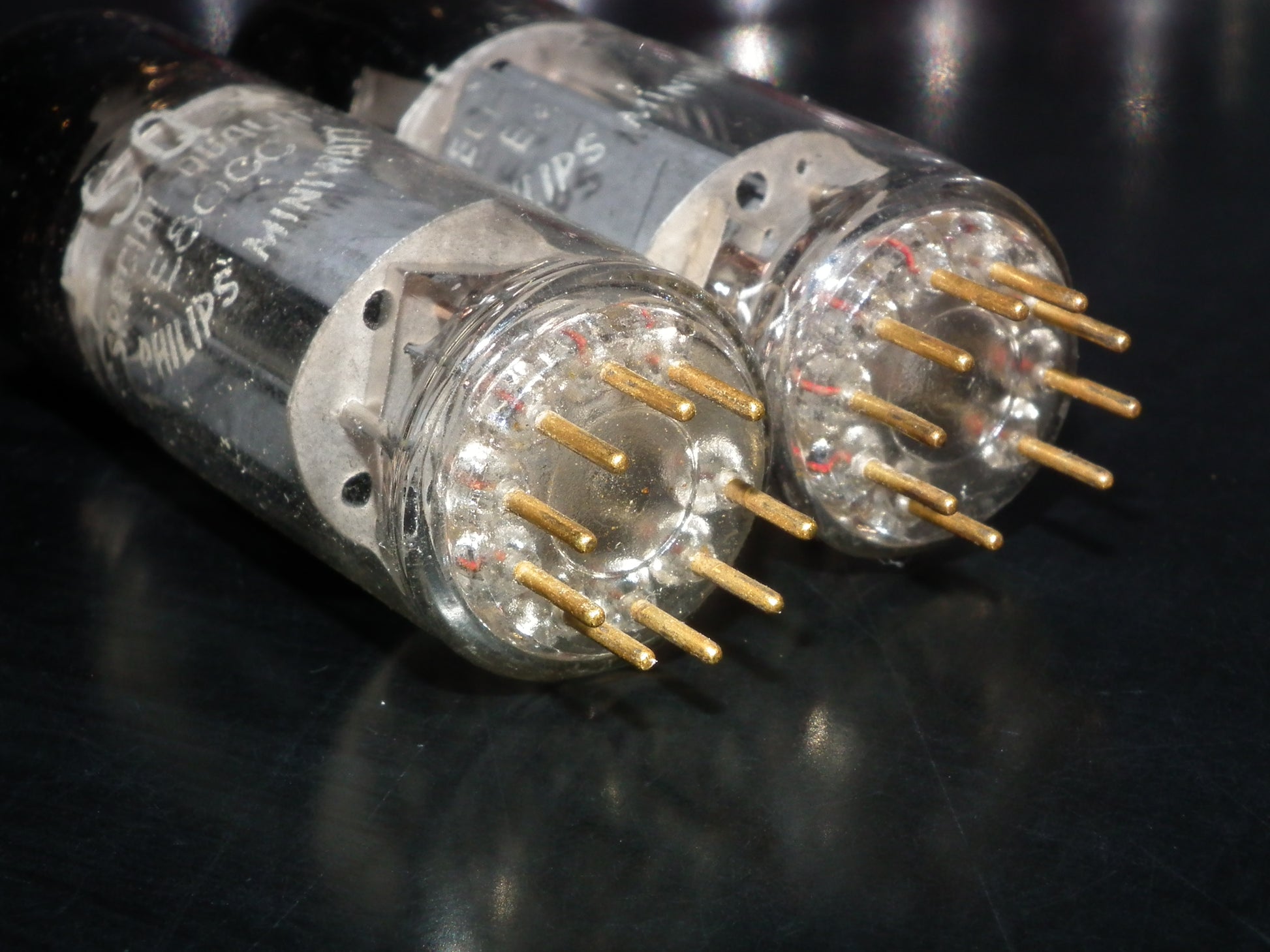 Platinum matched pair (two tubes) of rare Philips E80CC / 6085 made in famous Eindhoven plant in 1954.