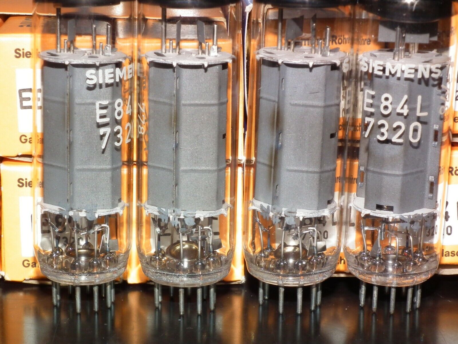 Auction is for one platinum matched quad (four tubes) E84L 7320 NOS NIB made in famous Siemens & Halske tube plant in Munchen, West Germany.