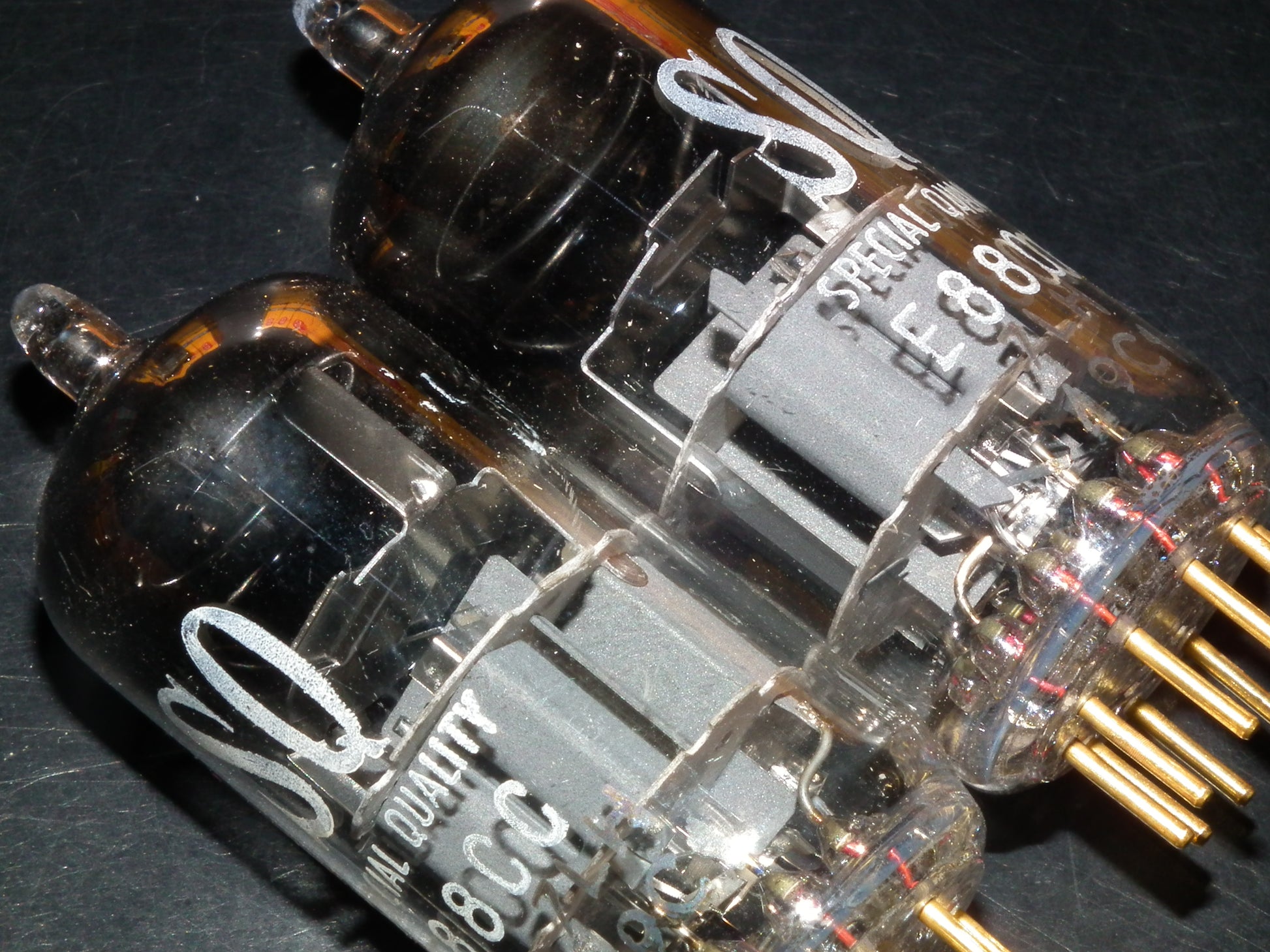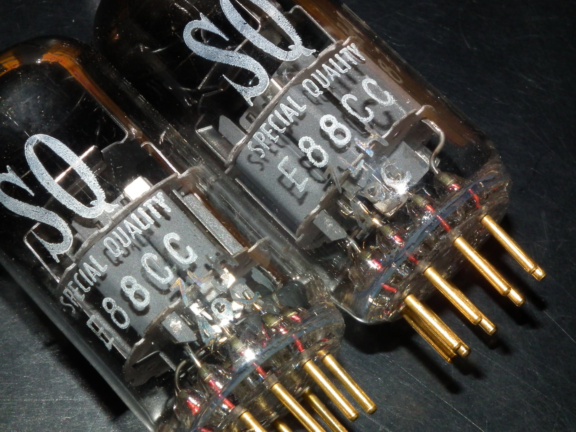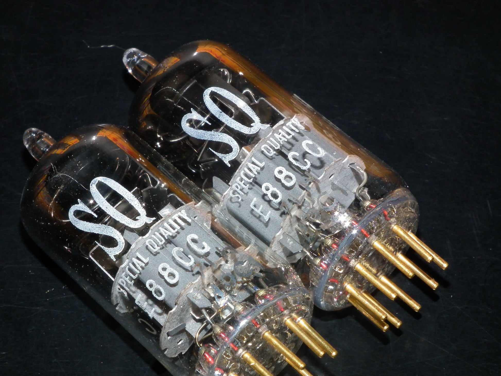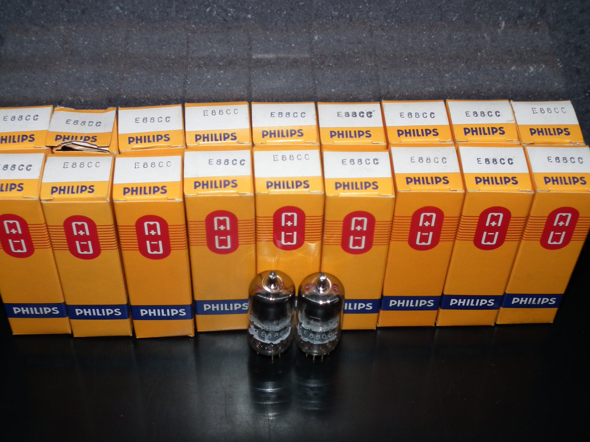 New in original boxes, gold pins, the same codes, gray electrostatic shield, double stage ring getter, made in Heerlen Holland. These are real PHILIPS MINIWATT “S.Q.” low noise frame grid inner construction tubes made for audio, and they are really great in audio use, famous for 3D, open air, sweet highs and exceptional mids.