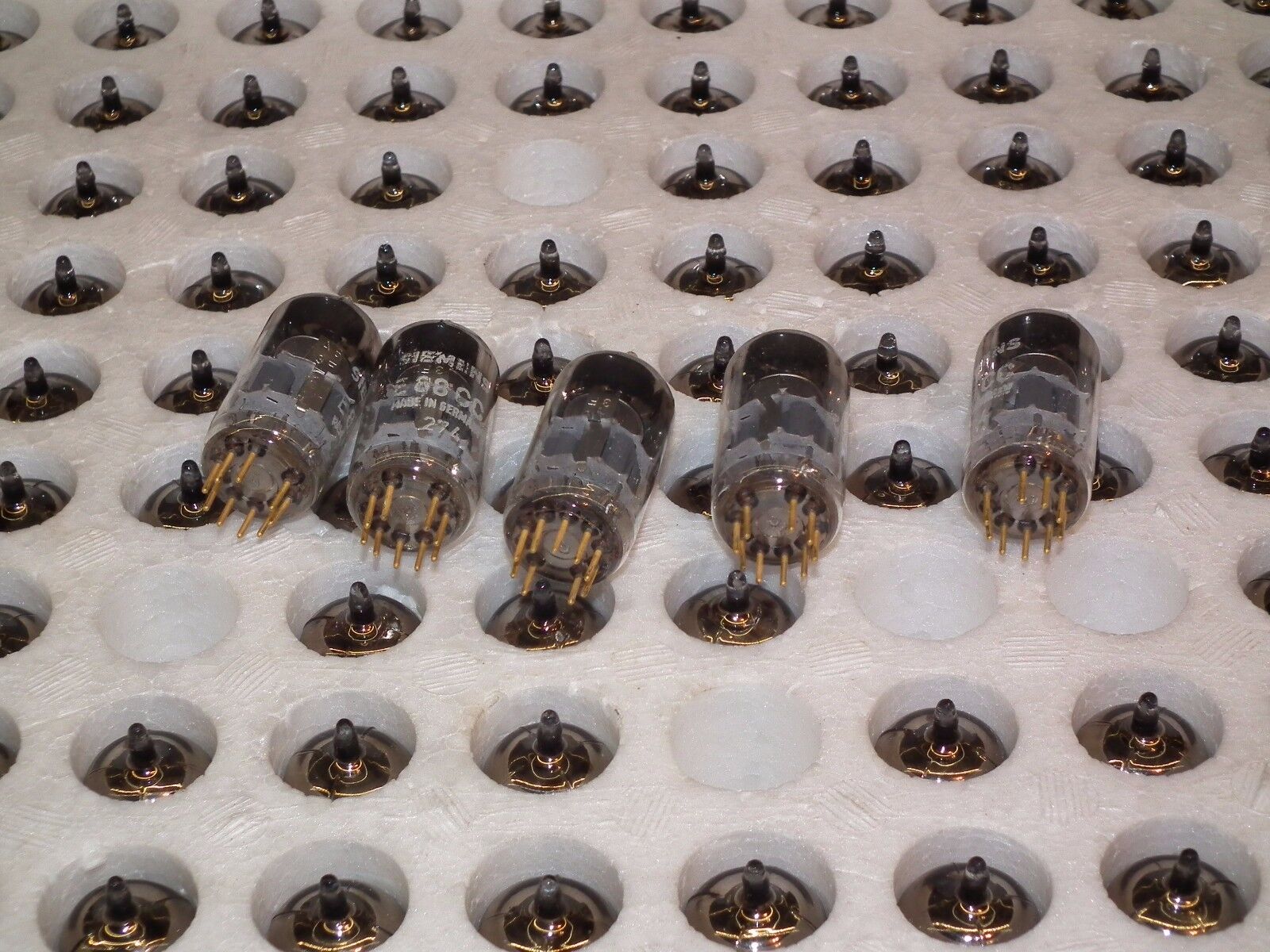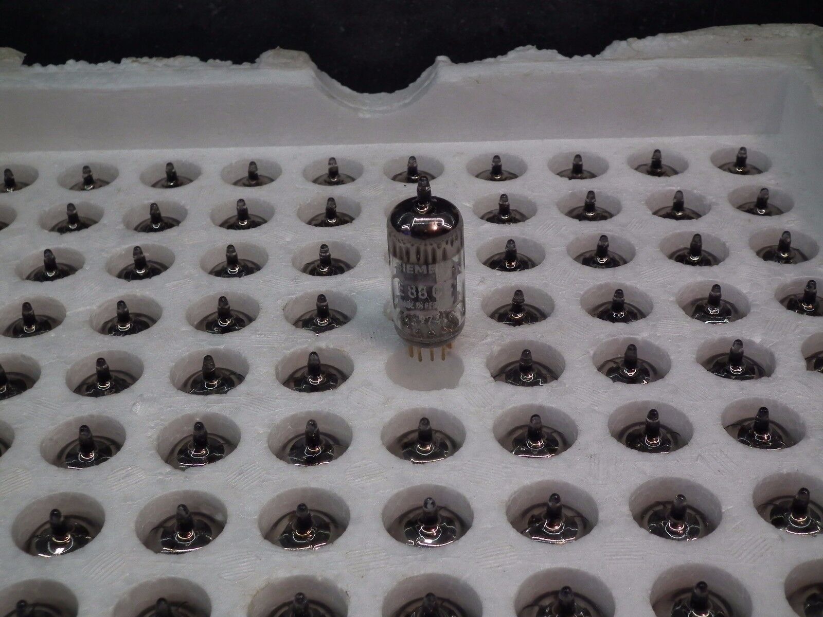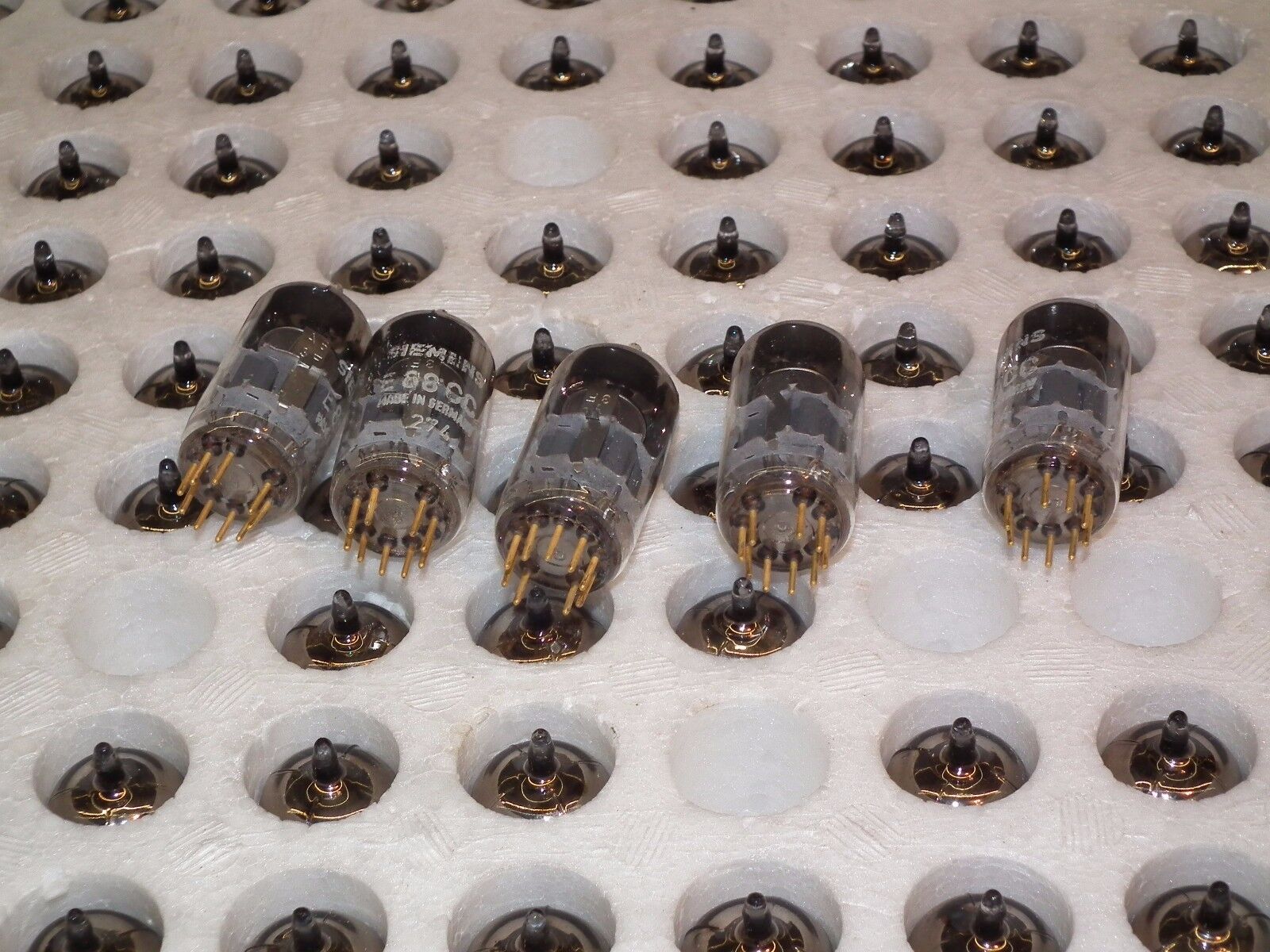 New (NOS) from bulk styro packaging of 100pcs without original boxes, gold pins, all the same A6 3F codes, silver electrostatic shield, A frame disc getter. These are real Siemens & Halske low noise and nicely selected and matched from big batch.