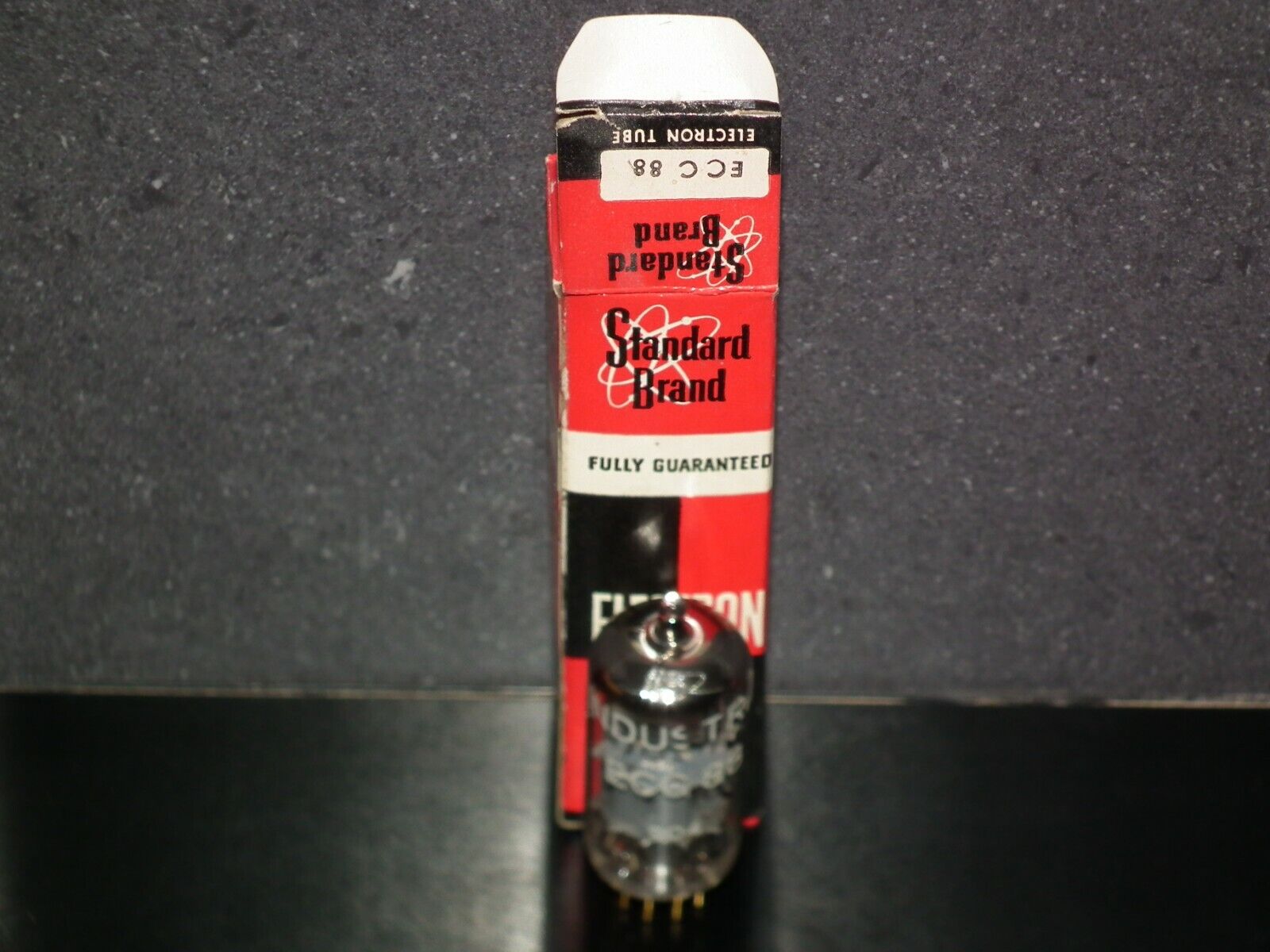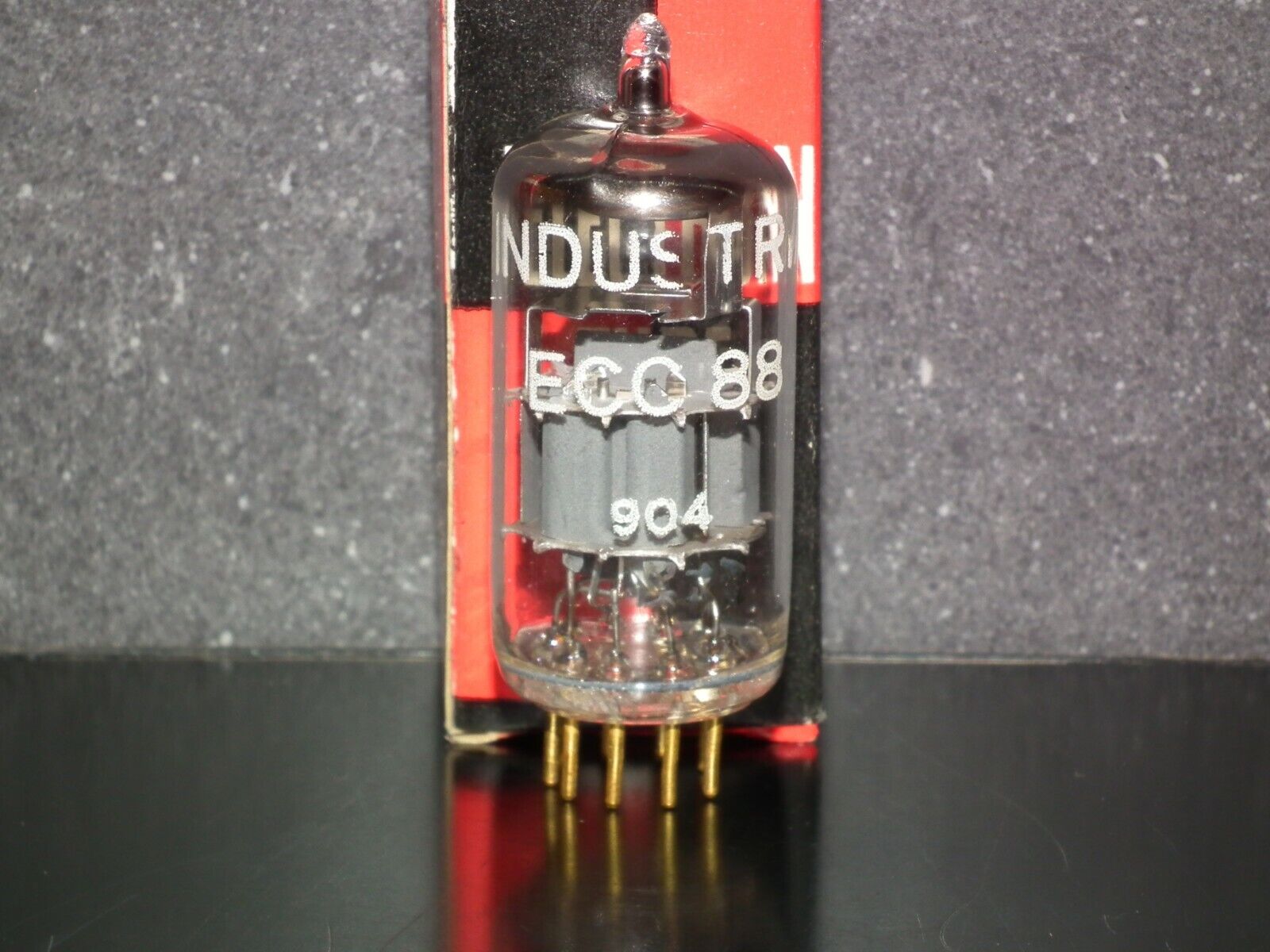 Auction is for one (1 tube) E88CC Siemens Rebranded Industrial RARE Gray Shield DUAL STAGE GETTER NOS NIB, made in famous Siemens&Halske Munich tube plant in 1961.