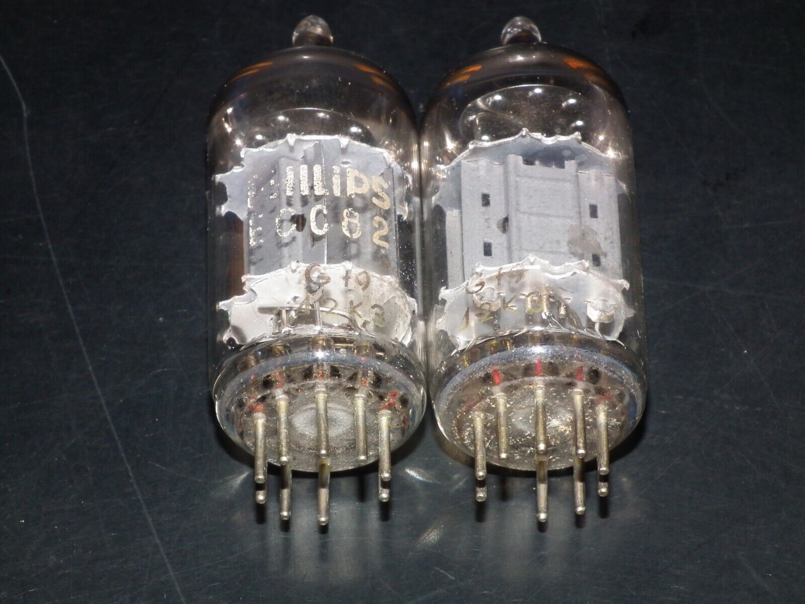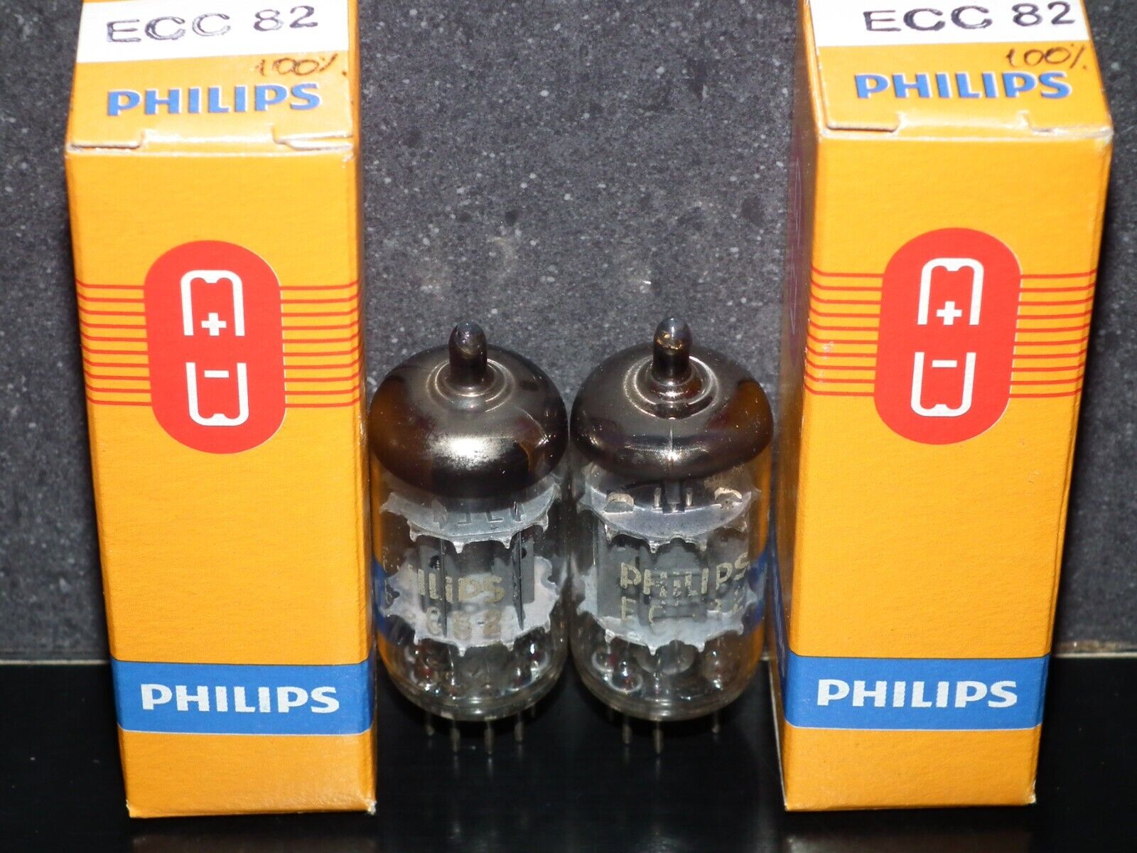 Auction is for two (2) fully tested used tubes, matched pair of rare ECC82 12AU7 Philips made in Heerlen, Holland in 60sUsed, carefully tested, 100% of NOS values. Tested also in my amp to exclude any cracking and noise.