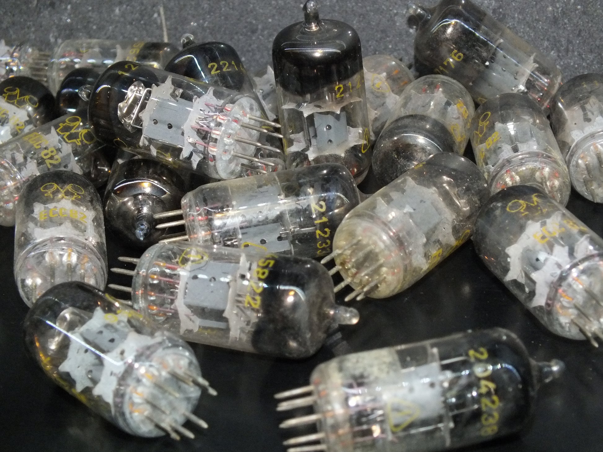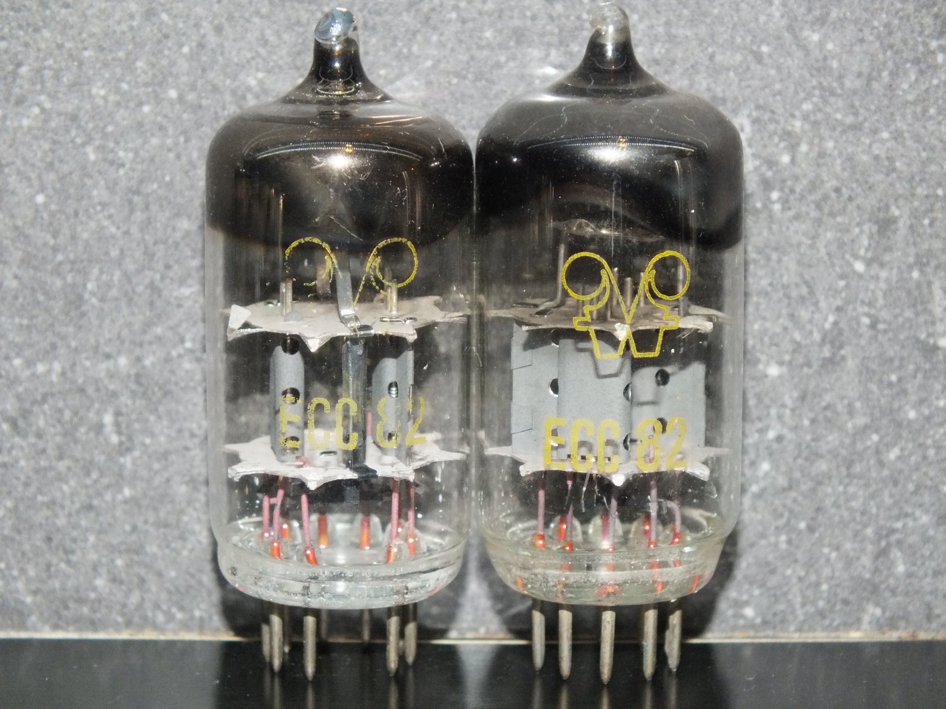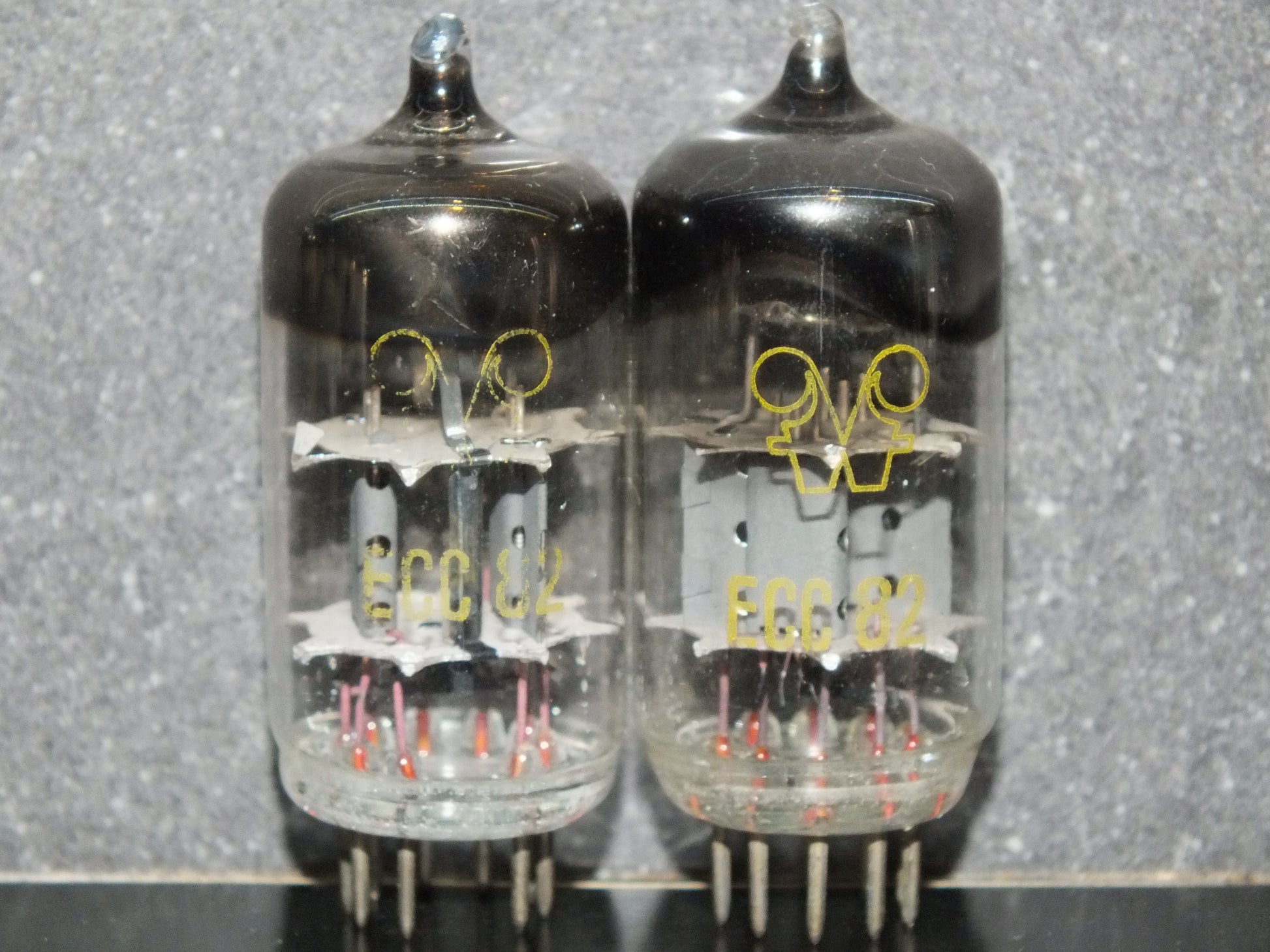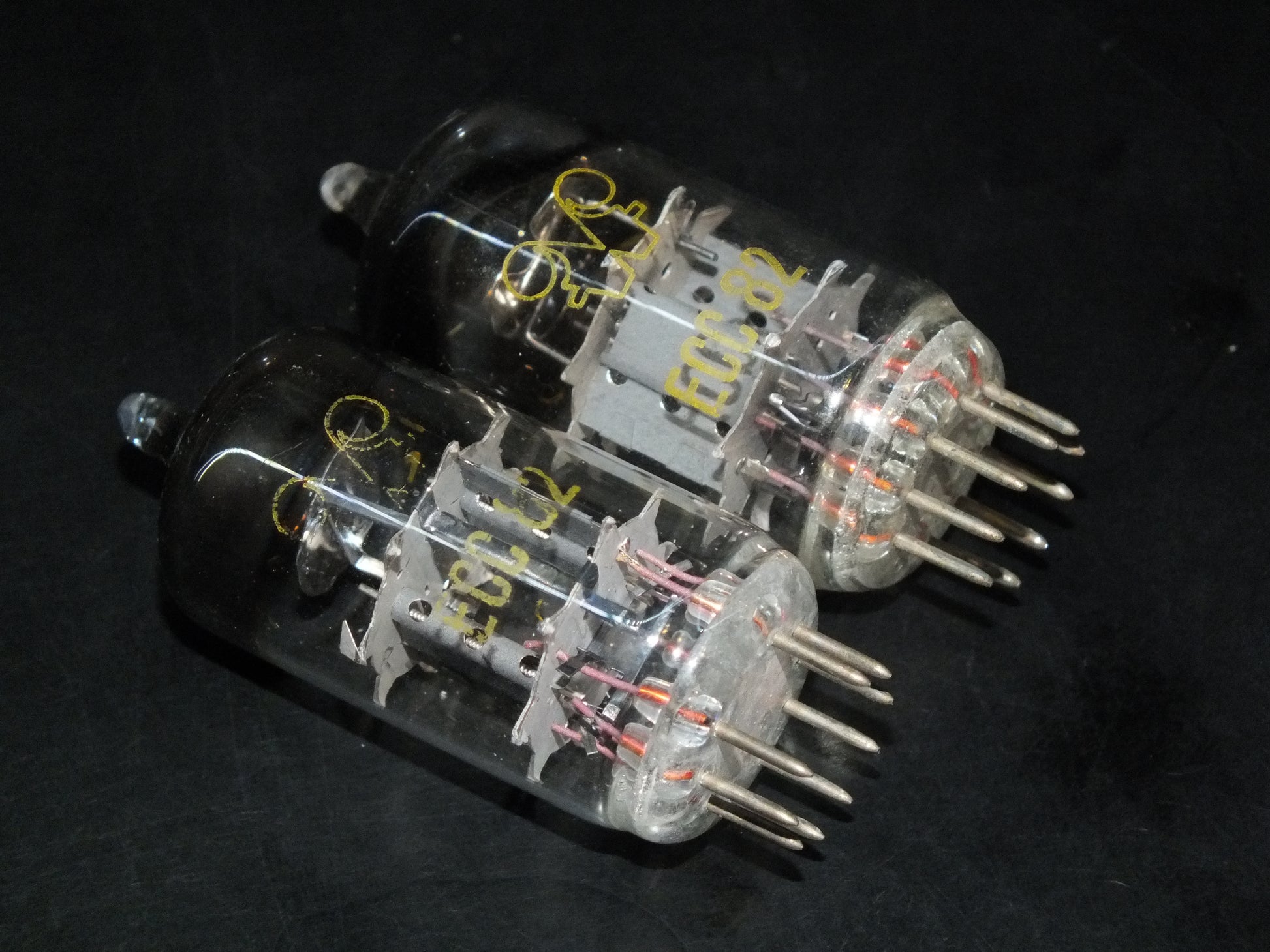 Two (2 pcs) fully tested tubes, matched pair of rare ECC82 12AU7 RFT, made in East Germany in mid 50s, much better sounding version than later types and different construction.
