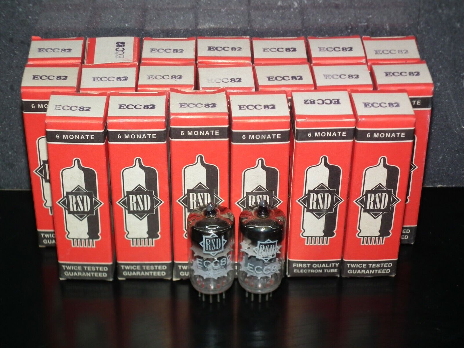 ECC82 12AU7 RFT rebranded RSD, NOS NIB Platinum Matched Pair, the same codes 70s