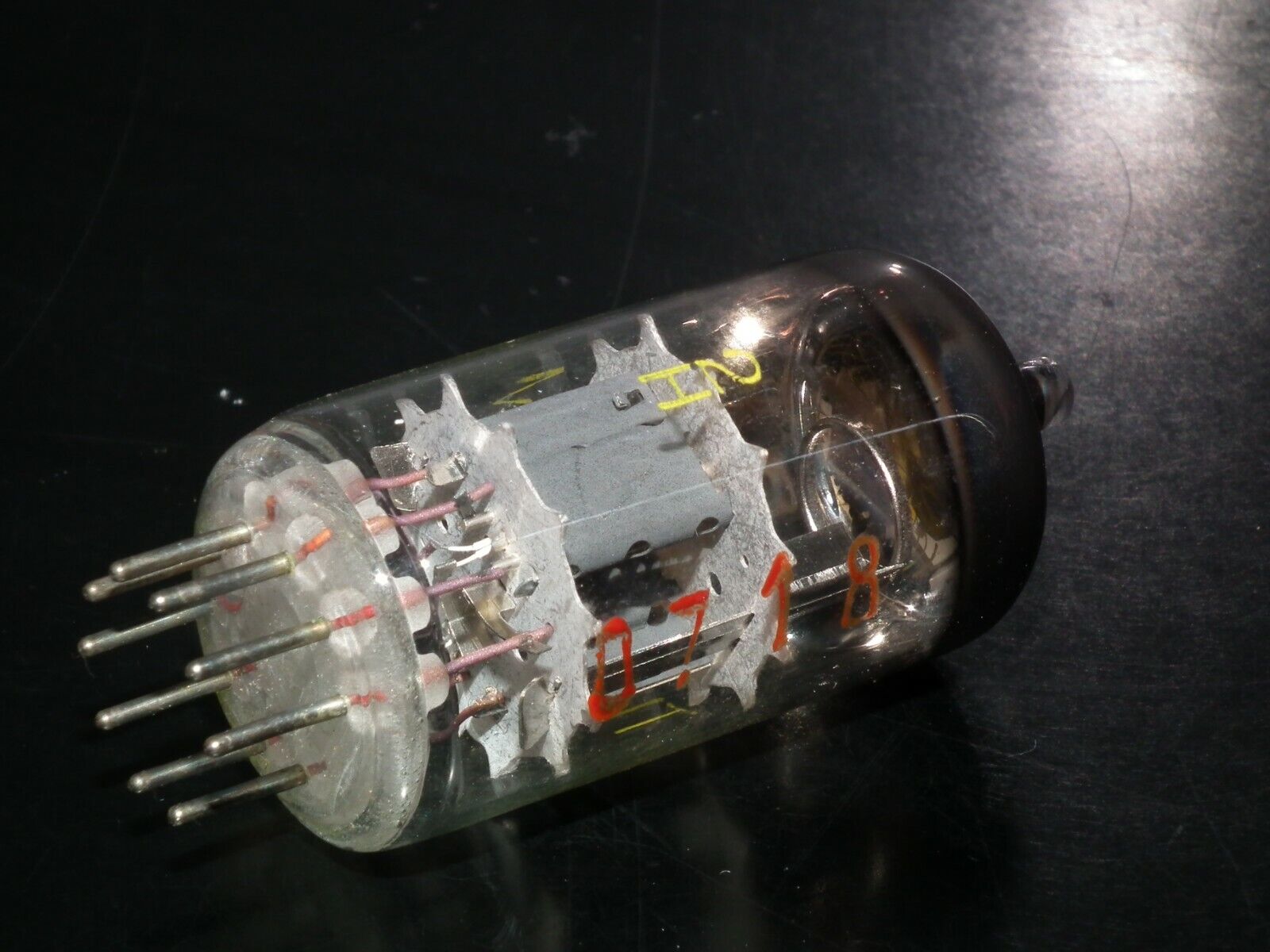 It's tested with 250V on plates and -12V on grids, and results are (4.8 / 5.1 mA), very strong and very quiet tube, a lot life left.
