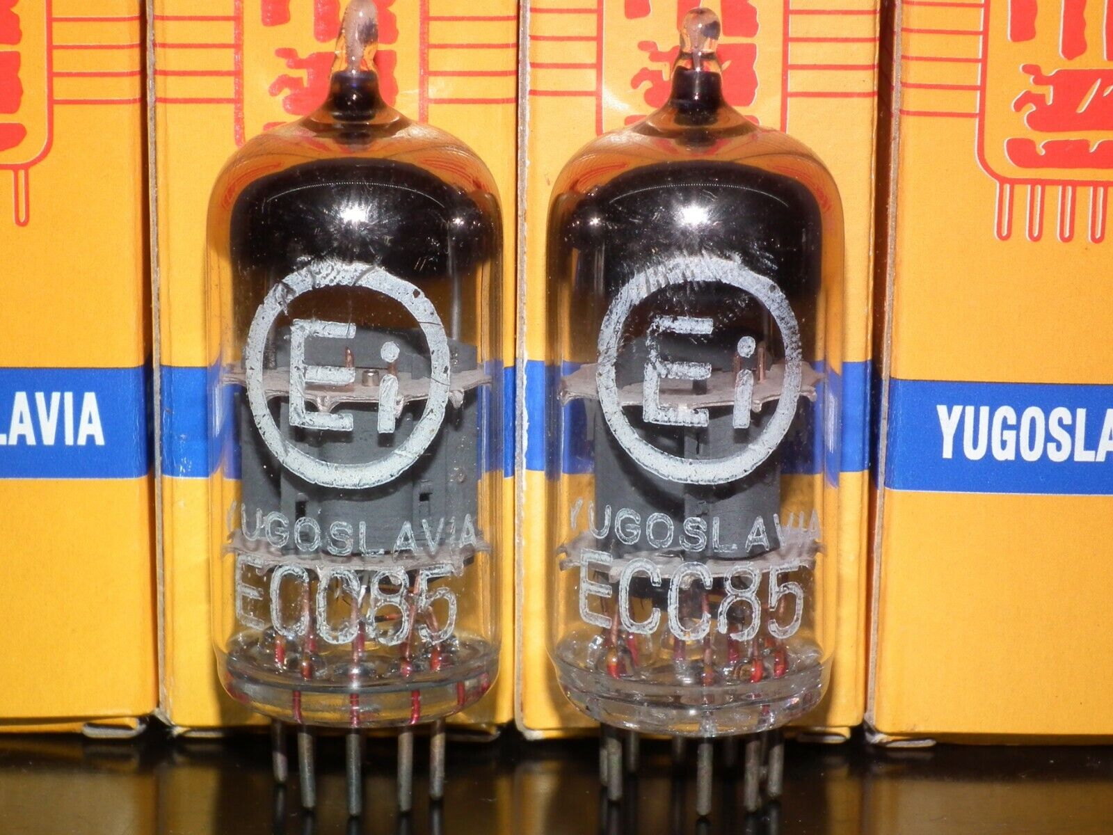 For sale is one platinum matched pair of ECC85 6AQ8 Ei PhilipsNOS in original boxes. Tubes are tested and matched by plate current and they are really in perfect working condition.They are early type from early 70s, made in Yugoslavia. Very good tubes used in many UHF converter units in old tube radio receiver from 60s , great double triode for audio use as well.