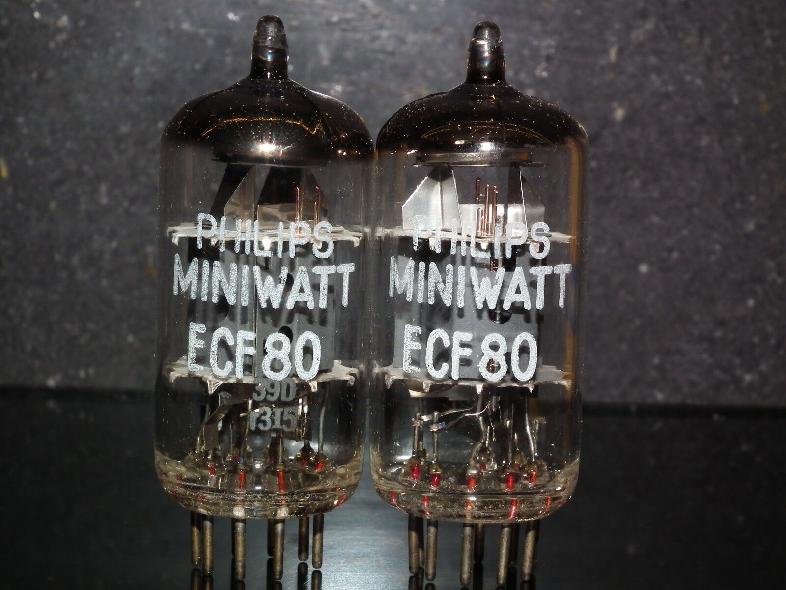 For sale is one perfectly matched pair of genuine 6BL8 / ECF80 made by Philips Mullard in 1963.