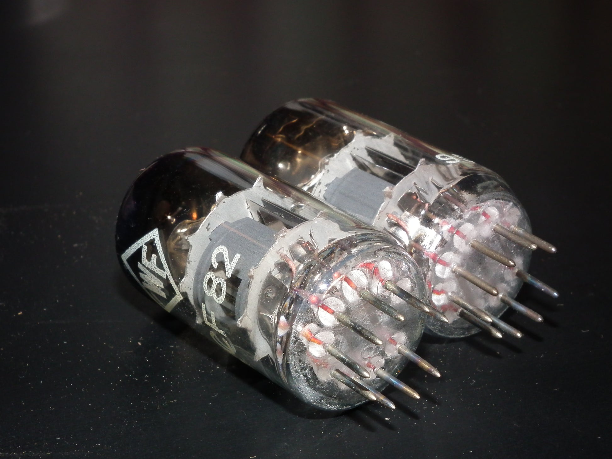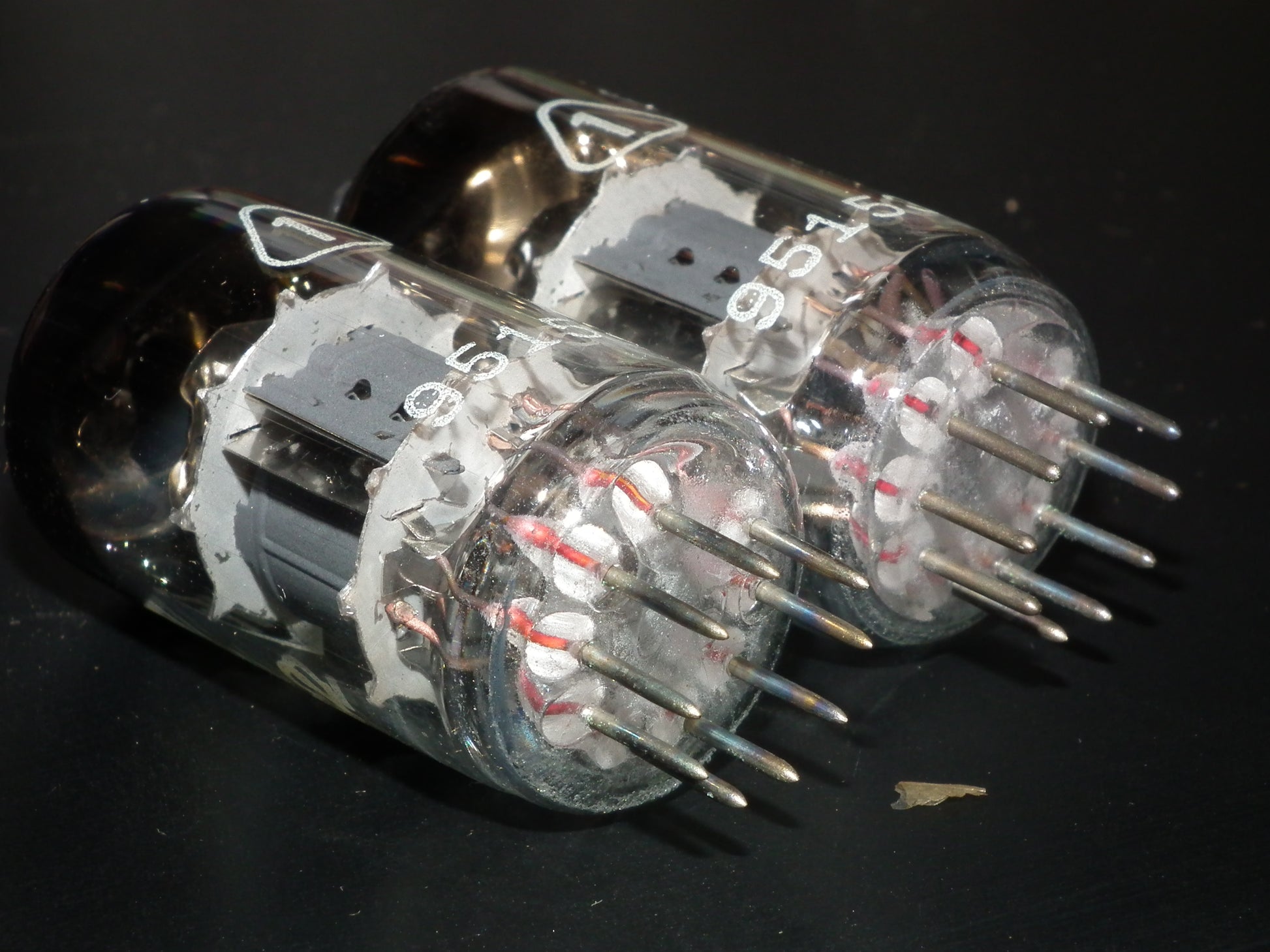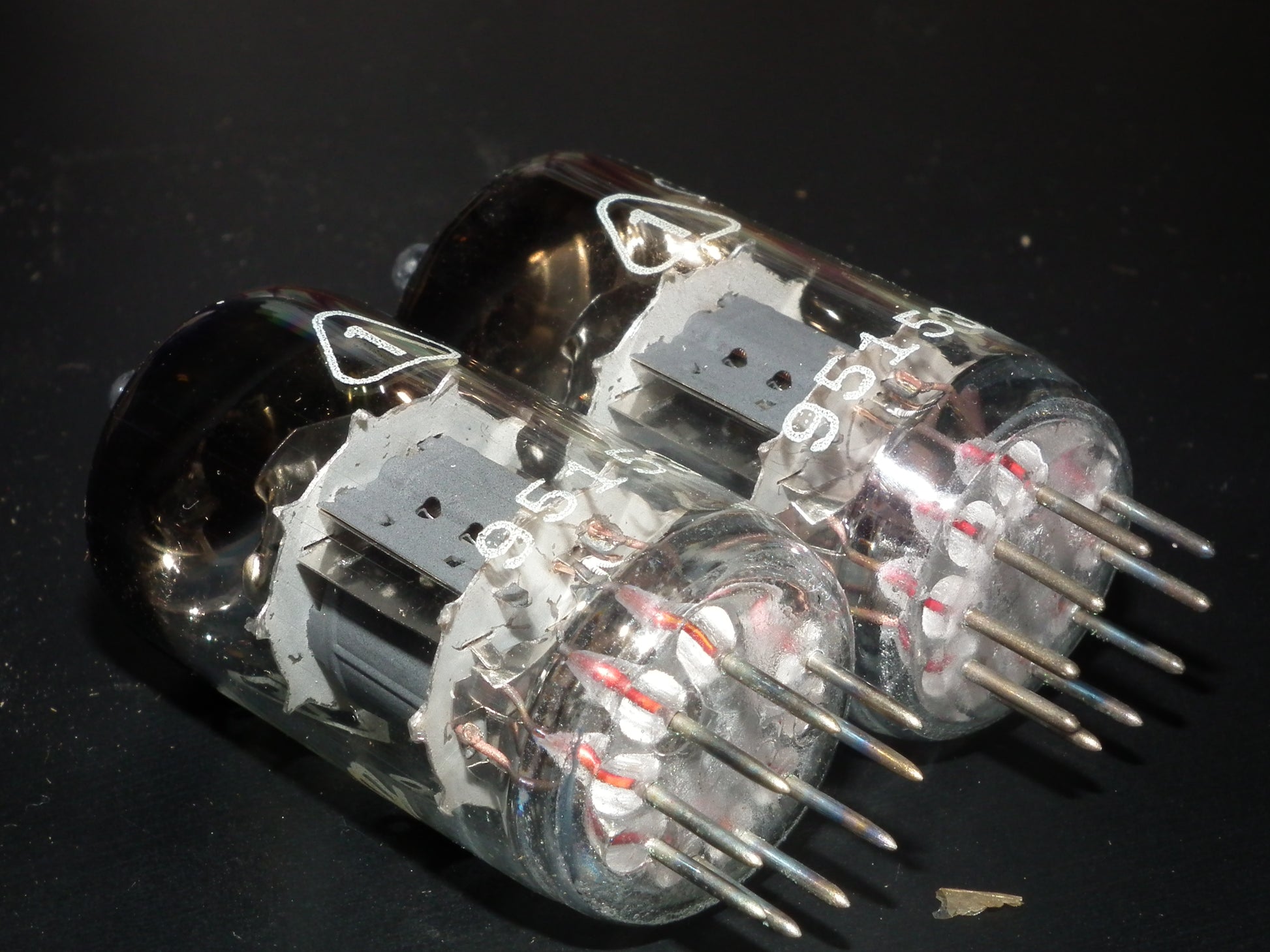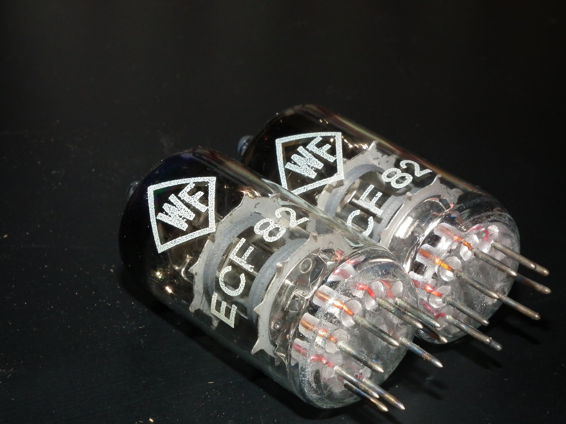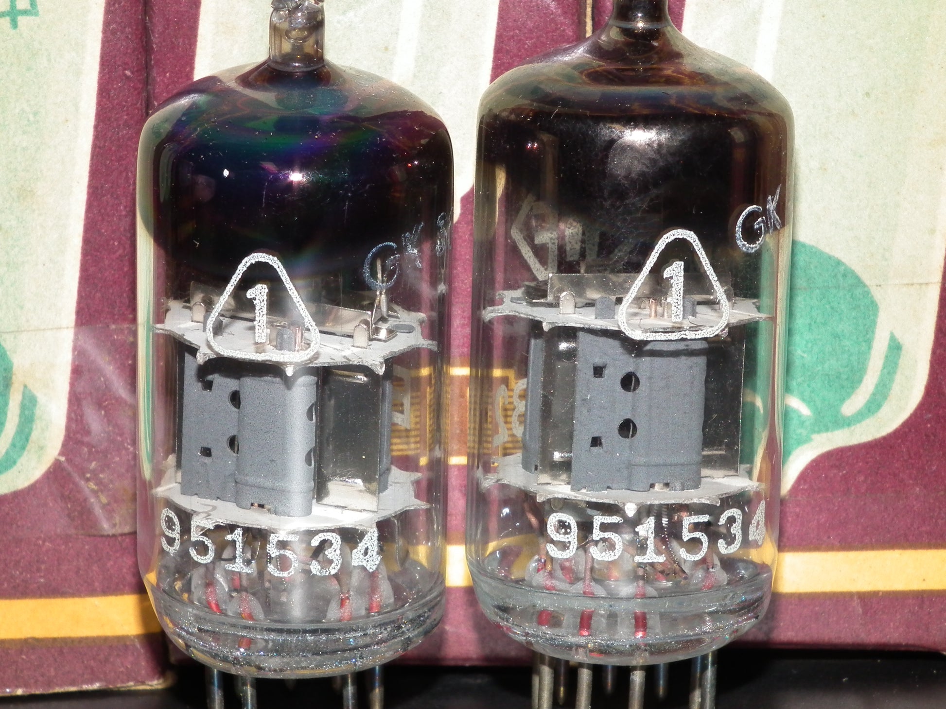 Platinum matched pair (2 tubes) of rare ECF82 / 6GH8A / 6U8 RFT made back in 1959.