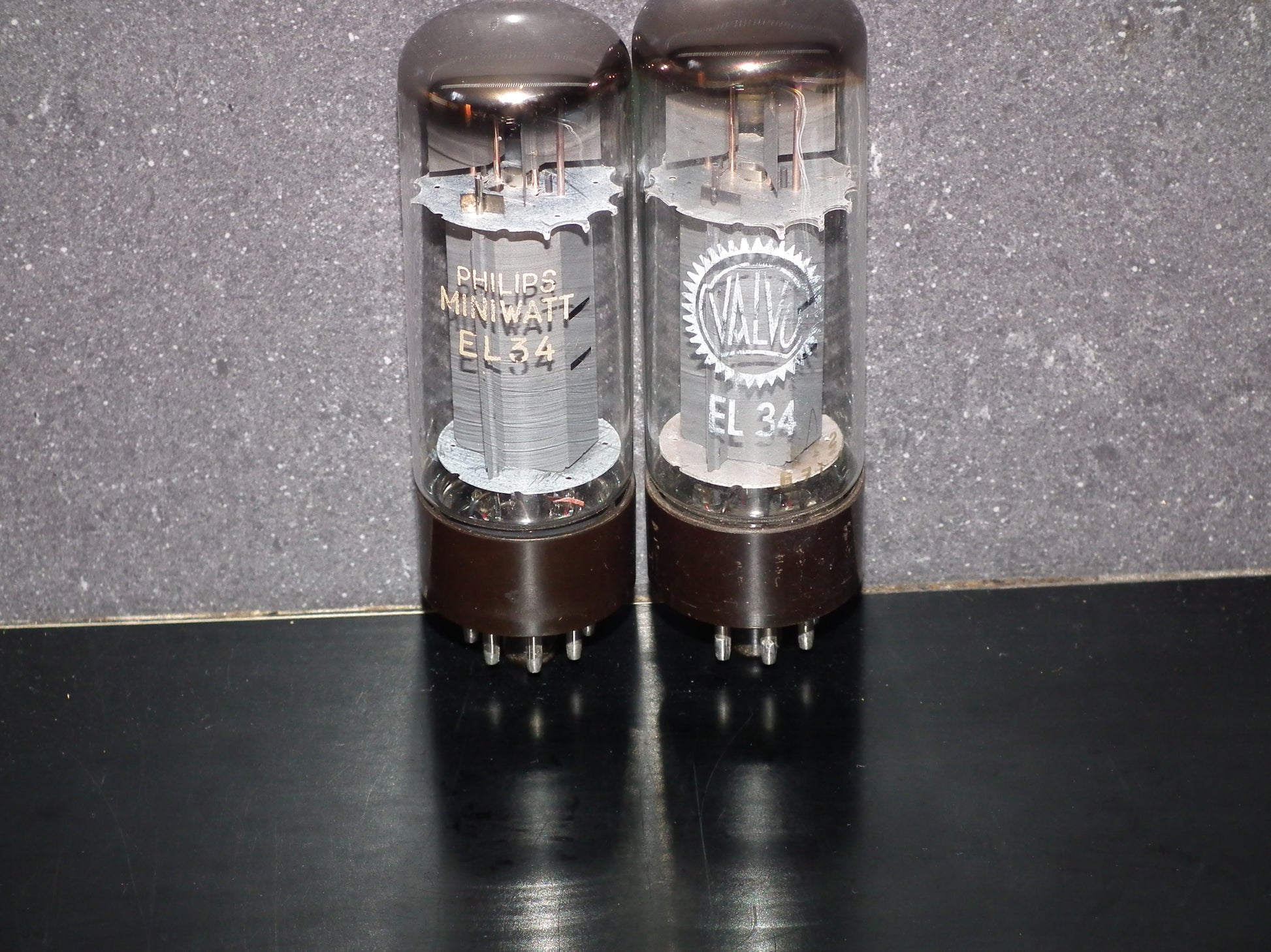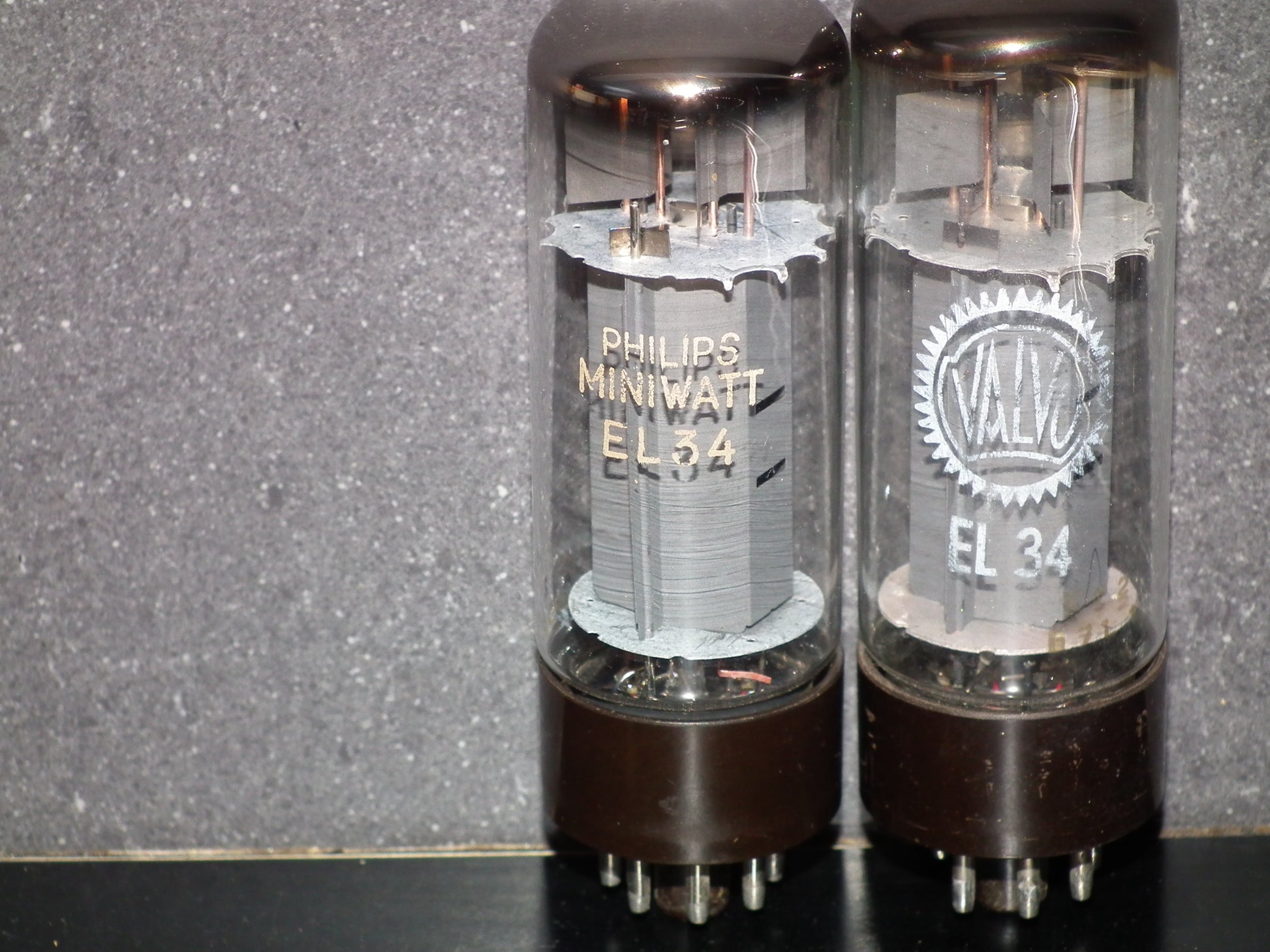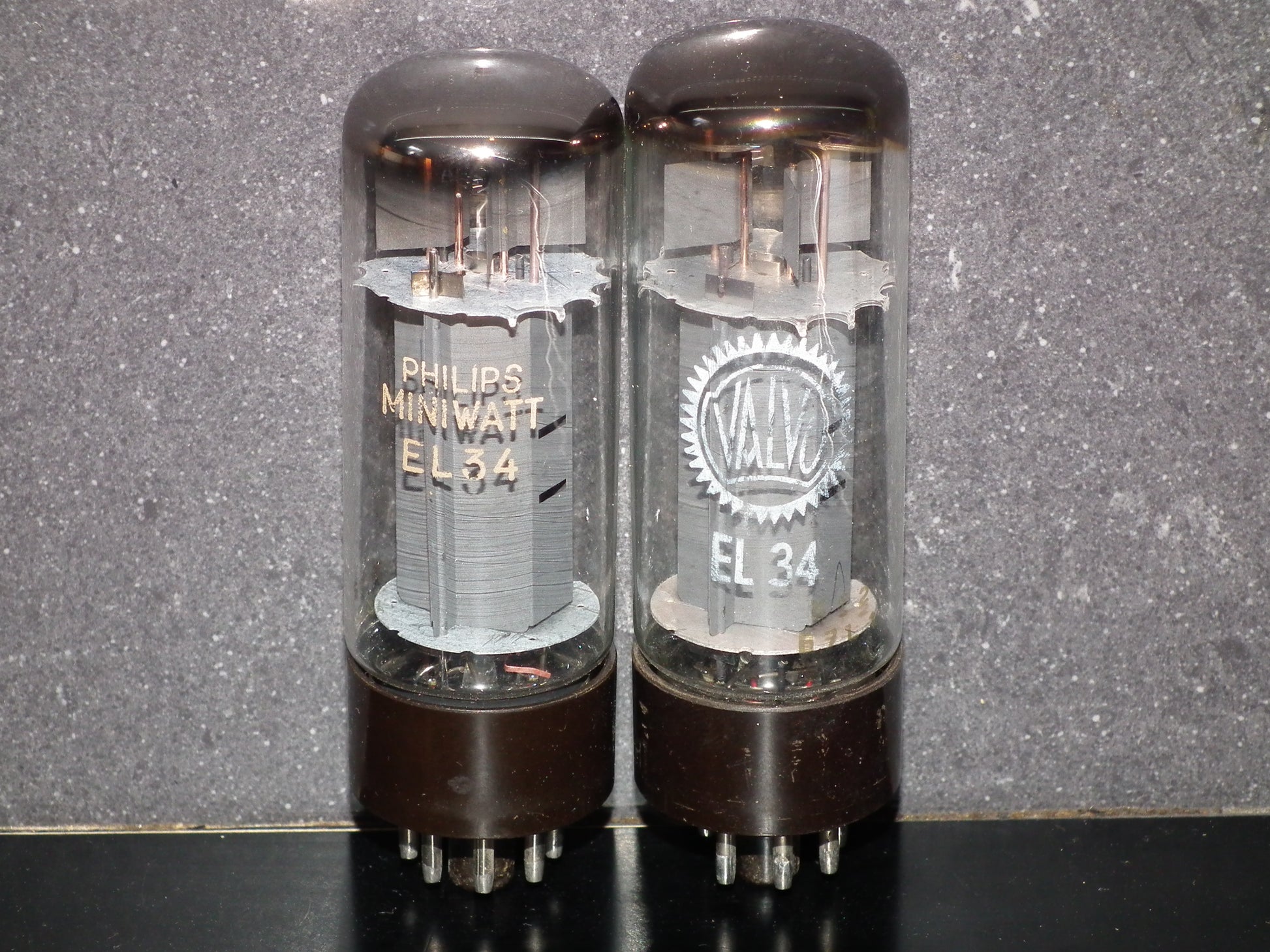 One matched pair ( two tubes ) of genuine EL34 / 6CA7 made by Mullard, Blackburn in 60s, Xf2 codes.