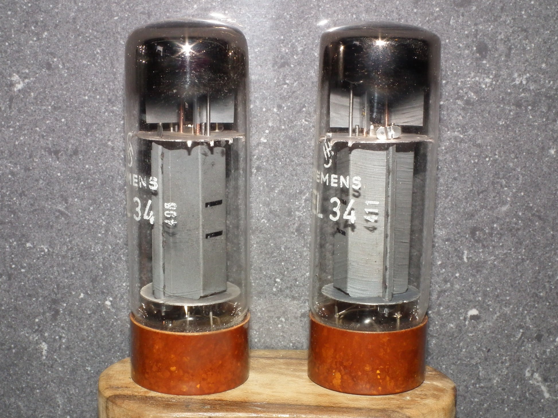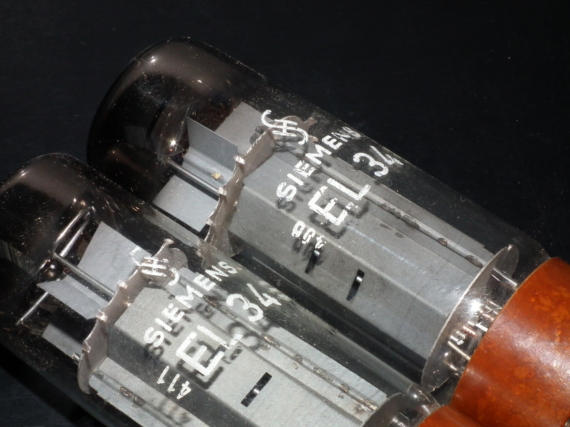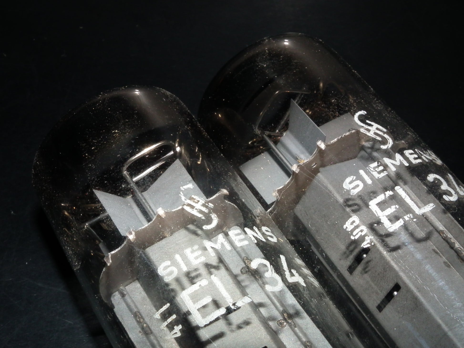 One perfectly matched pair (2 tubes) of genuine EL34 6CA7 Philips Sittard Xf4 DD Getter Brown Base.