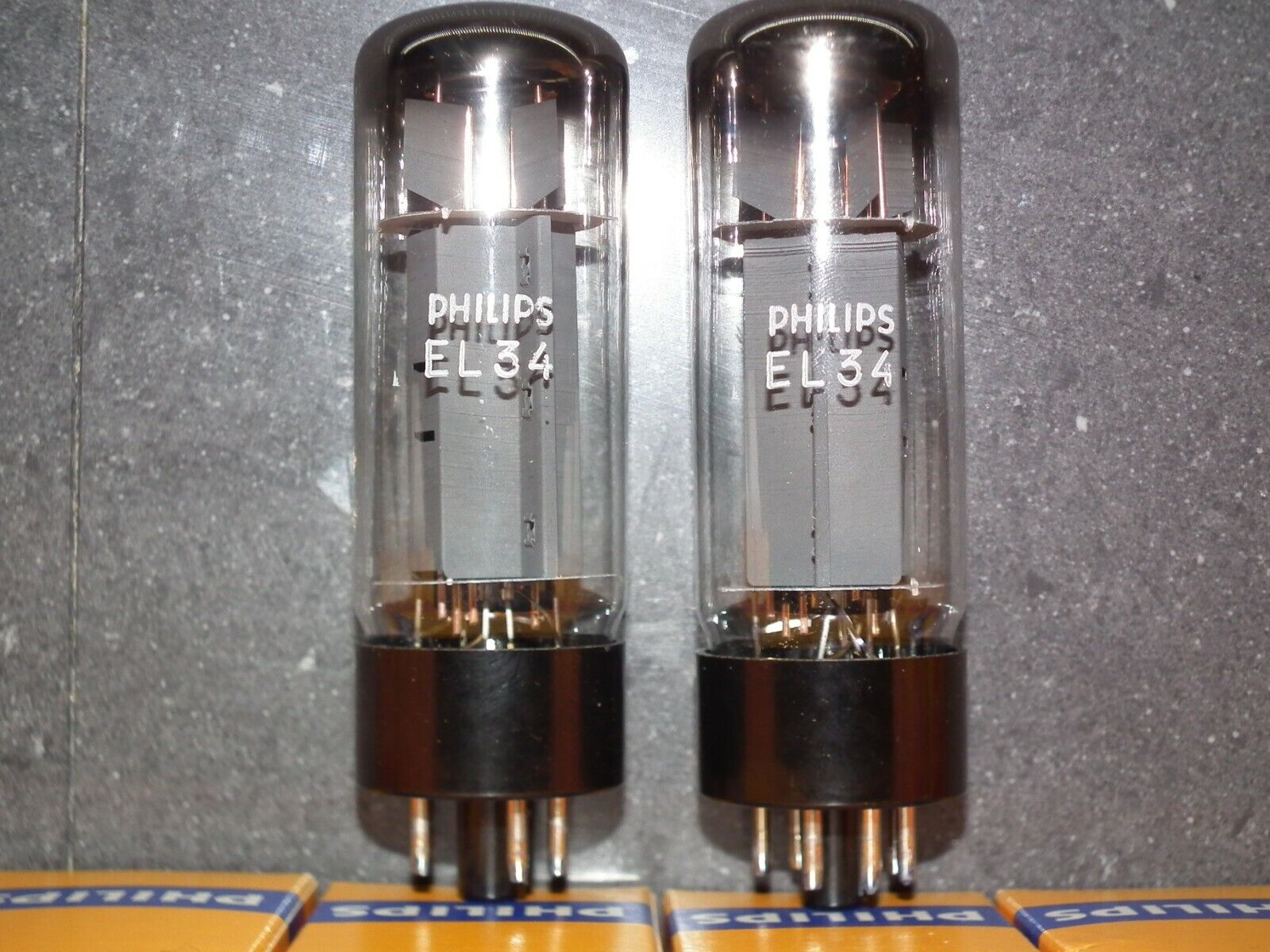 EL34 Mullard Platinum Matched Pair NOS NIB Blackburn Xf4 1979, rebranded Philips