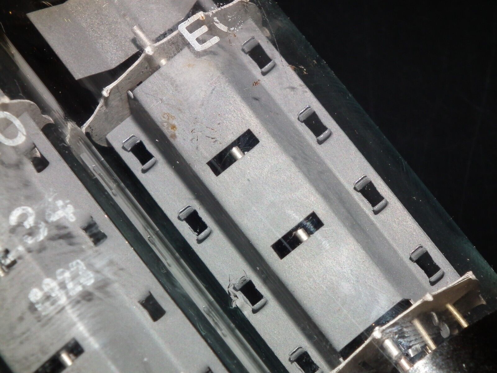 Genuine dimple top, with single O getter. Mica spacers with 10 support points, stapled plates, two holes on plates, black base.