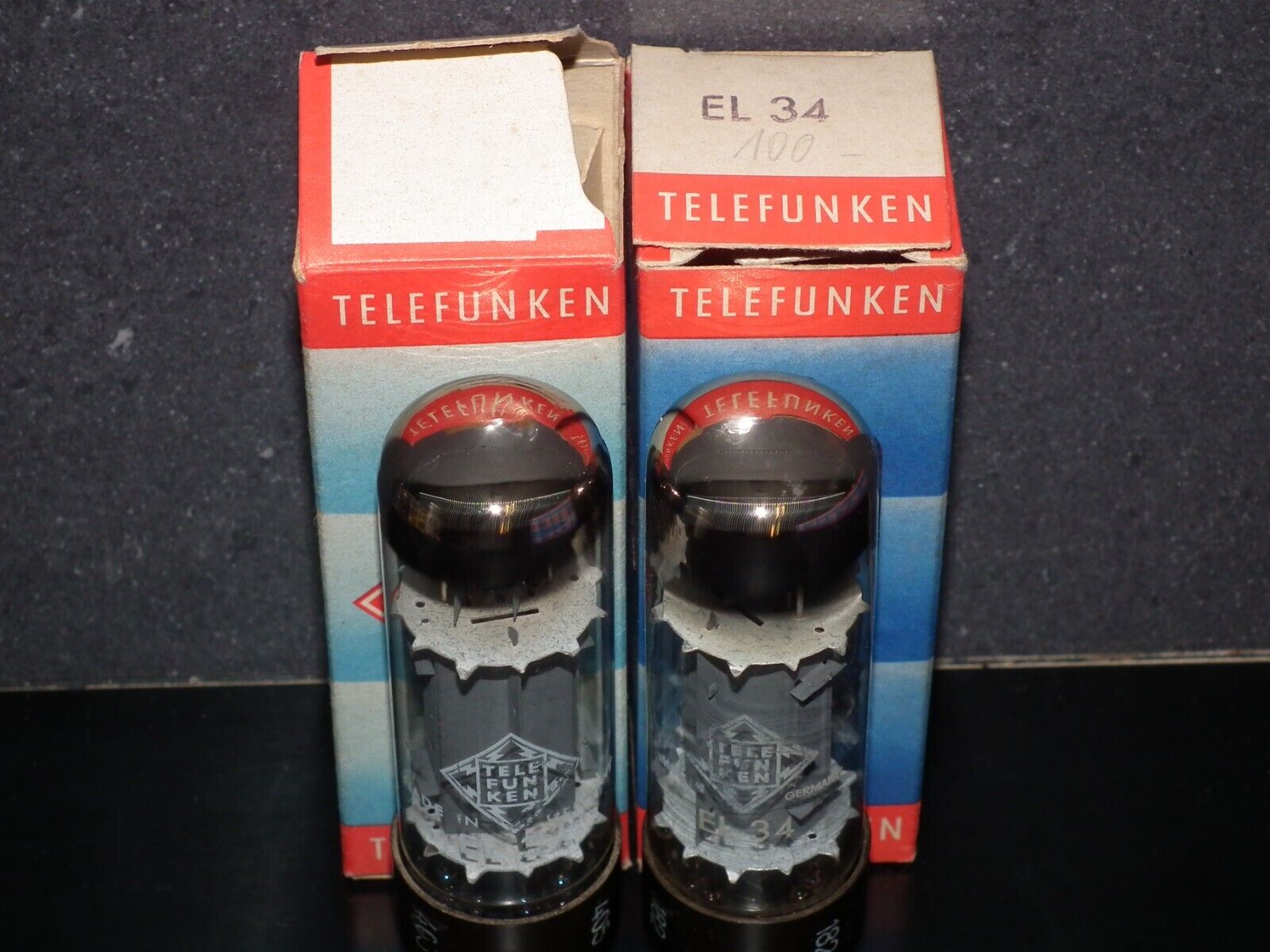 EL34 Telefunken OO Getter Brown Base NOS NIB Platinum Matched Pair Ulm W.Germany