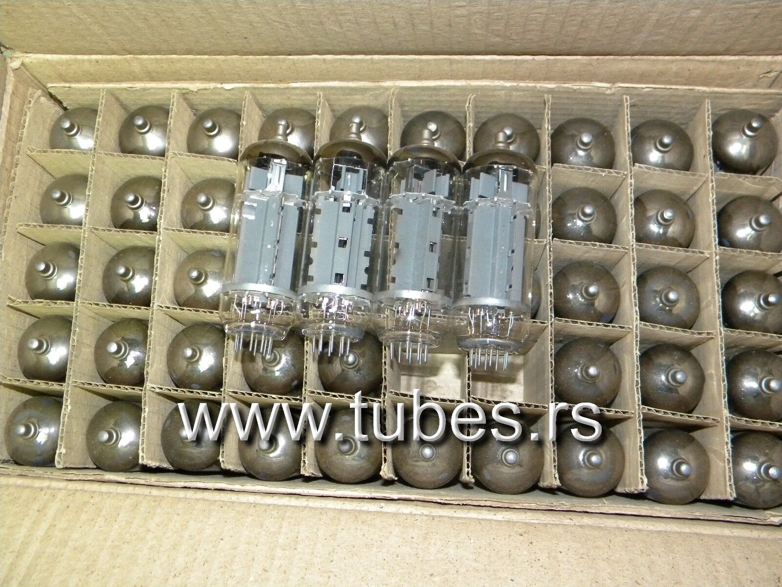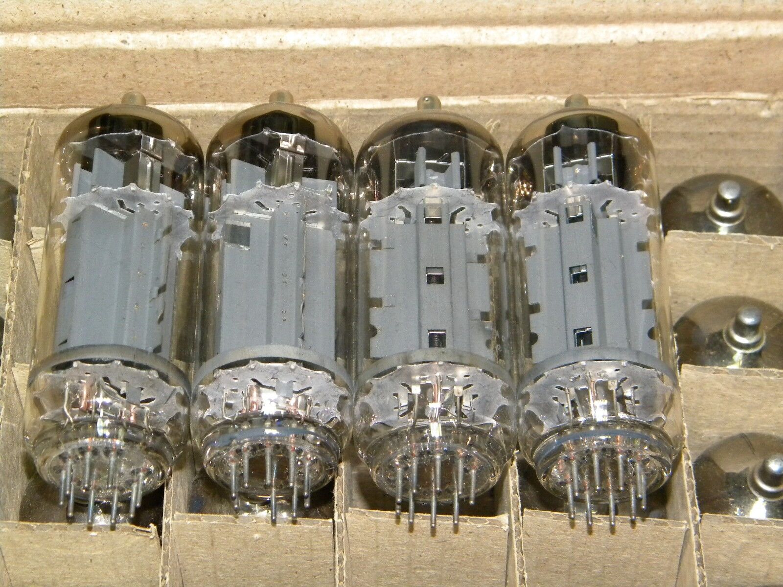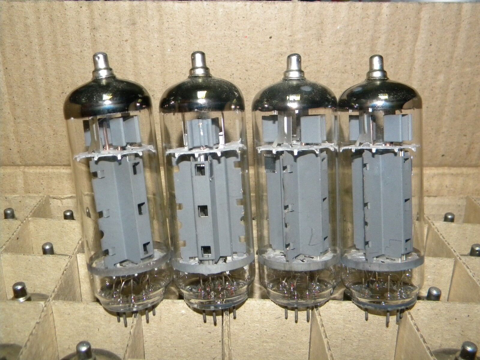 They are from service packagings of 50 pcs and without original boxes for every single tube. All four tubes are matched within 5% (platinum pair). True triple mica version (early Philips construction, much much better than later dual mica versions).