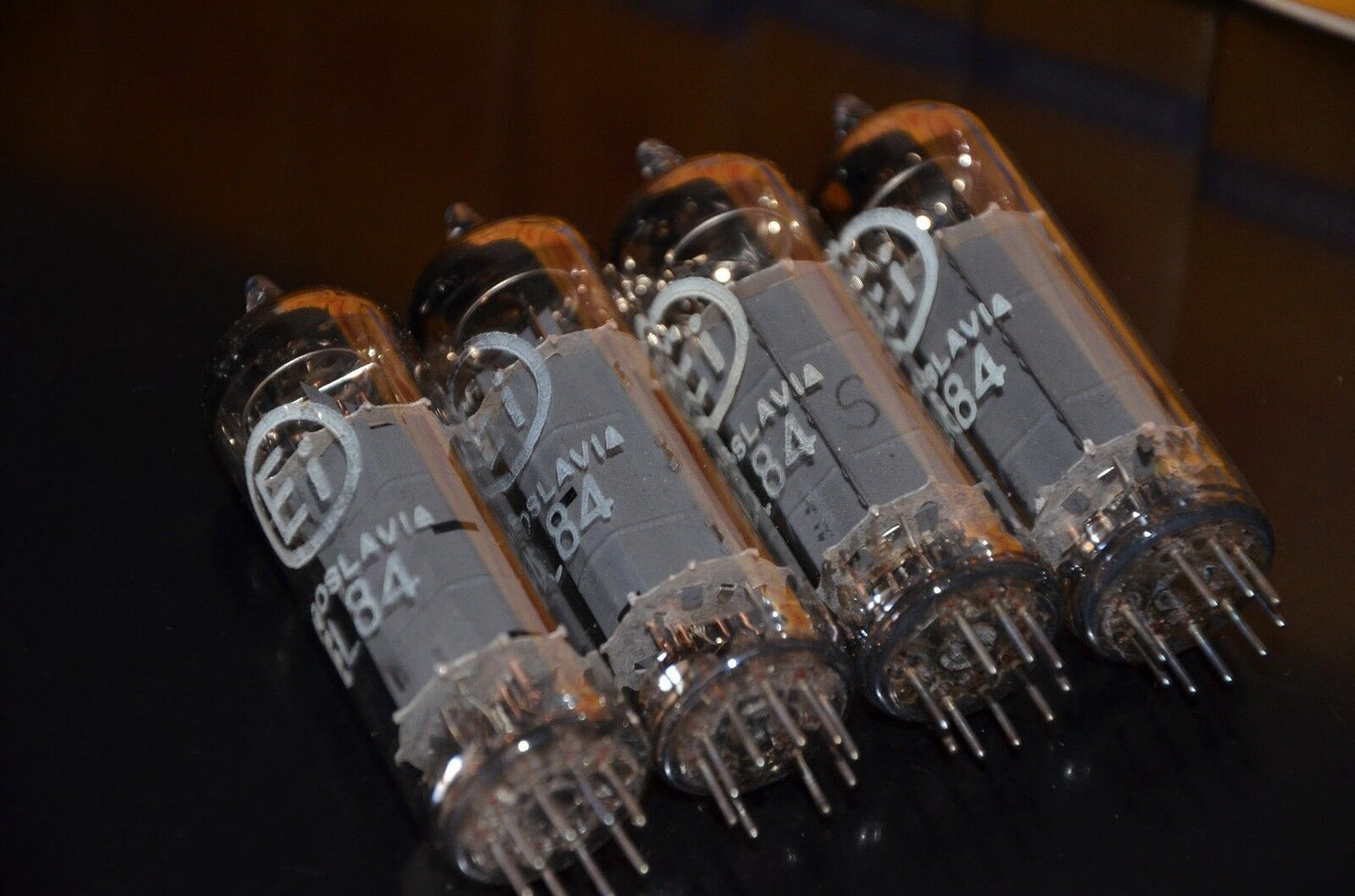 They are hi quality EL84 pentodes, made under Philips Mullard licence and on original Philips tooling - early version rectangular plate holes, much better sound than later round hole plates. Gray plates, halo ring, copper grid posts. They can be used in all EL84 / 6BQ5 applications.