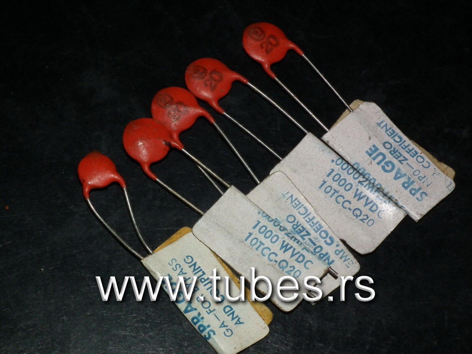Five (5 pcs) NOS vintage 20pF 1000V Disc Ceramic Capacitors, made by Sprague in 60s