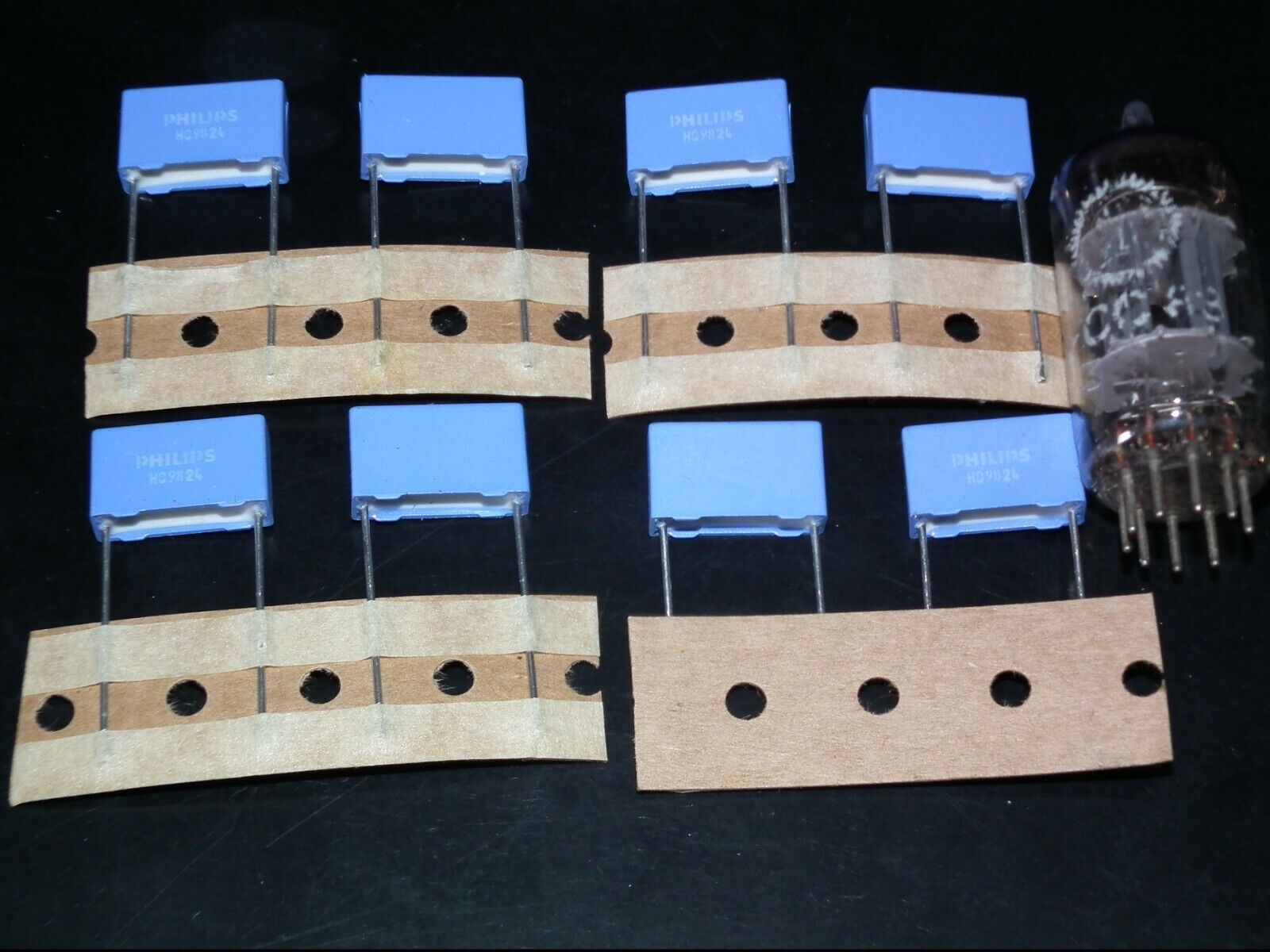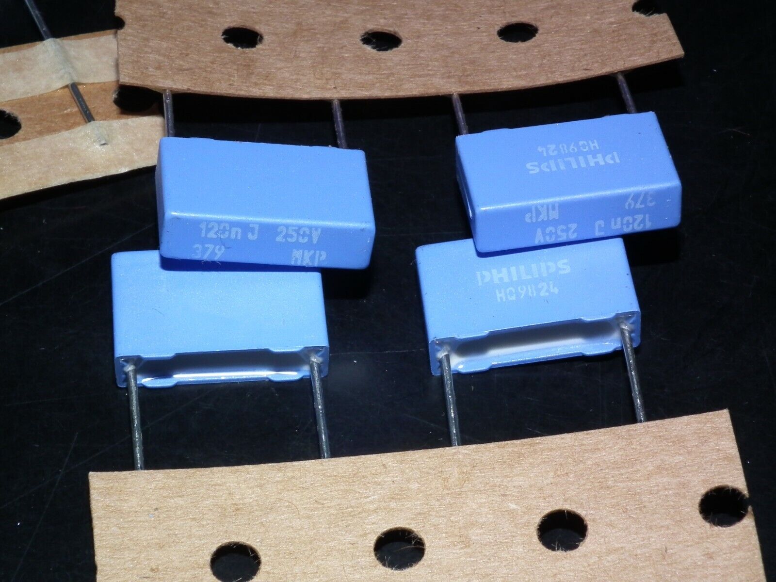 Four (4 pcs) NOS vintage MKP polypropylene film capacitors (Philips Vishay MKP 379), rare and great sounding, ideal for tube amplifiers, made in Belgium by Vishay, from NOS military stock, premium grade, perfect replacement and upgrade for guitar amplifiers and Klangfilm hi end tube audio projects.